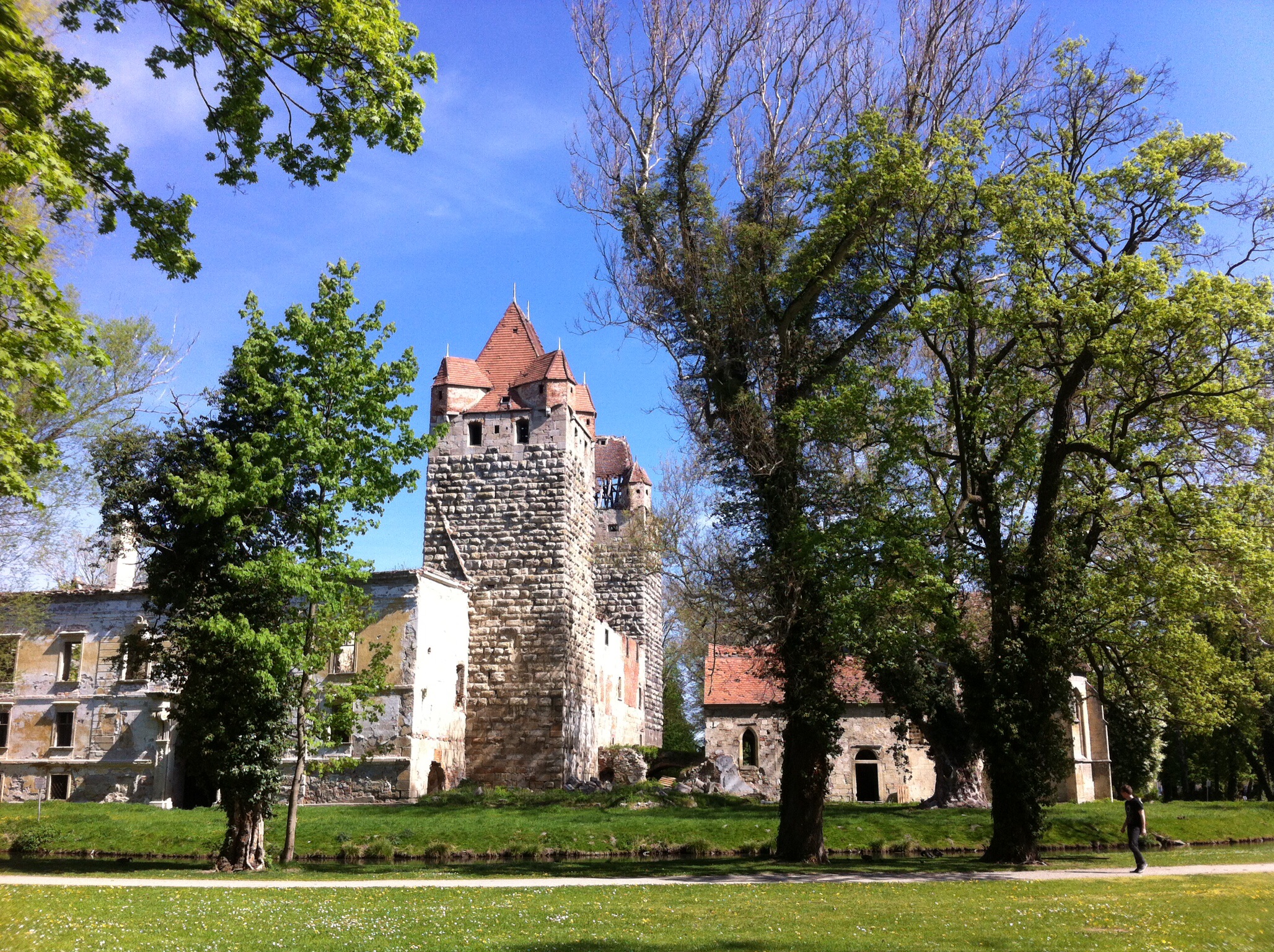 Das Motorrad wird gestartet und auf gehts in Richtung Baden. Grell bunt zeigt sich die Landschaft. Das ging ja schnell, letzens waren die Felder alle noch braun und jetzt ziehen gelbe und grüne Streifen durchs Land. Und da die malerische Schlossruine von Pottendorf. Sind wir da schon einmal gefahren, frag´ich? Ja schon oft, ist die Antwort. Ist mir noch nie aufgefallen, die romantische Kulisse hat sich scheinbar immer hinter den üppigen Blättern der Bäume versteckt.
