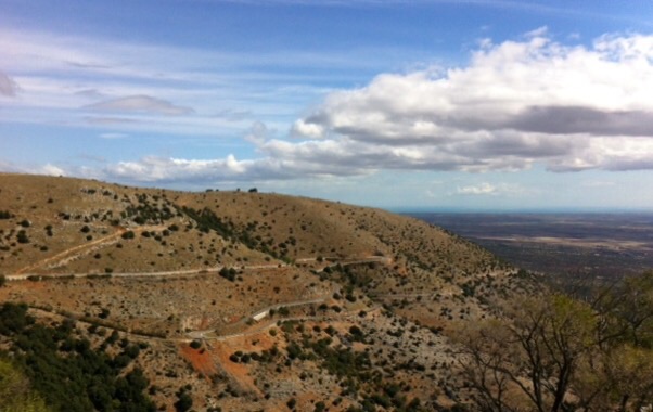 Fenster auf – prächtiges Wetter. Ein kräftigendes Biker-Frühstück und schon ist der Bock gesattelt. Wir nehmen die Hausstrecke auf den Monte Sant‘ Angelo. Heute mal kein Kirtag. Laut unserer Landkarte führt von da ein Weg nach Santo di Pulsano und dann weiter nach Ruggiano. War nicht leicht zu finden der Weg, da scheinbar die Beschilderung vergessen wurde und Meister Garmin sich hier auch nicht auskennt. Aber wir haben´s gefunden. Das Sanctuario liegt hinter einem Sicherheitszaun, der aber mit einer Klingel von jedermann/frau geöffnet werden kann. Den Abstieg zu den Höhlen der Eremiten haben wir uns dann erspart, und lediglich die Fotoaustellung dazu in der Kirche besichtigt. Wirklich ein toller Ausblick von da oben auf die Murgia. Die weiterführende Strasse entpuppte sich dann als Botanischer Lehrpfad.