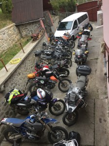 Nun Donnerstag war mein erster Fahrtag mit der Touratech-Tour, ein Tag voller Überraschungen. Pünktlich um 09:00 wurden die Motoren angelassen und eine Maschine nach der anderen rollte aus dem gesicherten Hof auf die Straße. Das Vergnügen konnte beginnen. Der erste Streckenabschnitt war quasi die Aufwärmrunde für die Strategica, eine alte Militärstrasse, die über die Berge in Richtung Transalpina führt.
