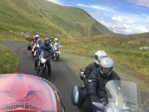 Ambitioniert steuerten 12 Maschinen durch das Großstadtgewusel von Glasgow wieder raus auf‘s Land. Es ging wieder so richtig in die schottische Landschaft hinein. Die Straßen wurden immer schmäler, bis es nur noch ein Single Track war.