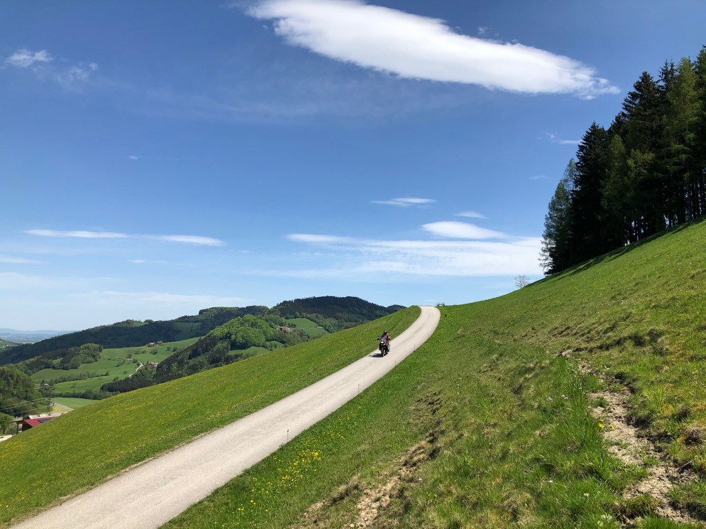 Der April und der Mai waren bisher ja nicht besonders freundlich zu den Motorrad-FahrerInnen. Es ist uns in den letzten 6 Wochen nur 4x gelungen den Bock aus der Garage zu locken und trockenen Rades durch die Gegend zu kurven.