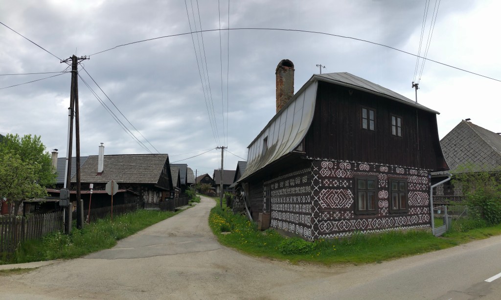 Von da ging es den nächsten Tag zu einem der schönsten Dörfer in der Slowakei – Cicmany. Die Geschichte dahinter ist zwar nicht so rosig, aber trotzdem, wer hier in der Nähe ist, sollte sich den Ort unbedingt ansehen. Zahlreiche traditionelle Holzhäuser mit der ornamentalen weißen Bemalung sind hier noch zu finden. Übrigens die Inspiration für die Wandmuster stammen von der traditionellen Stickerei auf der Kleidung und tauchten vor ca. 200 Jahren erstmalig auf. Die erste Erwähnung des Ortes datiert gar von der 2. Hälfte des 13. Jahrhunderts. Nach mehreren Feuern Anfang des 20. Jahrhunderts wurde das Dorf wieder aufgebaut, um hier den wirtschaftlich schlecht gestellten Leuten eine Bleibe zu geben. Es ist kaum vorstellbar, dass in so einem Haus bis zu 30 Personen lebten, arbeiteten und schliefen, denn groß waren die Hütten nicht. In den kleineren Häusern wohnten vier Familien mit den Kindern und es gab nur zwei Stuben, also jede Stube für zwei Familien. So ein Leben ist heute fast unvorstellbar. Es war ein hartes, karges Leben, voller Entbehrungen. Heute werden die Häuser hauptsächlich als Wochenenddomizile genutzt.