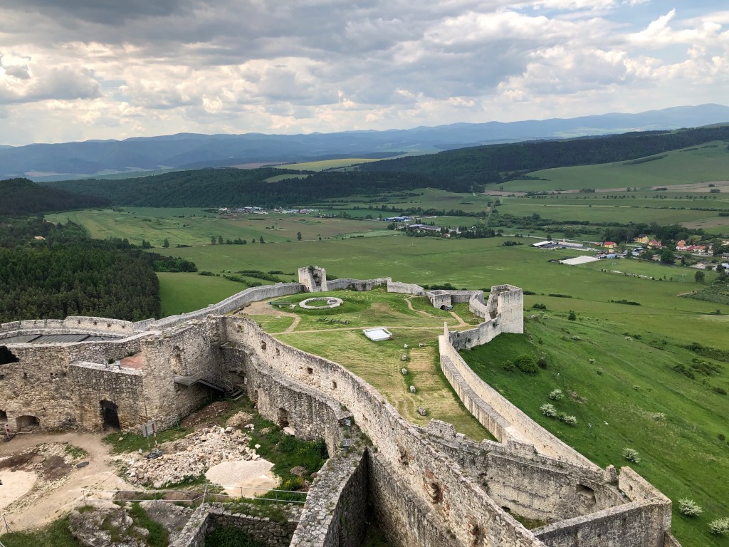 Unsere nächsten Zielpunkte waren der Branisko-Pass und dann Spissky Hrad (die Zipser Burg), die zweitgrößte Burg in Europa, nur die Prager Burg ist noch größer. Der Baubeginn datiert ans Ende des 12. Jahrhunderts. Dem folgten mehrer Erweiterungsbauten dem Zeitgeschmack entsprechend. Mit einer Fläche von 41 Hektar finden wir hier in der Tat eine gewaltige mittelalterliche Burganlage vor, die eine lange wechselhafte Geschichte zu erzählen hat.