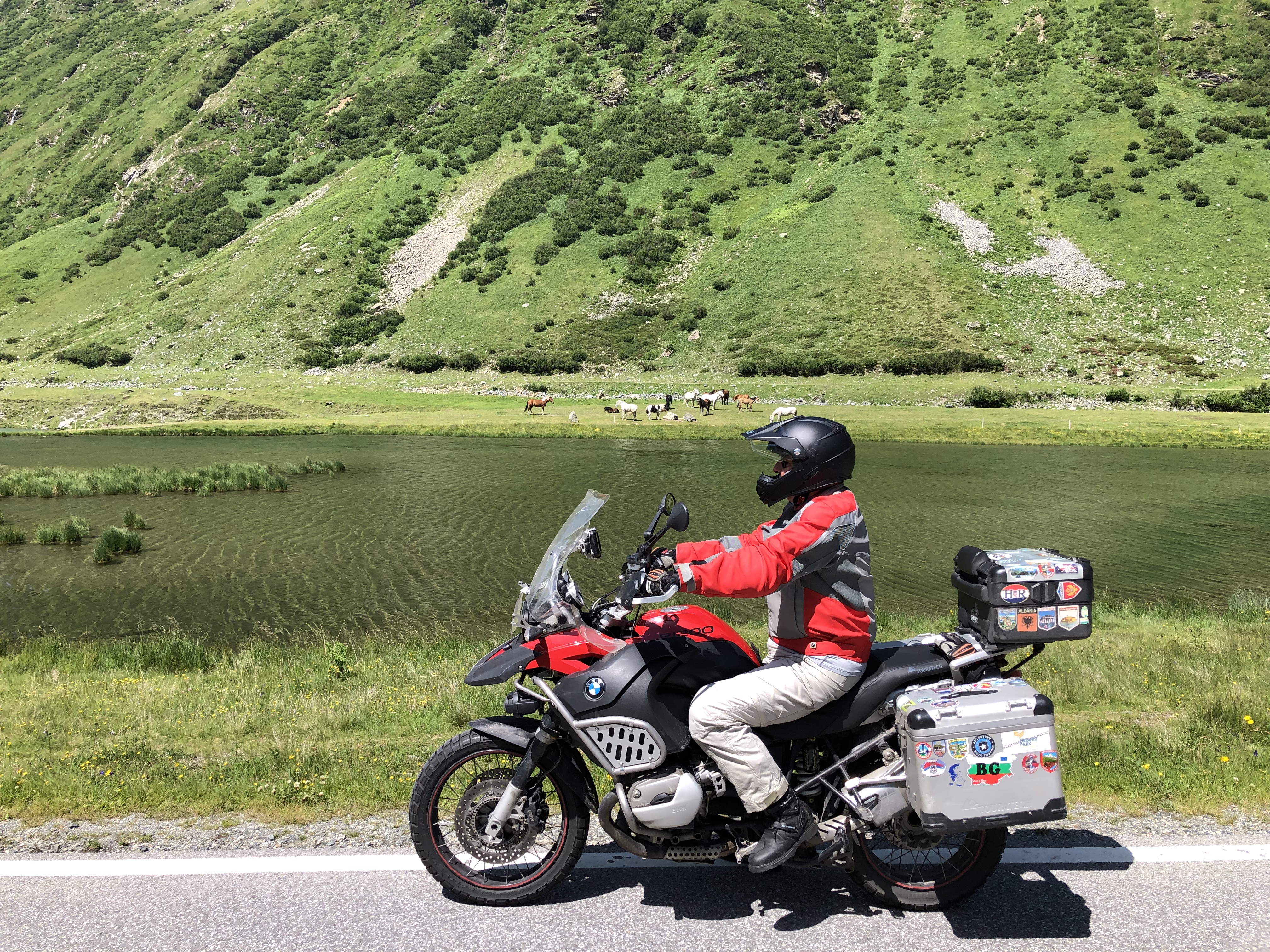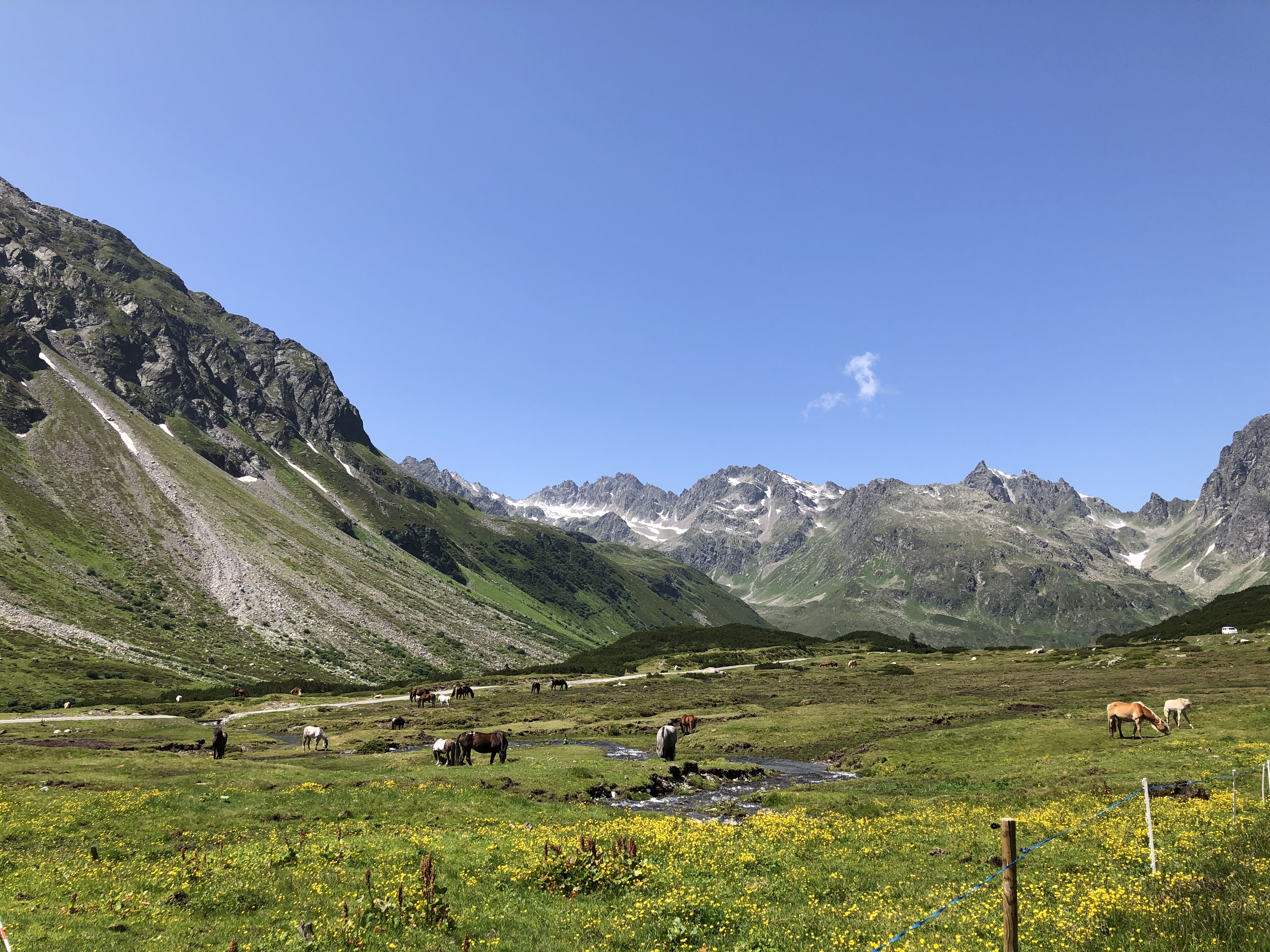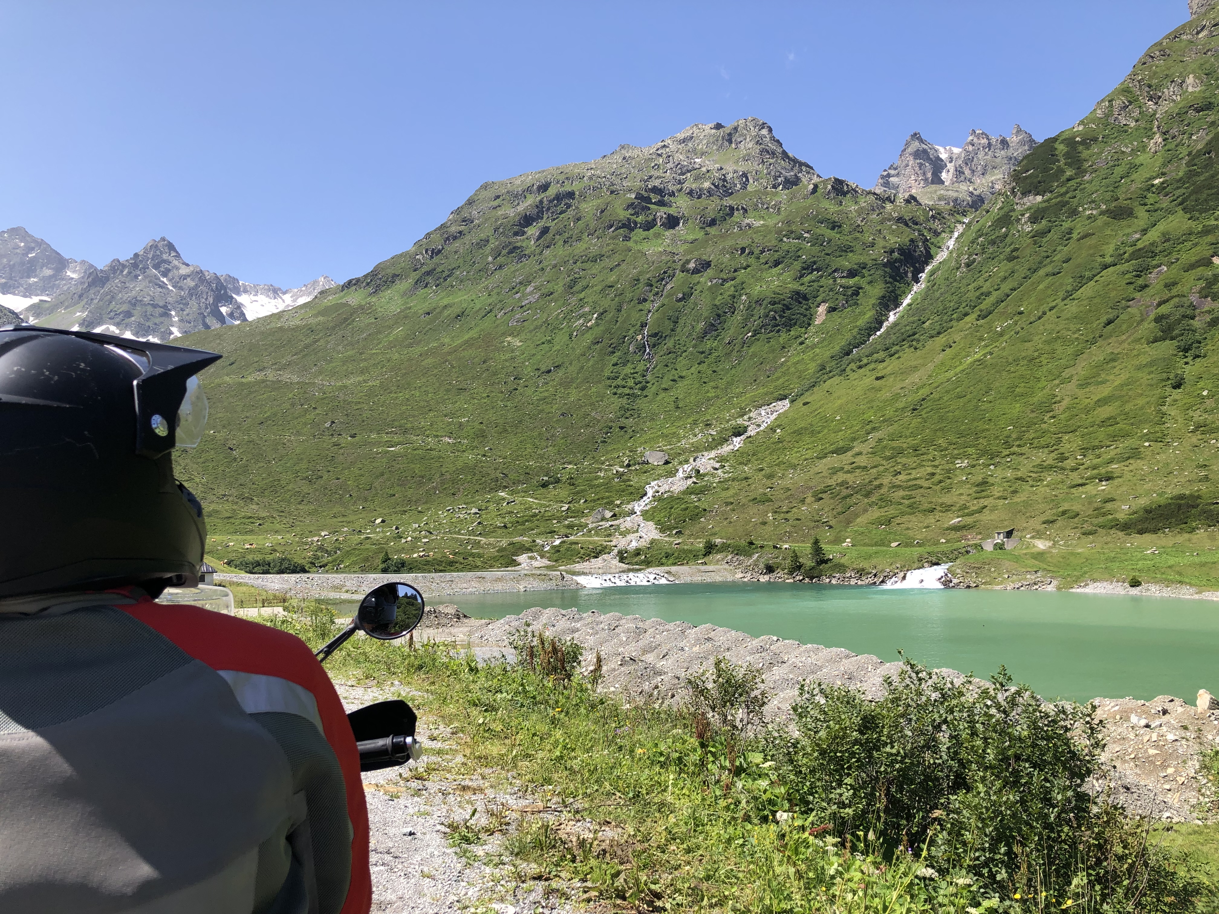 Vorarlberg wir bleiben! Der Himmel hatte aufgeklärt und war strahlend blau. Wir machten uns auf zur Silvretta-Hochalpenstrasse. Wir rauschten gleich zwei Mal rauf und runter. Das ist so eine schöne Strecke. Nach der Mautstelle auf der Tiroler Seite liegt die Abzweigung zur Kopsalpe oder besser zum Stausee, denn dort war noch ein weiterer Marathon-Zielpunkt. Die Retourstrecke führte über den Arlberg, wo es zu einem Böcke-Treffen kam. *grgrgr*