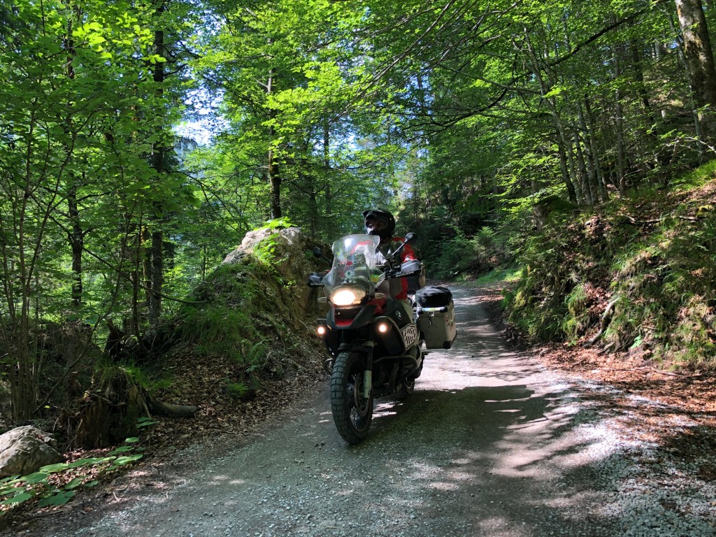 Aber bevor es demnächst weiter nach Slowenien und Italien geht, gibt es noch einen kurzen Boxen-Stopp zuhause. Von Vorarlberg starteten wir über das Hahntennjoch nach Achenkirchen. Der Ort eignete sich gut als Ausgangspunkt für die schottrige Steinberg am Rofan – Straße, für die es festgelegte Durchfahrtszeiten gibt. „Also nur kein Schlendrian, damit wir auch pünktlich um 11:00 da sind.“ Wir waren sogar über pünktlich, so dass sich ein bisschen auf der Bank sitzen und schauen auch noch aus ging.
