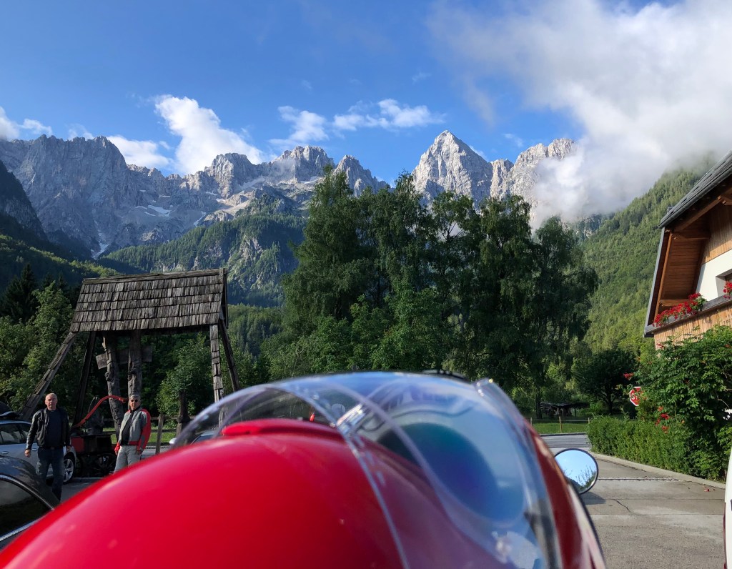 Endlich zeigten sich die slowenischen Dolomiten bei der Abfahrt in Krajnska Gora. Dann wuselten wir die 50 Haarnadelkurven über den Vrsic-Pass und durch das Soca-Tal zum Predul-Pass, der Slowenien mit Italien verbindet.