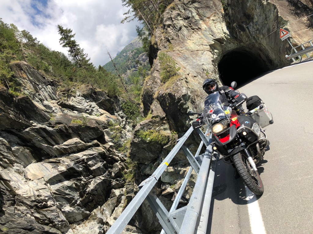 Wir haben in einem kleinen Dorf in einem Wirtshaus wie die Bären geschlafen. Fit steuerten wir das nächste Ziel den Lago di Aple Gera an. Ca. 25 km ist die Strecke bis zum Stausee von Val Malenco aus. Anfänglich noch leicht zum dahincuisen und dann beginnen eine Serie von Kehren und zahlreiche Tunnels, die in den massiven Felsen gehauen wurden. Wie im Roadbook schon beschrieben, kann so manche Kurve zur Herausforderung werden.
