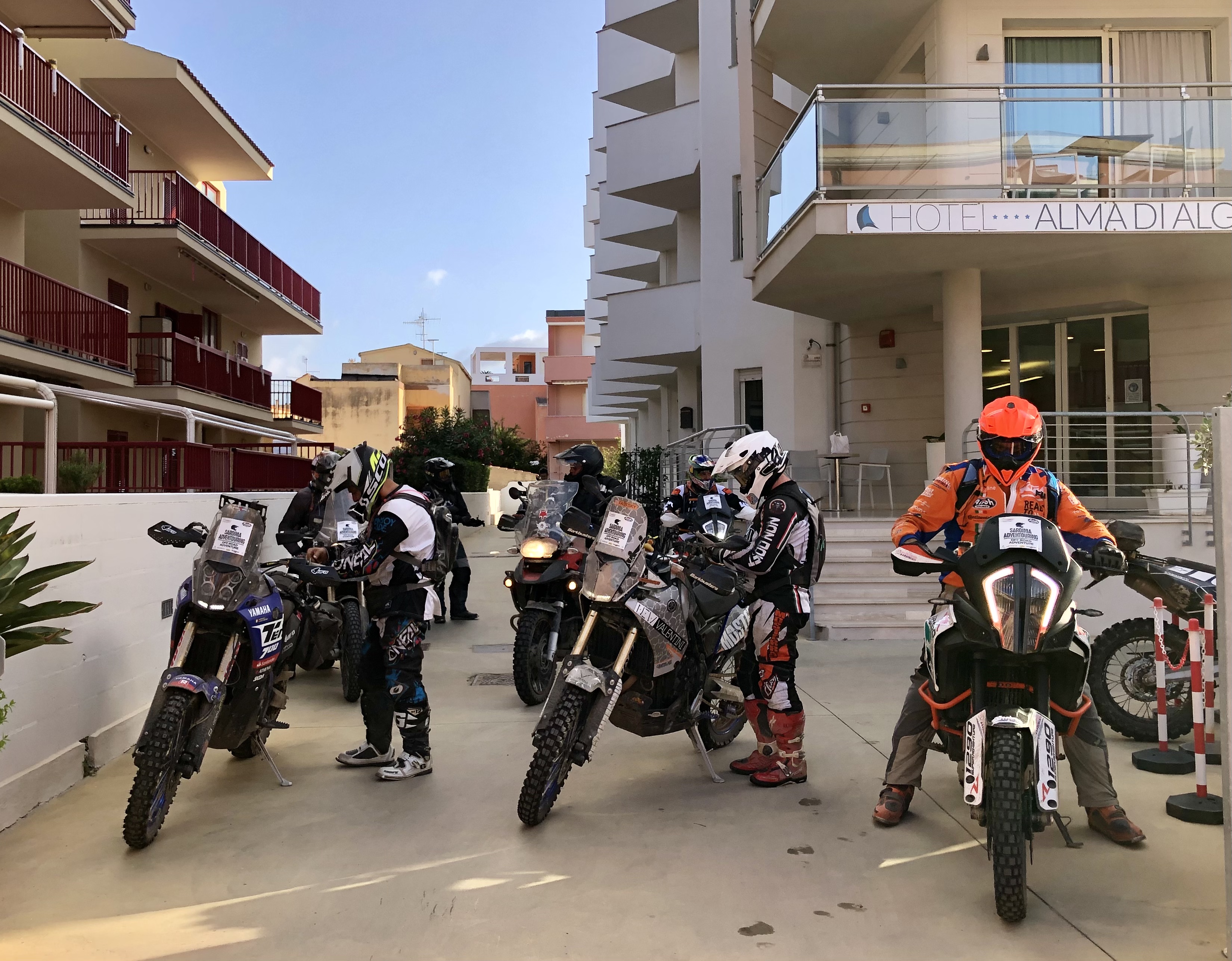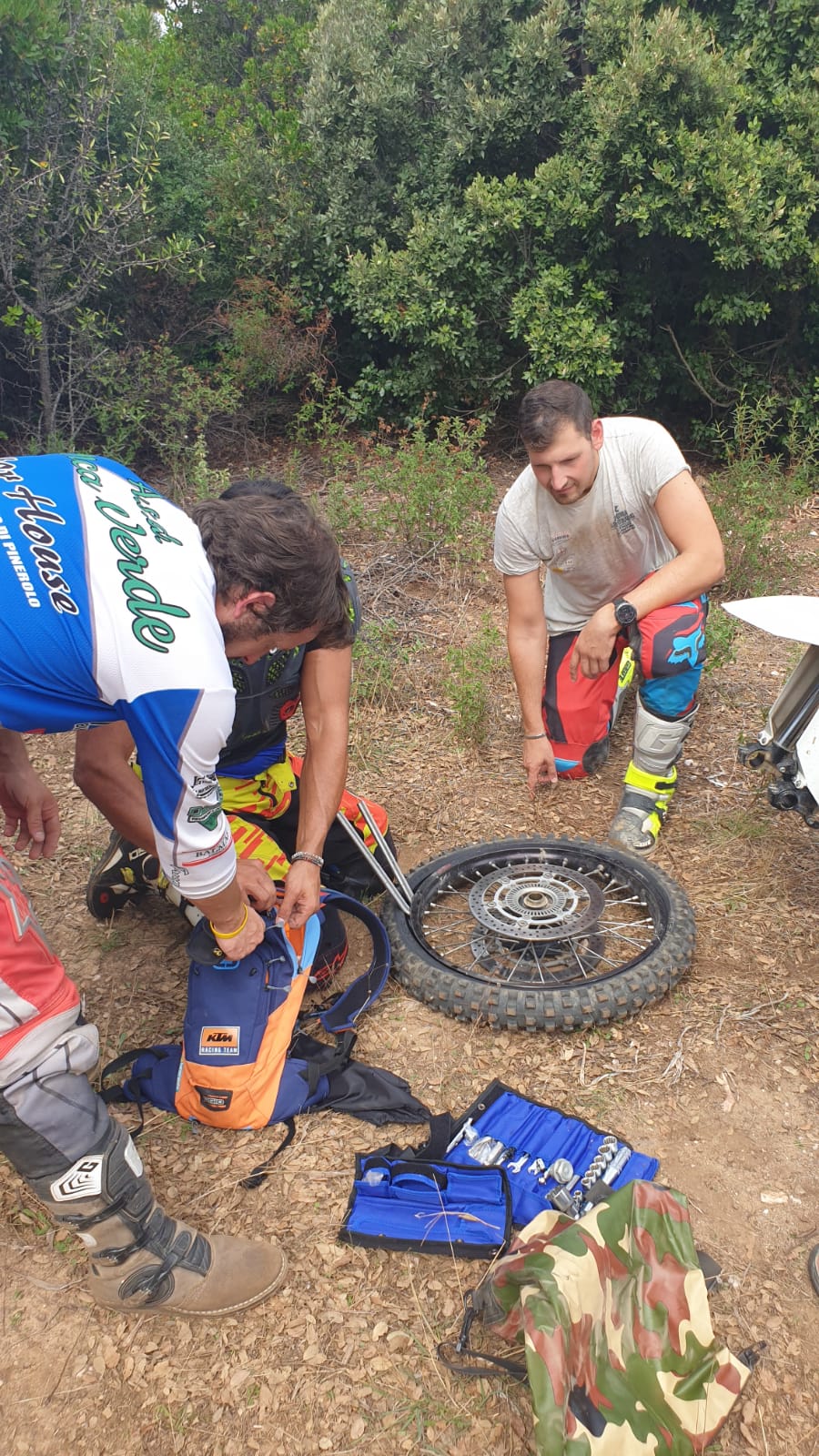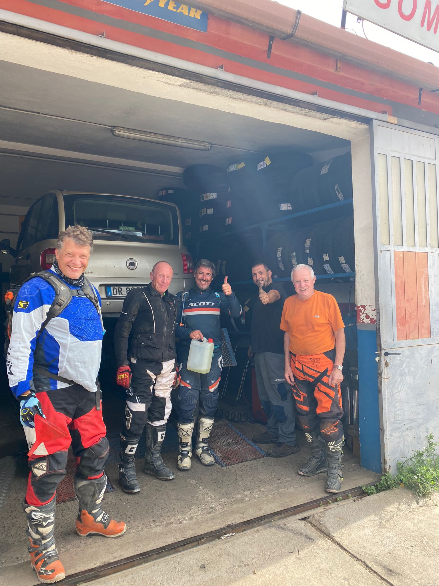 Die 30 angetretenen Maschinen mit Fahrern aus verschiedenen Nationen (Italien, Schweiz, Spanien und Österreich), aufgeteilt auf drei Gruppen, kämpften sich durch Staub, Schlamm, buchstäblich über Stock und Stein. Mann und Maschine wurde an die Grenzen des Möglichen gebracht. Abgekämpft, schmutzig und siegessicher ritten die Enduristen jeden Abend bei den Quartieren ein. Die breiten Grinser in ihren Gesichtern erzählten die Abenteuer des Tages; bestätigten, dass sie Unüberwindliches geschafft hatten. Pannen gehörten dazu und wurden so gut es ging unterwegs gemanagt. Aber auch wichtig, dass es Begleitfahrzeuge gab, denn so ganz unbeschadet lief es nicht für jedes Fahrzeug ab. Das Team-Furgone*, wie ich es nenne, kann einiges erzählen. Der Teamgeist liess alle in den schwierigen Situationen zusammen wachsen und die eine oder andere Freundschaft wurde geschmiedet. Das Wichtigste jedoch ist, dass am Ende des Tages alle wieder heil zuhause ankamen.