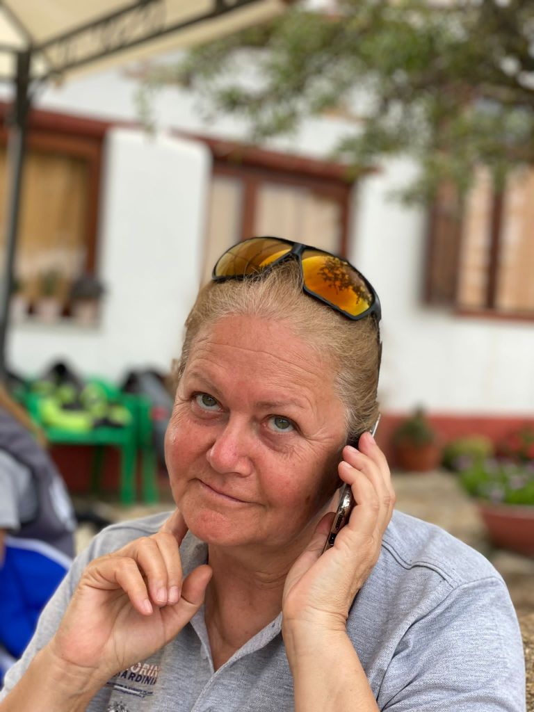 Der Jeep musste ein anderes Motorrad von einer Werkstatt abholen, das am Vortag auch ein Problem mit der Schaltung hatte. Massimos Fahrzeug landete wieder im Furgone, weil es wieder bockte und sich keinen Meter bewegen wollte. In Orgosolo tat sich eine Werkstatt auf. Es schien, dass die das Problem beheben könnten. Gepäck ausladen aus dem Furgone, Massimos Enduro raus holen und schraub, schraub, mal sehen ob es funktionieren wird. Gepäck wieder rein in den Furgone. Nur nix auf der Straße bei der Werkstatt vergessen, das wäre blöd. Der Jeep wurde dringlich abbeordert zum Mittags-Treffpunkt. Mittlerweile war Pi abgängig. Er hatte die Gruppe verlassen und irrte irgendwo in der Gegend um Orgosolo herum. Schnell schickte ich ihm die Koordinaten, damit er das Rifugio direkt ansteuern konnte. Was würden wir ohne WhatsApp, Signal und SMS machen? Kontaktaufnahme mit dem Guide. Furgone und Jeep erreichten beladen das Rifugio. Alle Enduro-Fahrer sind schon da. Pi weiterhin abgängig. Plötzlich wurde er in der Ferne auf der anderen Seite des Stausees gesichtet. Die Schweizer Kollegen boten sich als Suchtrupp an. Das war dann doch nicht notwendig, da Pi bereits den Schotterweg ansteuerte. Die Richtung stimmte, Zieleinlauf im Rifugio gesichert. Uff! Aufatmen, ich machte mir schon Sorgen. Auf Garmin ist ja kein Verlass.