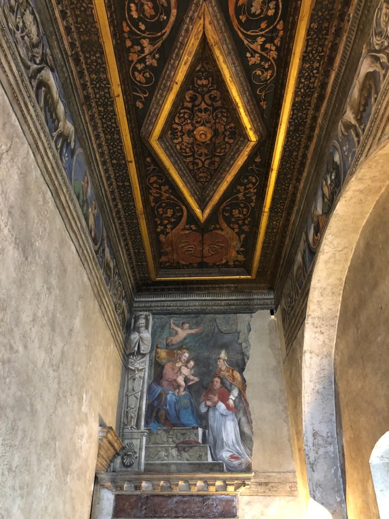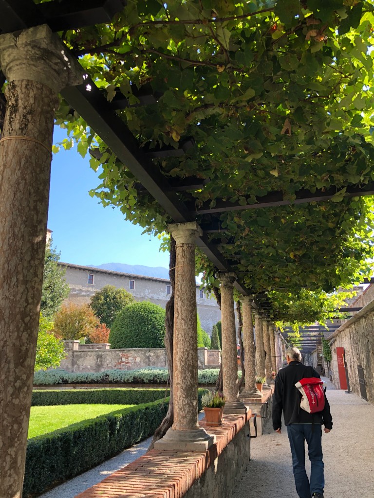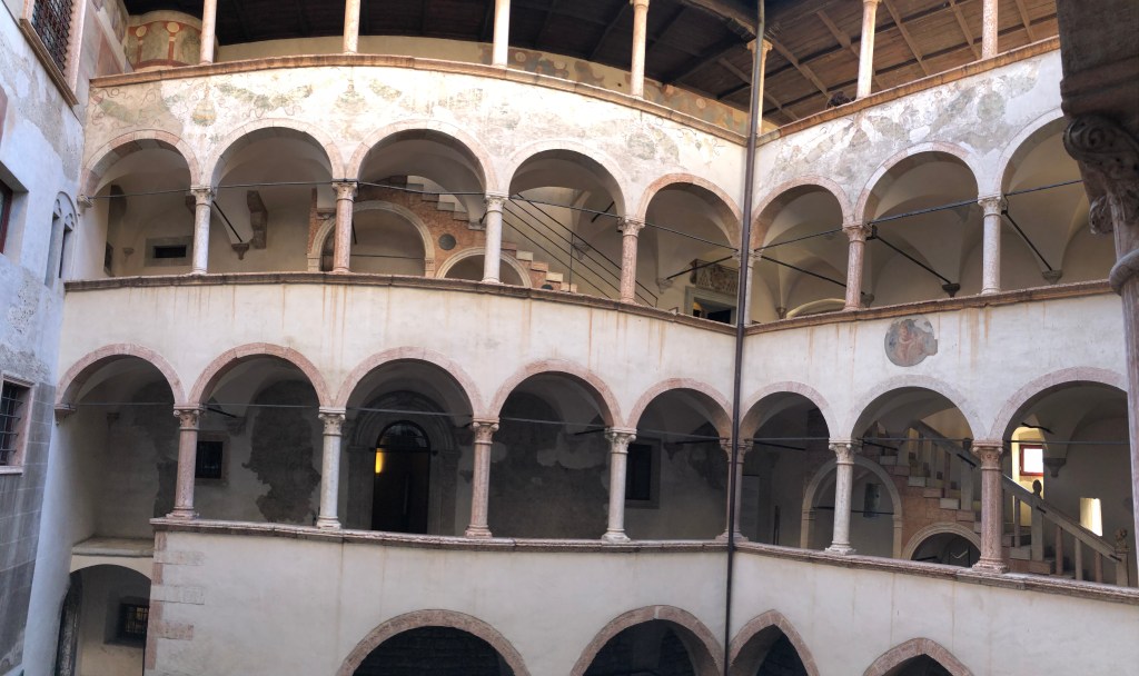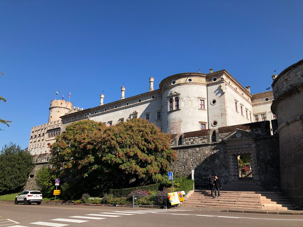 Bei unserem Trient-Ausflug besuchten wir natürlich das Castello Buonconsiglio, um die gotischen Fresken, den so genannten „Ciclo dei Mesi“, der zu den bedeutendsten Freskenzyklen der Welt zählt, anzusehen. Ich hatte den Jahreszeitenzyklus zwar schon vor 30 Jahren ein Mal gesehen, aber schöne Sachen kann man sich immer wieder ansehen. Nachdem wir den Green Pass vorgelegt hatten und Fieber gemessen war, durften wir endlich die Eintrittskarten kaufen. Dann gingen wir los durch die verschieden Räume, in die Loggia mit den wunderbaren barocken Fresken und durch den Arkadenhof. Dann bestaunten wir die aktuelle interessante Ausstellung über Fede Galizia, eine der wenigen Malerinnen, die bereits Anfang des 17. Jahrhunderts Bekanntheit erlangt hatte. Und dann standen wir vor der verschlossenen Tür zu den gotischen Fresken! Dafür hätten wir nämlich eine extra Ticket und eine Zeit-Slot-Buchung benötigt. Blöd, dass uns die Dame an der Kassa das nicht gleich gesagt hat, denn als wir später nachfragten waren alle für uns Zugfahrer möglichen Plätze ausgebucht.