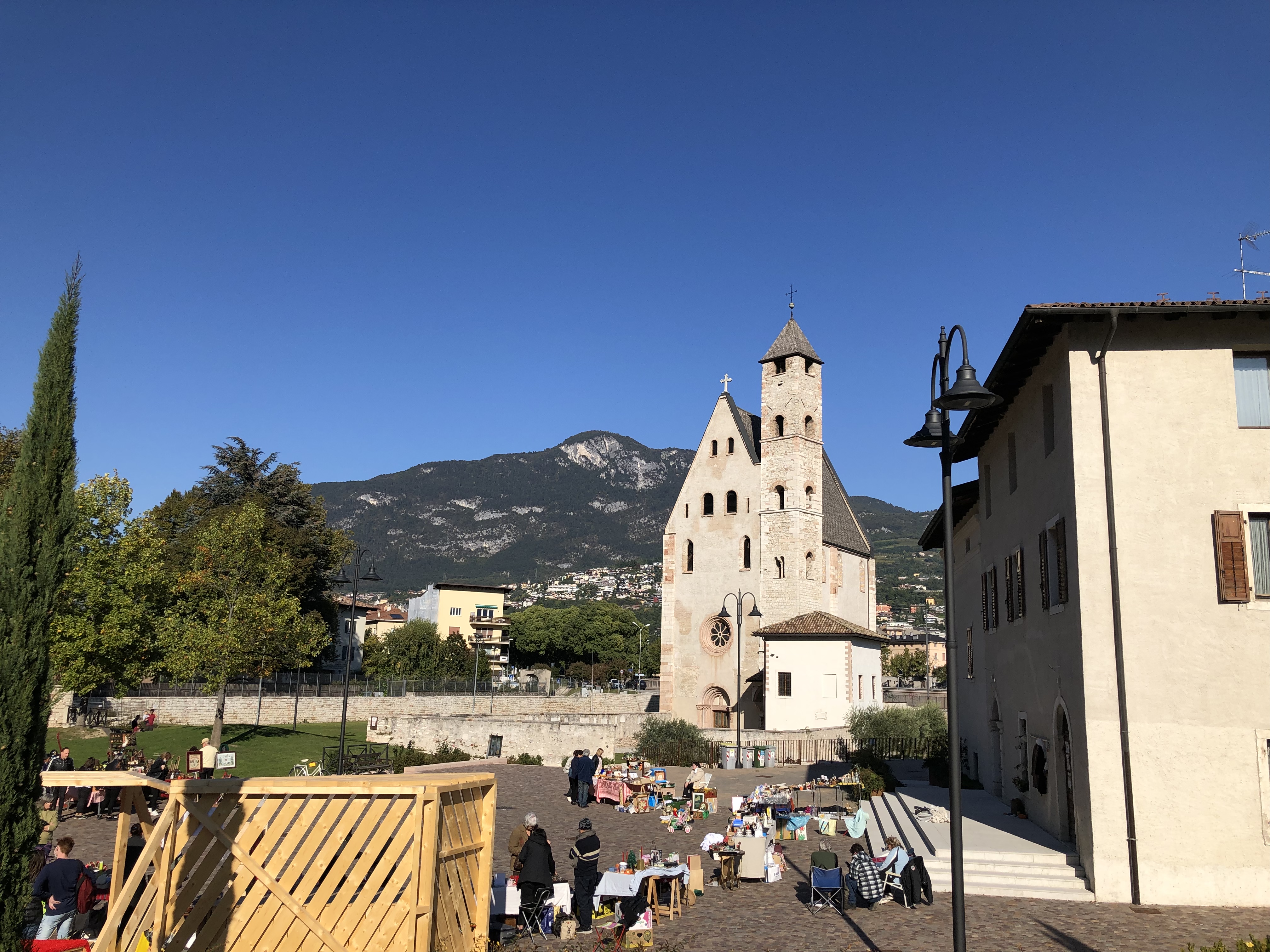 Nun, wir nahmen es sportlich und stiefelten weiter zur Seilbahn, die über die Etsch auf den benachbarten Hügel gespannt ist. Von dort genossen wir den tollen Ausblick, fuhren wieder runter, pilgerten noch zum Flohmarkt vor der Kirche San Appolinare fuore le mure und wieder zurück zum Domplatz. Und dort saßen wir dann in der Sonne und beobachteten das sonntägliche Treiben, bevor es mit dem Zug wieder zurück nach Levico Terme ging.
