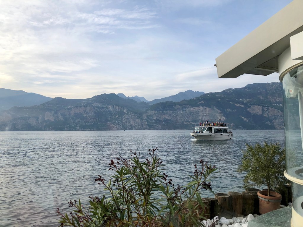 Beim Abstieg auf der See-Seite wehte uns eine leicht sommerliche mediterrane Brise entgegen. Bei der kleinen Pause in Malcesine am Gardasee schlenderten wir durch die engen Gassen mit den Souveniergeschäften und lauschten den plätschernden Welle von den anlandenden Booten im Hafen. Für uns war es eine typisch italienische Atmosphäre, ein touristisches Gewusel, gestenreiche Gespräche der Einheimischen, alte Häuser, glitzerndes Wasser, Sonne und blauer Himmel. Urlaubsstimmung pur!
