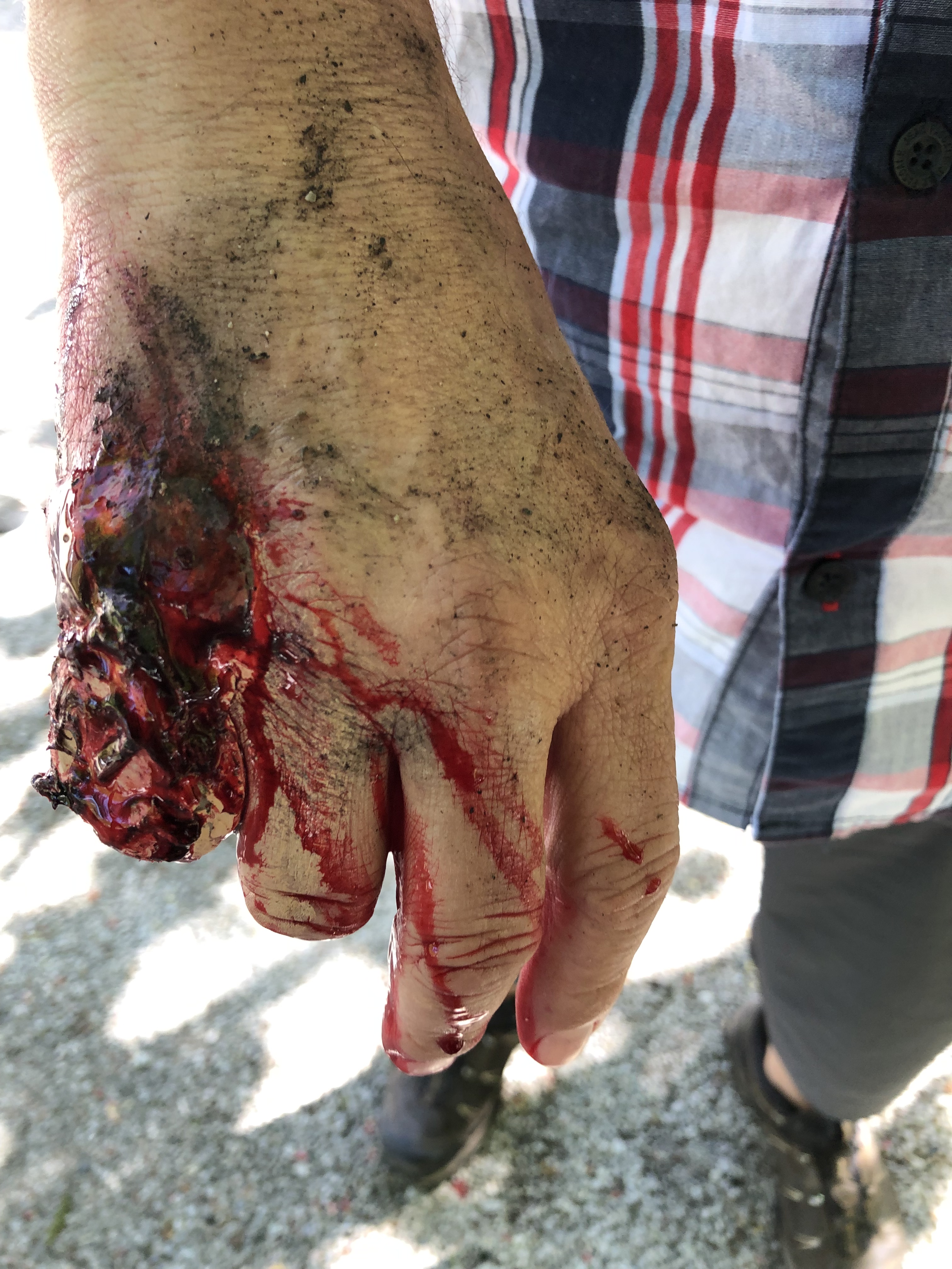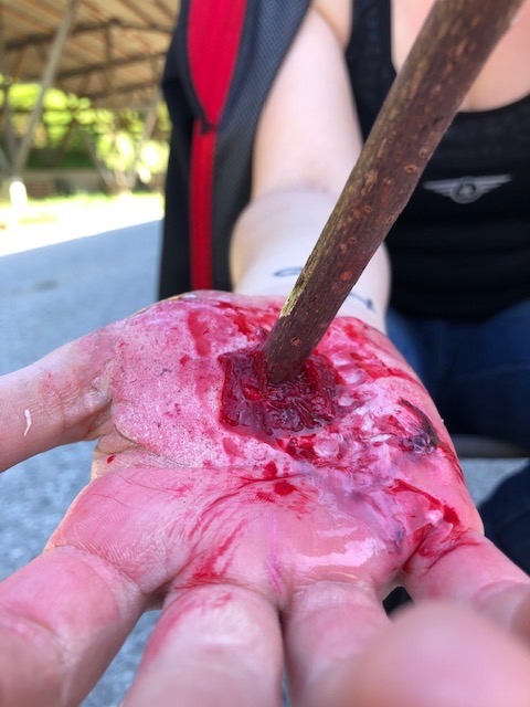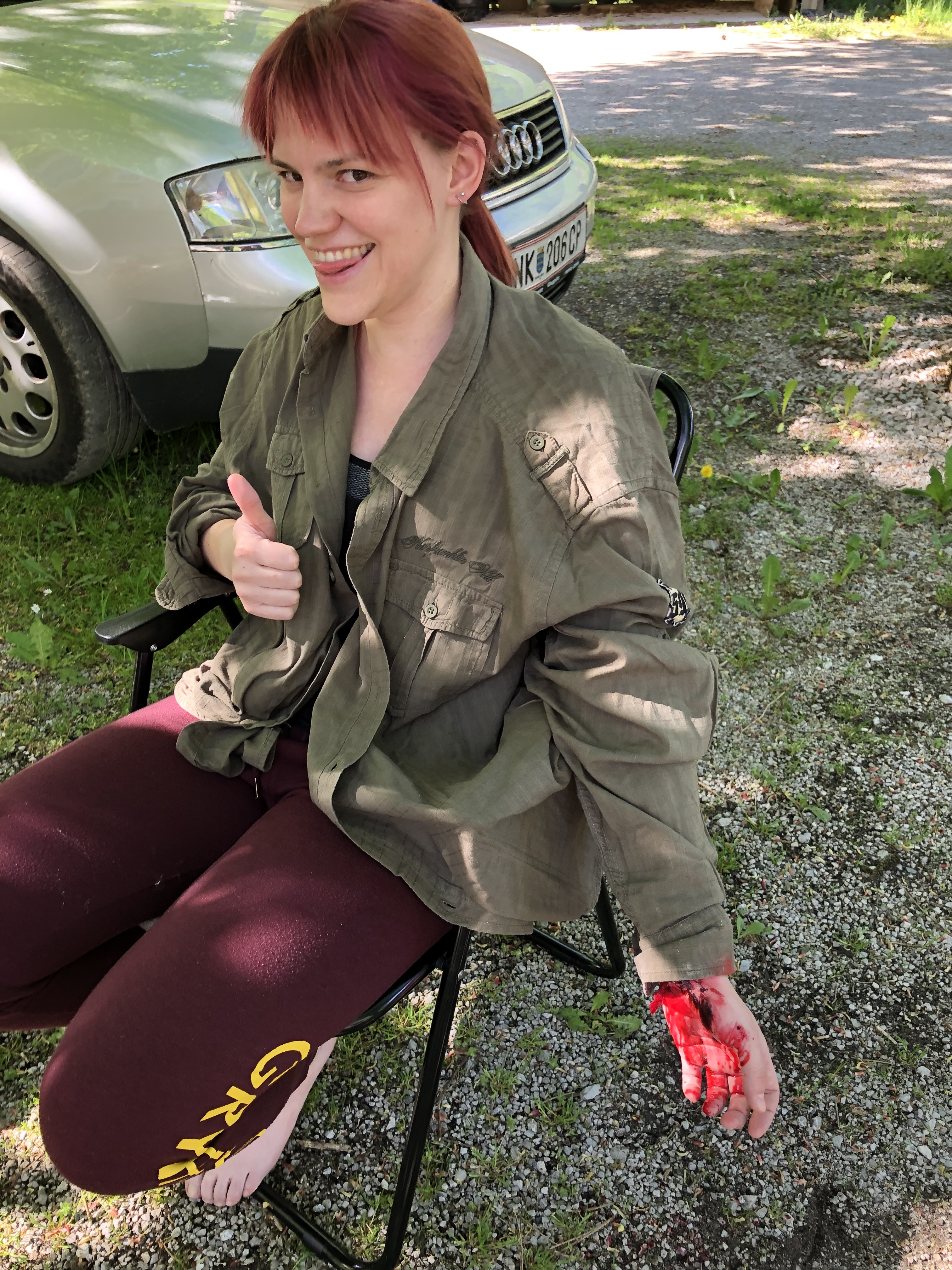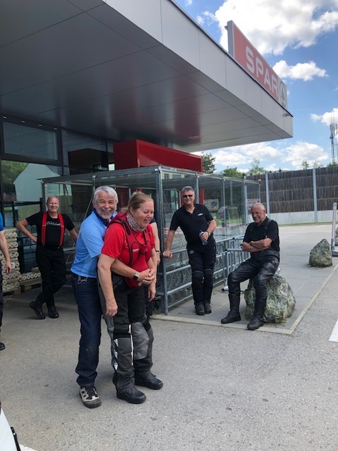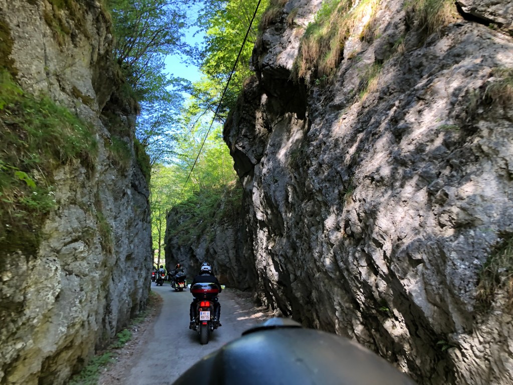 Das war auch gleich der Einstieg von Matthias bevor wir mit dem Motorrädern in die Rax-Region starteten. Barbara mit dem Bike, Andrea und Jörg mit dem Auto, fuhren immer voraus, um am nächsten Zielpunkt eine Überraschung vorzubereiten und mit Überraschung meine ich eine simulierte Notfallsituation, wo Erste Hilfe geleistet werden musste. Wir waren richtig gefordert. So manch blutige Wunde sah ziemlich echt aus. Nachdem wir Barbara und Jörg, unsere beiden Unfallopfer, verarztet hatten und der fiktiven Notruf abgesetzt war, gab es jeweils ausführliche Wiederholungen und Erklärungen zu den Verbänden und zu den jeweils notwendigen Maßnahmen. Ich habe noch nie so viel bei einem Erste Hilfe Kurs gelernt und mir gemerkt, wie bei dem Training am Wochenende.