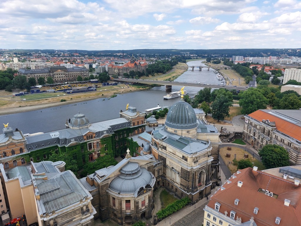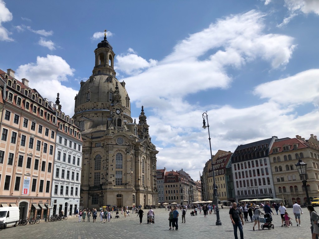 International kennt man Dresden als Kulturstadt. Der Kunst und Kultur galt auch unsere Interessen. Wir haben uns in das touristische Getümmel in Elbflorenz, wie die Stadt auch noch genannt wird, geschmissen. Dresden ist so vielfältig, dass wir uns nur einen winzigen Überblick verschaffen konnten. Bei vier aufeinander folgenden Luftangriffen im Februar 1945 wurden große Teile der Stadt zerstört. Der Wiederaufbau war schwierig und langwierig. Beispielsweise als ich 1991 da war, lagen die Bausteine der zerstörten Frauenkirche noch am Neumarkt. Erst 2005 konnte die Kirche wieder in Betrieb genommen werden. Historische Strukturen im Stadtkern wurden rekonstruiert, und neue Architektur ergibt in den äußeren Bezirken ein modernes Stadtbild. Neben dem Zwinger gehört die ehemalige Tabakfabrik Yenidze zu den markantesten Gebäuden der Stadt. Fabriken sollten nicht das Stadtbild stören, daher wurde sie im Erscheinungsbild einer Mosche 1909 gebaut. Das Minarett versteckt den Schornstein und der Name verweist auf ein Tabakanbaugebiet, das heute in Griechenland liegt, damals aber noch zur Türkei gehörte. Coole innovative Umsetzung einer Bauaufgabe! Heute ist es ein Einkaufszentrum und Bürogebäude.