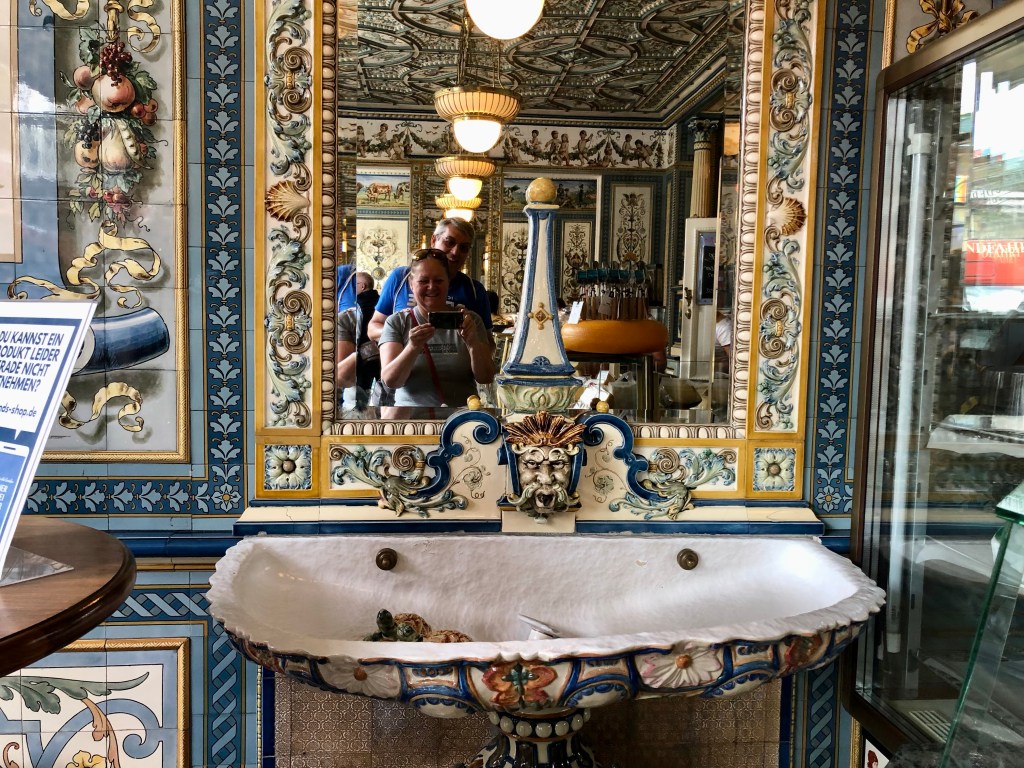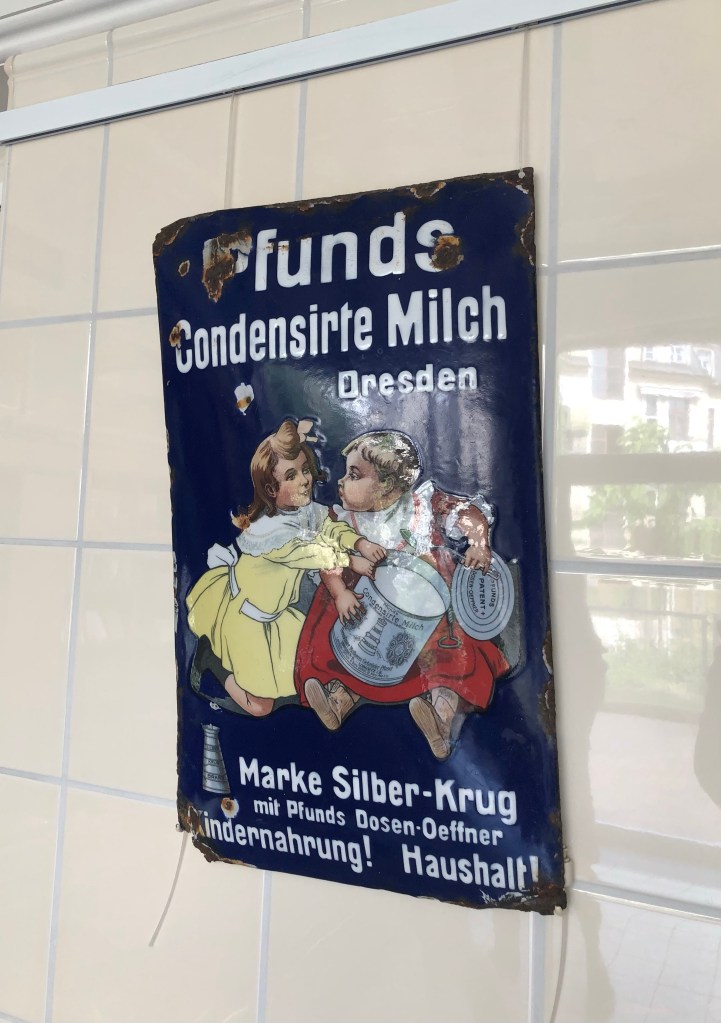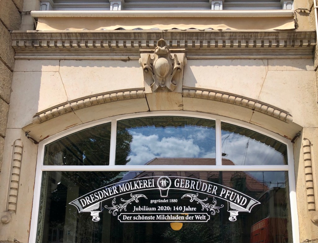 Im Doppeldecker-Bus wurde uns noch einiges über den Erfindergeist der Dresdener erzählt: Erfindung des Melitta-Kaffeefilters, die Reiseschreibmaschine. Odol-Mundwasser, Zahnpasta in der Tube verhalf den Erfindern zu erheblichen Reichtum, so dass sie sich prächtige schlossartige Villen an der Elbe leisten konnten. Auch die erste Kondensmilch aus Pfunds Molkerei hat hier ihren Ursprung. Den Milchladen gibt es noch und nicht umsonst nennt er sich „der schönste Milchladen auf der Welt“.