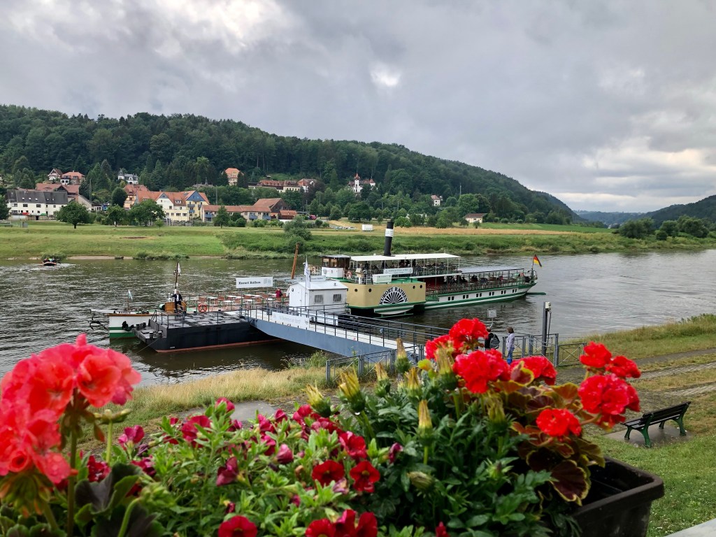 Mit dem Motorrad wagten wir dann den Abstieg von der Bastei nach Rathen zur Fähre. Natürlich fuhren wir auf der Straße und nicht über den Wandersteig mit seinen über 400 Stufen. Rathen erwies sich für motorisierte Fahrzeuge als Sackgasse. Keine weiterführende Straße nach links oder rechts der Elbe entlang und die Fähre war nur für Personen und Fahrräder. Nix mit übersetzen ans andere Ufer! Da hatte sich Meister Garmin wohl geirrt!