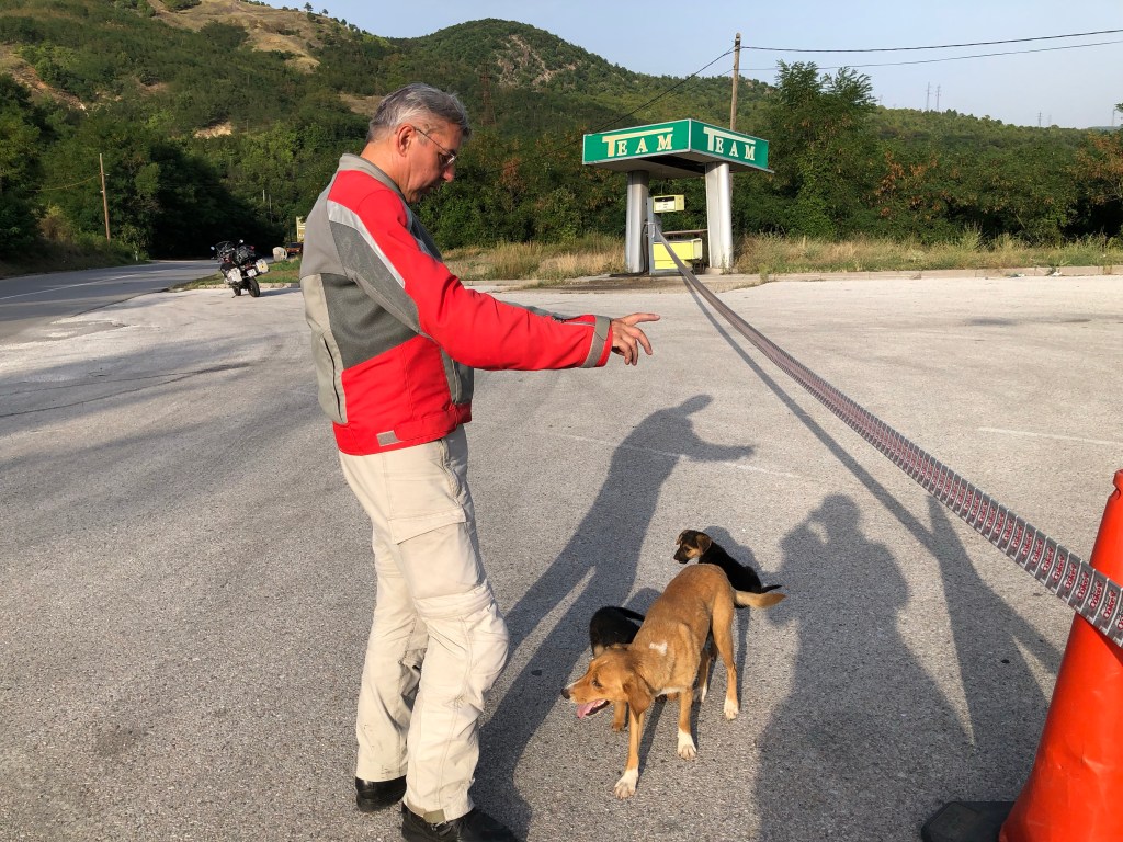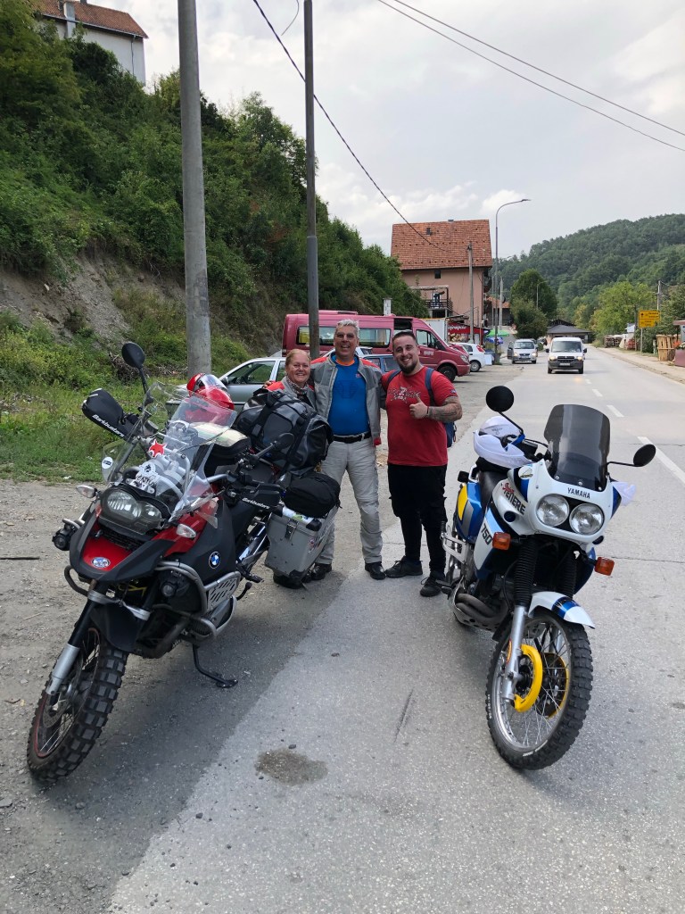 Wusch, rauschte ein serbischer Motorradfahrer an uns vorbei und kehrte in Sichtweite wieder um. Neben uns bremste er und hielt mit seiner Maschine an. Freundlich stellte er sich vor und lud uns auf einen Kaffee in das Strassen-Cafe vis a vis ein. Damit hatten wir nicht gerechnet. Gerne nahmen wir die Einladung an und unterhielten uns natürlich über die Motorräder und die Leidenschaft, die damit verbunden ist. Vladimir gab uns noch ein paar Tipps für die Weiterfahrt in den Kosovo. Noch schnell wurden die Social Media Daten getauscht. Vielleicht fährt man sich ja irgendwo wieder über den Weg.