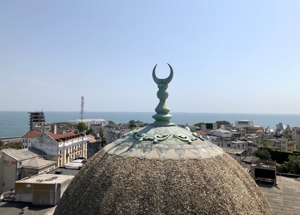 Der erste Eindruck entsprach nicht ganz meinen Erwartungen, trotzdem fühlte ich mich gleich recht wohl. Unser erster Orientierungsspaziergang durch die Altstadt runter zur Promenade am Meer zeichnete ein Bild zwischen Verfall und Baustopp. Schöne heruntergekommene alte Häuser wechselten mit neuen Ruinen, denen entweder das Geld für die Fertigstellung ausgegangen war oder die Investoren abhanden gekommen waren. Die Stadtverwaltung hatte wenigstens erkannt, dass eine Sanierung des Wahrzeichens der Stadt, das Casino, ein Architekturjuwel aus dem Jugendstil, dringend renoviert gehört. Über den Baugittern leuchtet schon der neue weiße Anstrich. Aber insgesamt bot sich ein Bild einer prächtigen Stadt. Unterschiedlichste Baustile spiegeln die diversen kulturellen Einflüsse wieder. Es war ein lauer Sommerabend und das dunkelblaue Meer klatschte an die Kaimauern. Viele Urlauber schlenderten am Hafen mit den Ausflugsbooten entlang und langsam füllten sich die Bars und Restaurants. Urlaubsstimmung überall. Wir nahmen ein paar Drinks und planten den nächsten Tag. Die Besichtigung der Moschee und der Altstadt bei Tageslicht war fix. Zum Strand runter und im Reiseführer war das Delphinarium sehr empfohlen worden. Also wir hatten einen Plan. Und was der nächste Abend so bringen würde, liessen wir auf uns zukommen. Der Flohmarkt am Ovid-Platz, direkt vor unserer Haustüre war ja sicher noch offen, das war klar. Ausserdem wohnten wir über dem ZIG ZAG Pub, wo wir ein Bierchen vor dem nach Hause Weg für die durstigen Kehlen trinken konnten.