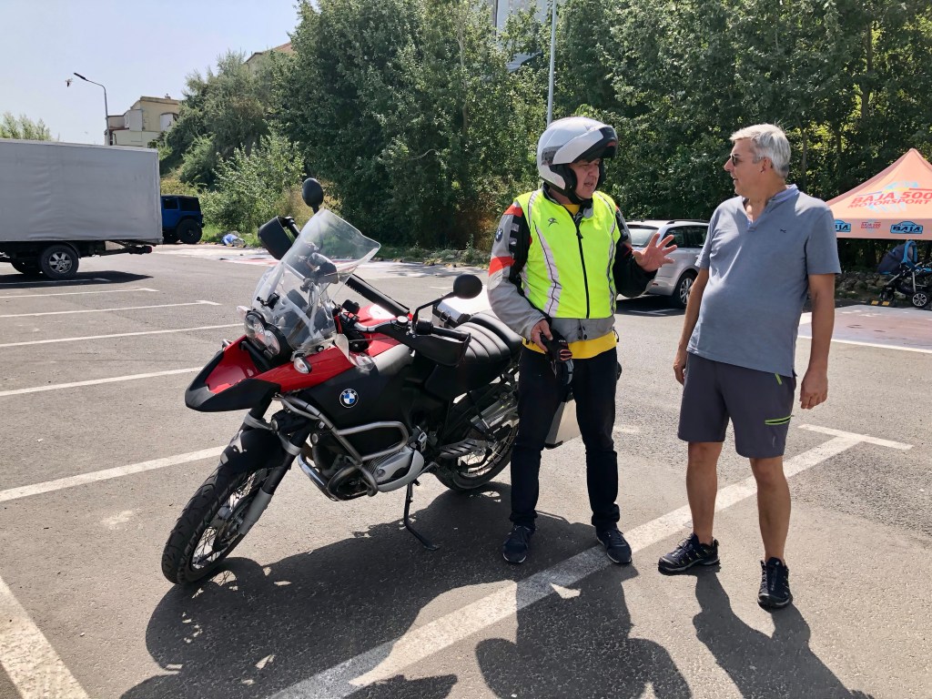 Als wir so dahin schlenderten, erweckten ein paar KTM Motorräder unsere Aufmerksamkeit. Stand da auf einem Schild 4V Rally Raid? Etwas weiter hinten am Parkplatz erspähte der Bock-Chef eine BMW 1200 GS Adventure auch in rot, so wie unser Bock. Den Besitzer der Maschine, Mihai, fragten wir was hier los ist. Er erklärte uns, dass jedes Jahr eine Off Road Ralley um diese Zeit hier stattfindet. Die Motorräder seien grade auf der Strecke und er gehört zum Organisationsteam . Es wurde gleich gefachsimpelt über den Bock und über Rumänien. Wir tauschten die Telefonnummern, vielleicht geht sich ein Bier in Brasov aus, wenn wir übernächste Woche dort sind.