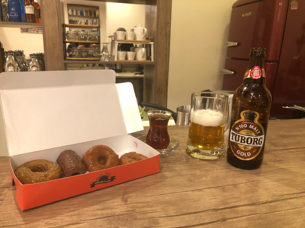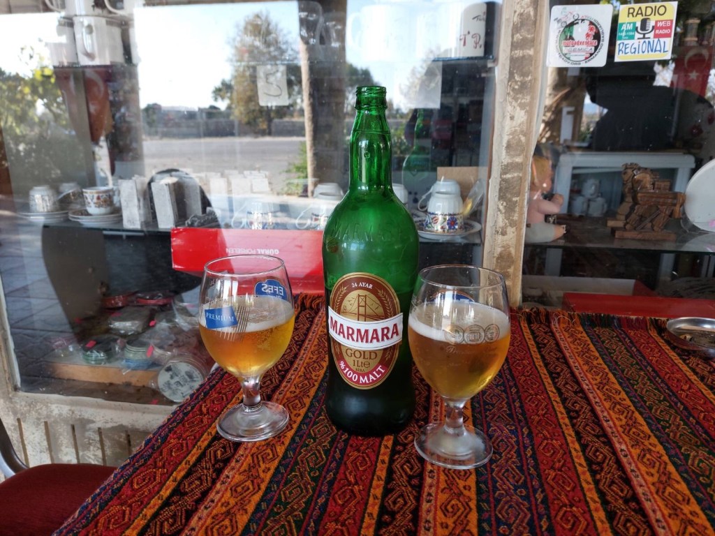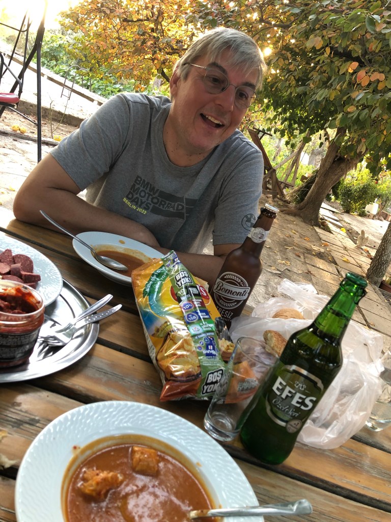 Hier gibt es zumindest „the best beer ever Bomonti“ im Supermarkt. Passt gut, weil wir hier privat wohnen und im Garten Jause essen können.