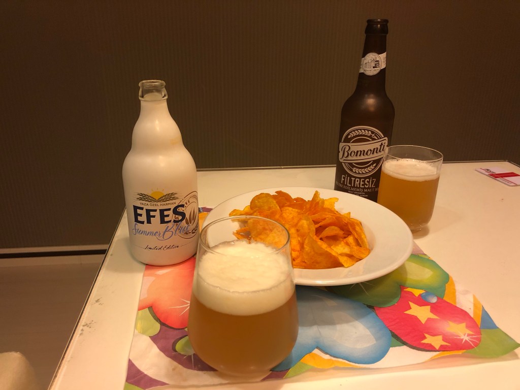 Bomonti und Efes Spezial (aus dem Getränkeladen), gemütlich im Garten genossen.