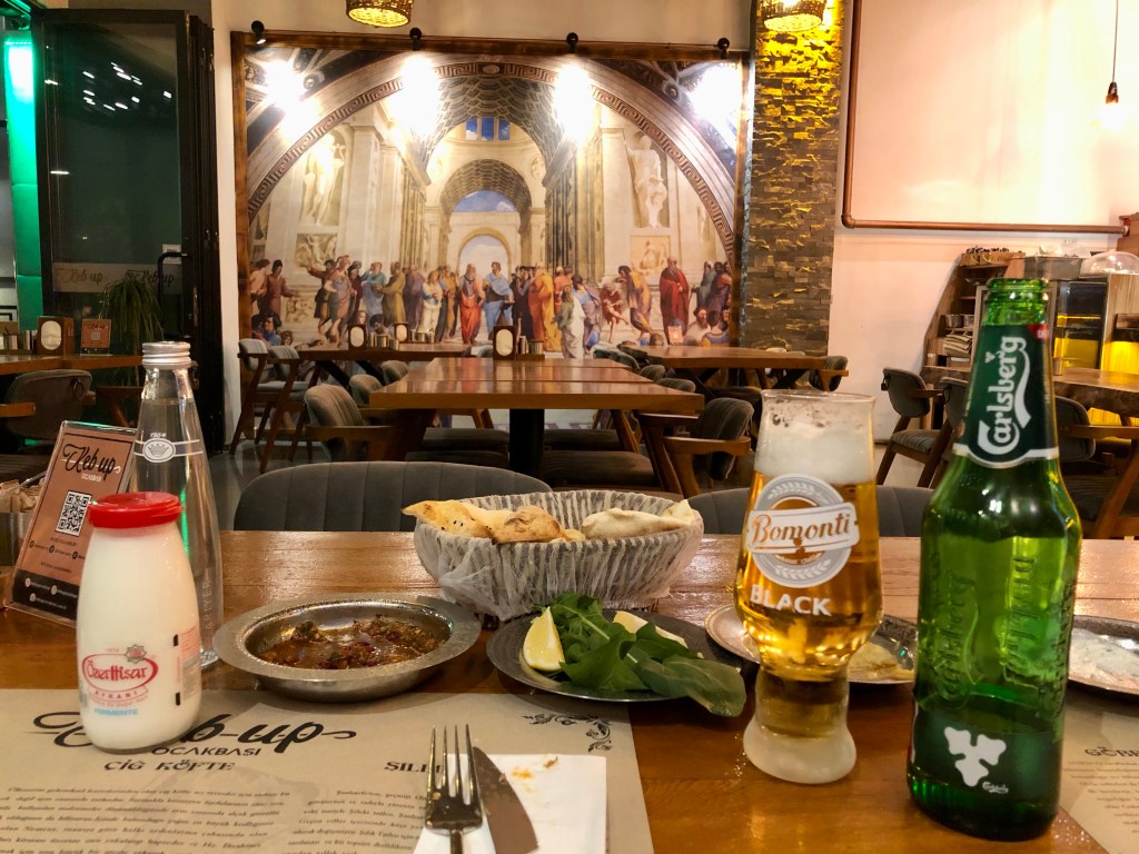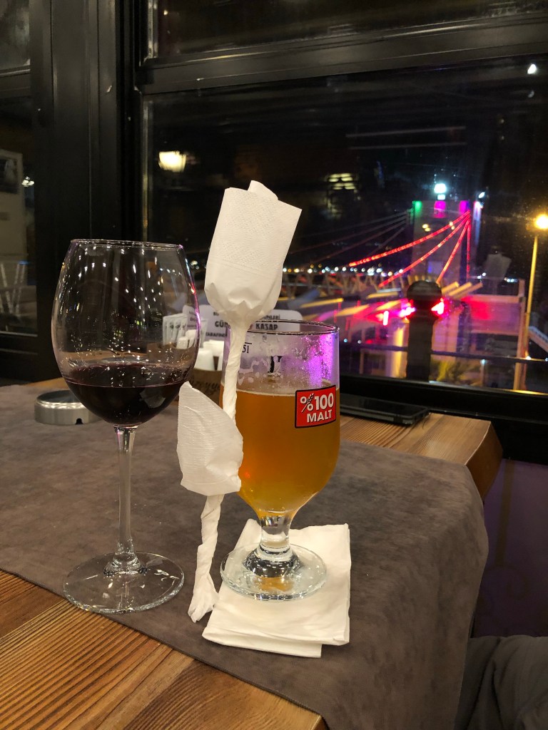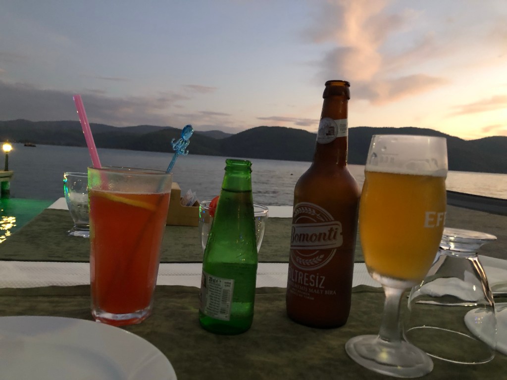 Endlich wieder ein Bomonti! Wir mussten den Alkohol im unauffälligen schwarzen Sackerl in der finsteren Seitengasse im Schnapsladen um die Ecke kaufen.