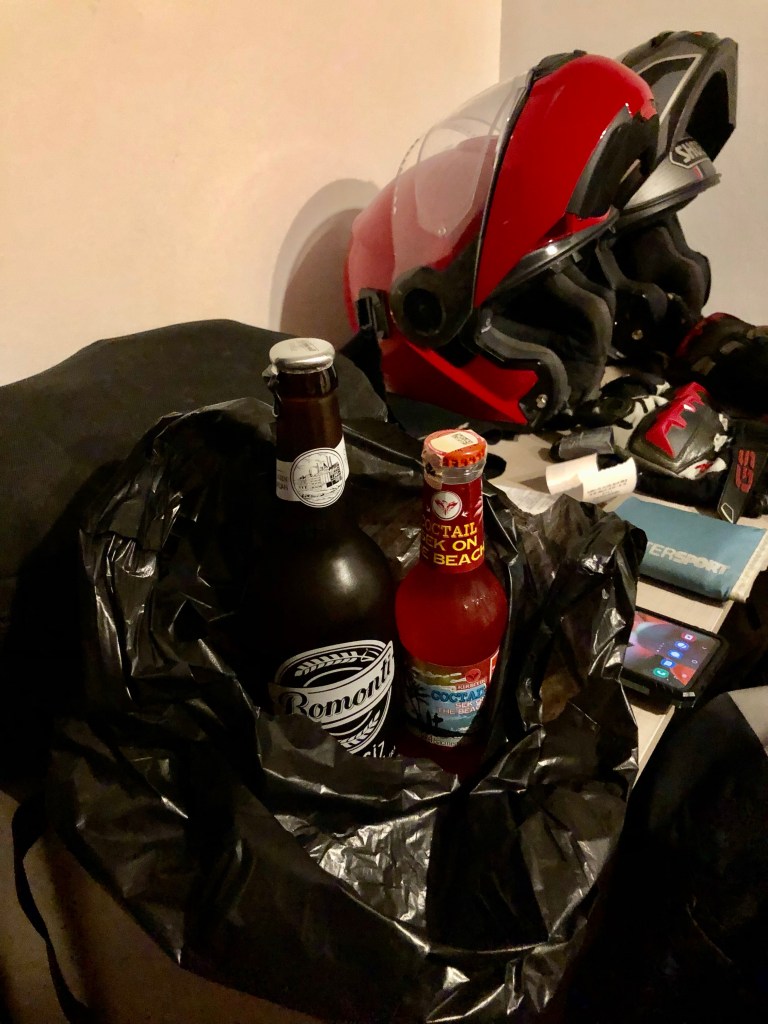 Nachdem heute nicht mit dem Motorrad gefahren wurde, genehmigte sich der Bock-Chef noch ein KLEINES Bierchen. Amüsant, dass es wirklich so kleine Bierflaschen gibt 🙂