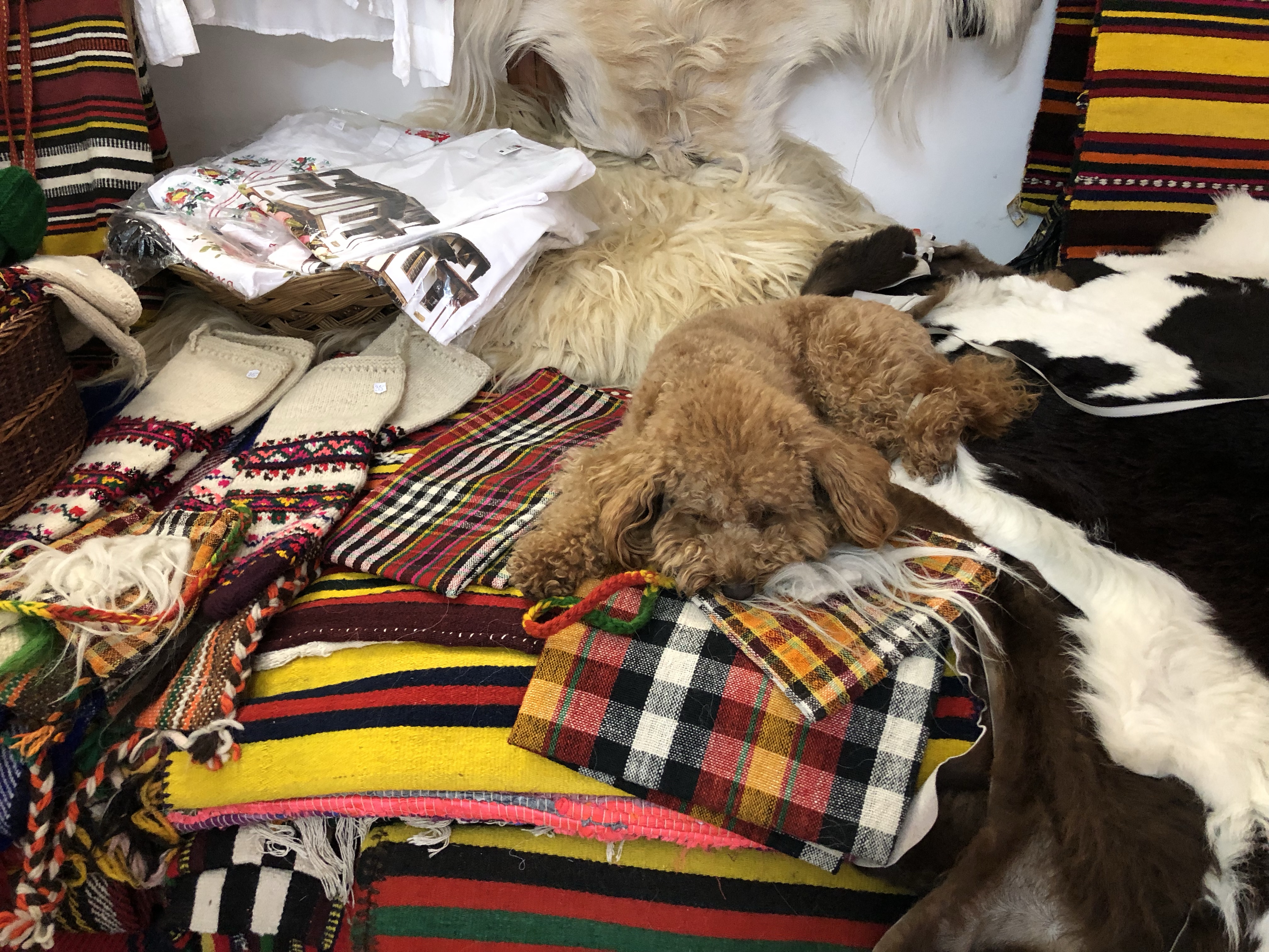 Intuitiv gefiel mir im Rila Museum die Tracht der Region Smolyan (ein Bezirk in Bulgarien) besonders gut. Ein kräftiges orange, rote, gelbe und grüne Fäden werden zu Karostoffen oder gestreiften Läufern verarbeitet. Dazu trägt man reich bestickte Jacken und Tücher. Das war schon die richtige Einstimmung für den nächsten Tag, da durchstreiften wir in der Tat die Region Smolyan. Angeblich stammen die Urahnen vom Bock-Chef von hier. Aus in der Familie leider nicht bekannten Gründen hat es scheinbar einige vom Clan der südslawisch-bulgarischen Smolyans nach Ungarn verschlagen, wo ein „z“ beim Namen dazu kam – Szmolyan. Als das Burgenland vor 100 Jahren von Ungarn getrennt wurde und zu Österreich kam, wurden die unmittelbaren Vorfahren mit dem „z“ Österreicher. Das ist in etwa der Familienstammbaum im Schnelldurchlauf. Vielleicht sollten wir die Wurzeln noch weiter erforschen?