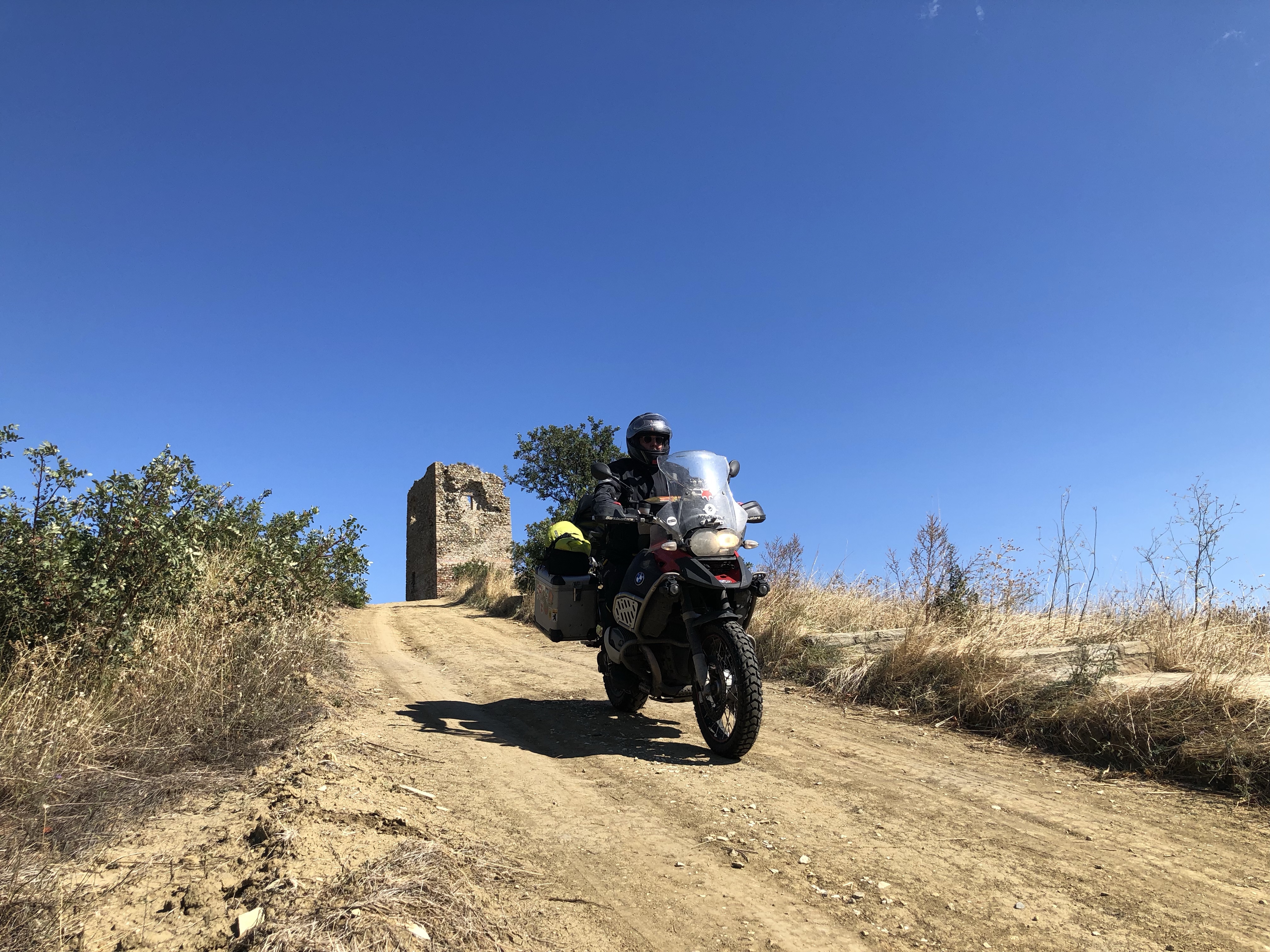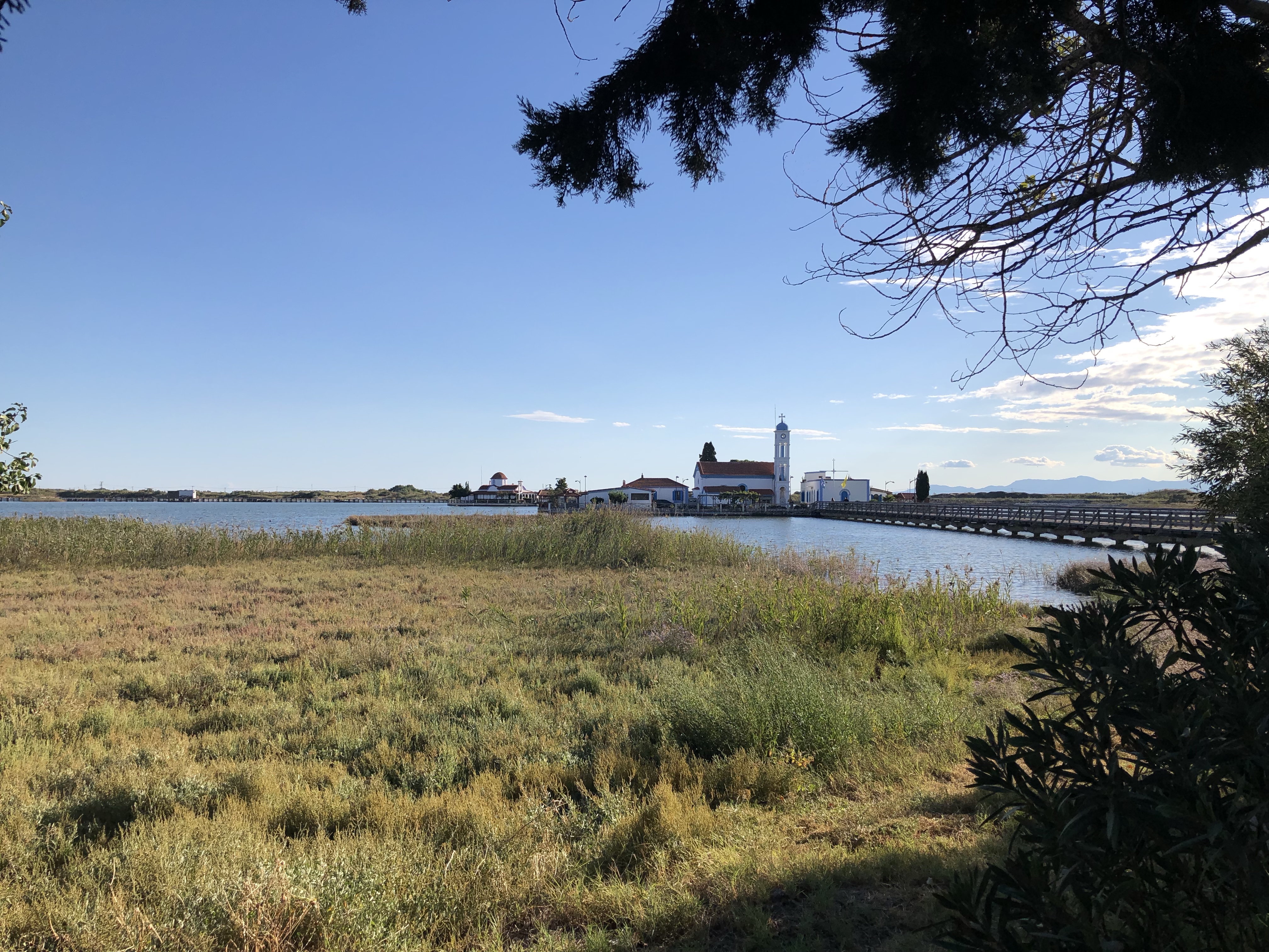 Der Bock-Chef gönnte sich eine spritzige Offroad-Einlage beim aus dem 13./14. Jahrhundert stammenden Turm von Apollonia. Ein Mal rauf und ein Mal runter mit traumhaften Views in die Ferne! Dann wurde die Landschaft wieder flacher und die Seen von Porto Largos mit dem Kloster des Hl. Nikolaus tauchten auf. Die Monasterie liegt mitten im See und ist über einen Holzsteg zu erreichen. In den Brackwasser-Seen des Naturschutzgebietes leben Flamingos und es wird Salz gewonnen, so wie in der Camargue in Frankreich.