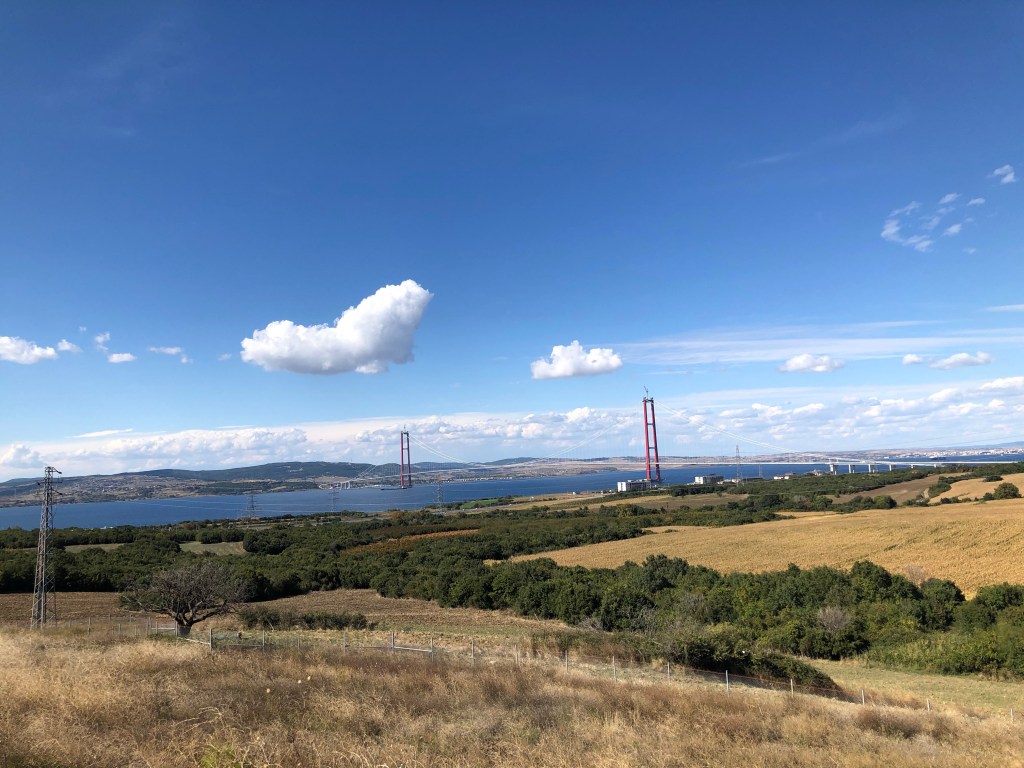 Unser erstes Ziel Troja/Truva (türkisch) Ziele lag südlich von Canakkale. Das gab uns gleich die Möglichkeit, die erst im März 2022 eröffnete Canakkale-1915-Brücke zu überqueren. Mit einer Spannweite von 2023 m und einer Höhe von 318 m ein ziemlich beeindruckender Bau und eine großartige Ingenieursleistung. Die Brücke ist die längste Hängebrücke der Welt. Die Bauzeit betrug nur fünf Jahre. Symbolträchtig sind die Daten: 1923 Gründung der modernen Türkei – Länge der Brücke 2023 m; 1915 Erinnerung an die Schlacht von Gallipoli im Ersten Weltkrieg; Höhe der Pylonen 318 – 18.3. – ebenfalls Bezug auf die Schlacht und die Eröffnung am 18.3.2022 genau zur 107. Jahresfeier. Jetzt entlastet sie die Fährverbindung in den Dardanellen und ist eine wichtige Verbindung zwischen Europa und Asien.
