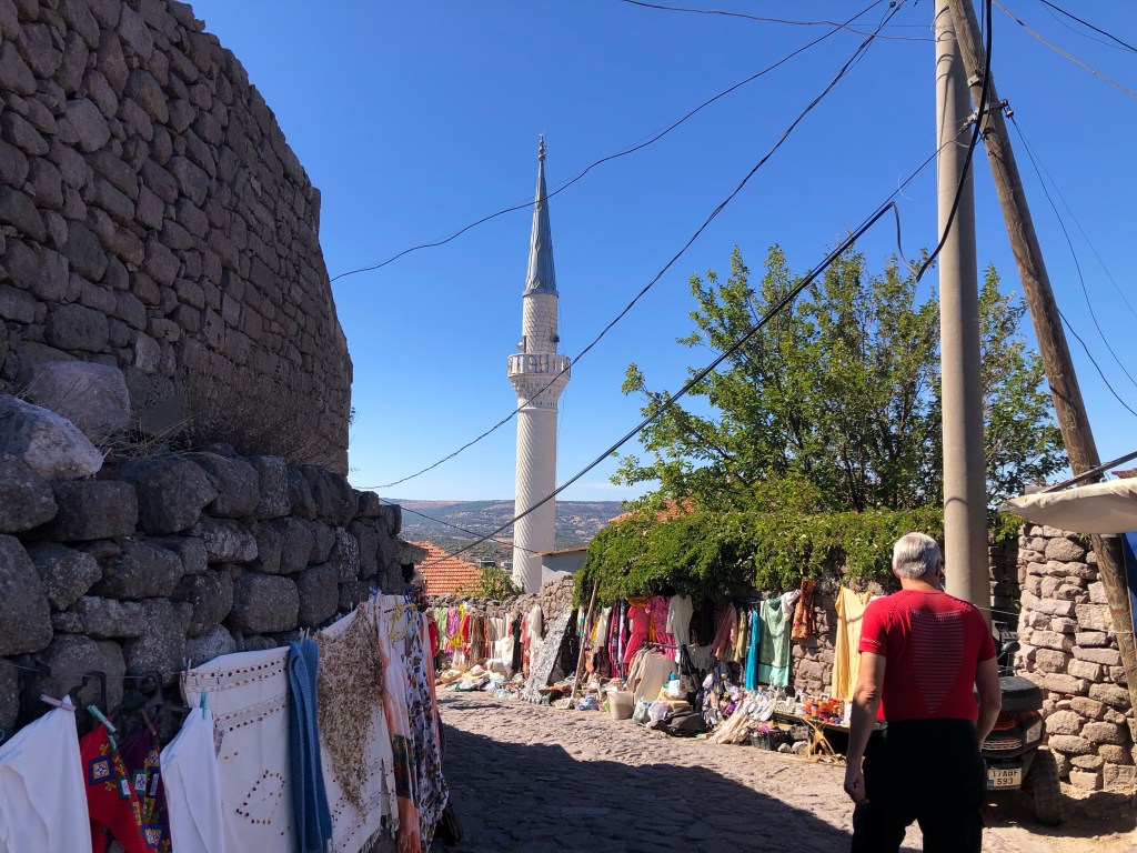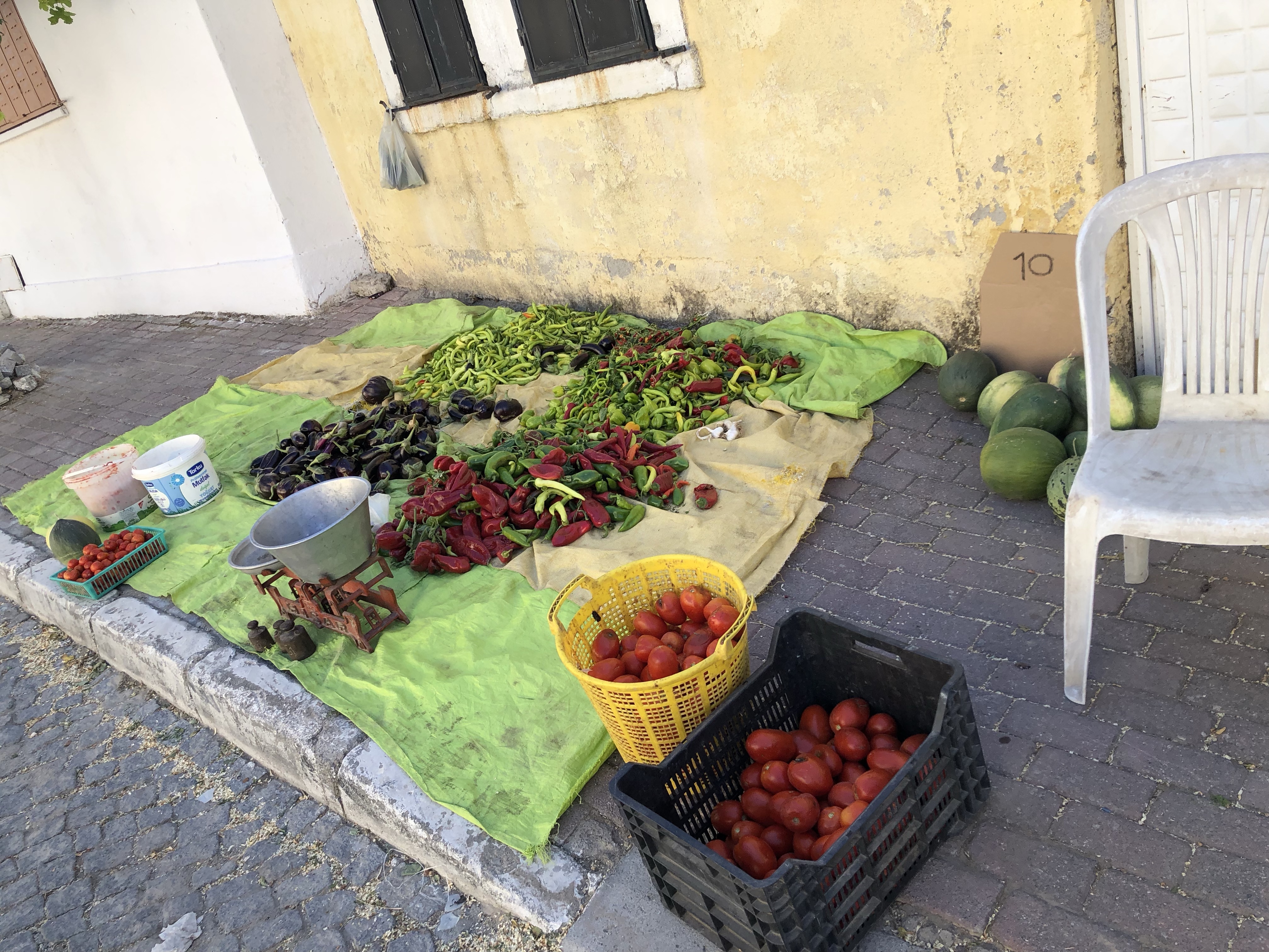 Kein vorankommen, denn bald schon leuchtete uns der Burgberg von Assos entgegen. Abermals eine gigantische Verteidigungsanlage mit Tempelbauten, die weit hin für die ankommenden oder passierenden Schiffe sichtbar waren. Die profanen Häuser reihen sich unterhalb der Festung auf den steilen Anstiegen entlang der noch mit Steinen gepflasterten engen Straße. Händler haben hier heute dicht an dicht ihre Läden schwer mit touristischen Souvenieren und sonstigen Firlefanz aufgerüstet. Ob das alles jemals gekauft wird ist die Frage? Nur gelegentlich findet man Gewürze, selbst gemachte Marmeladen und eingelegte Oliven. Der Blick oben am Plateau von Assoa kann weit über das türkisblaue Meer schweifen.