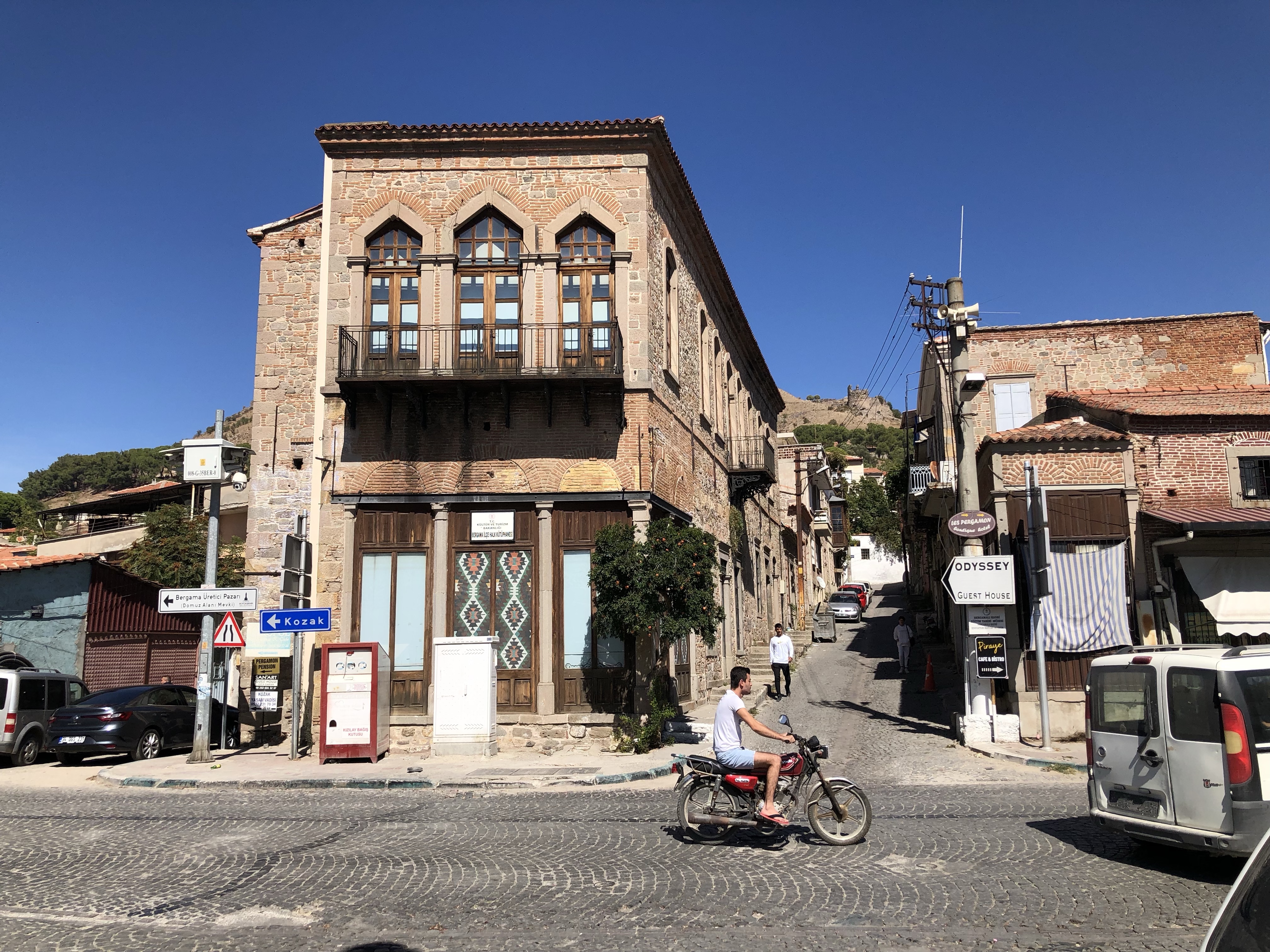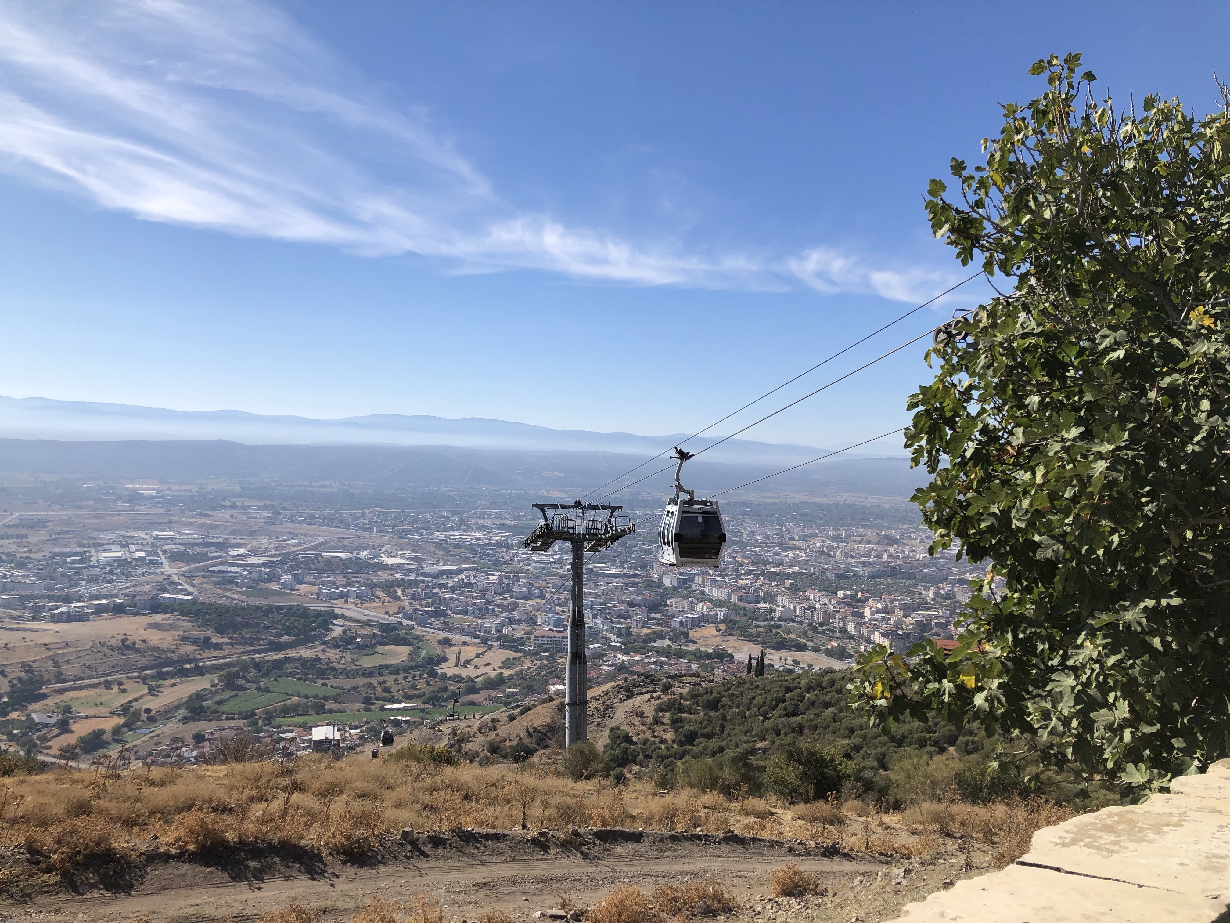 Nach einem reichhaltigen türkischen Frühstück marschierten wir los zur Seilbahn, die zur Akropolis von Pergamon fährt. Pergamon, sollte ja eine zweites Athen werden und dementsprechend großzügig war die Burg und das Tempelareal angelegt. Hoch oben auf einem Felsplateau reihten sich einst mehrere Heiligtümer aneinander, Paläste für die Könige und hochrangige Würdenträger. Die Details zur Geschichte von Pergamon könnt ihr selber nachlesen. Der Namen leitet sich wahrscheinlich von Pergament ab, das angeblich hier erfunden wurde. Auch war Bergama im Altertum für seine Kurbäder bekannt. Die Unterstadt in der Ebene war für das einfache Volk angelegt. Die Straßenachsen richteten sich nach den Tempelanlagen am Berg aus. Der heutige Altstadtkern ist noch sehr vom osmanischen Charakter geprägt. Für uns natürlich eine ganz andere Welt, aber wir mögen das.