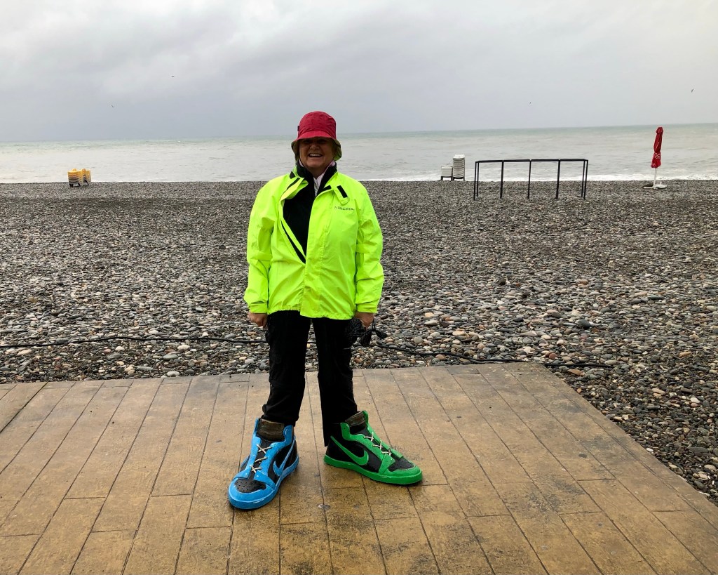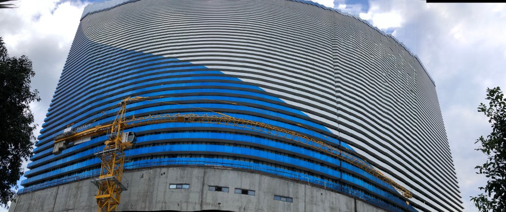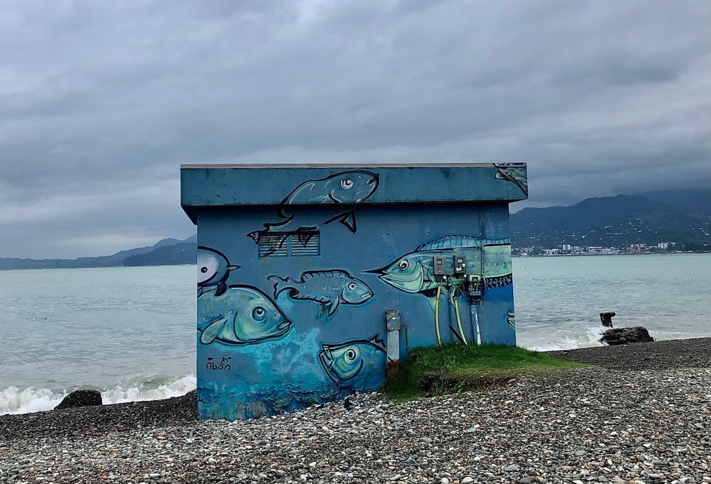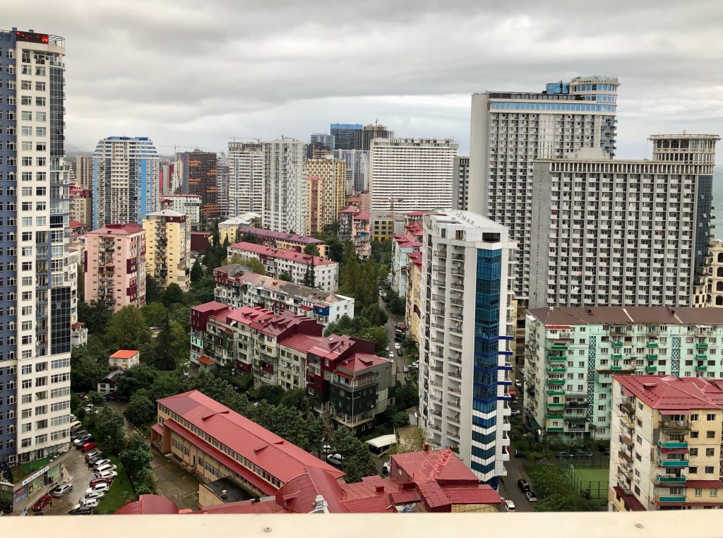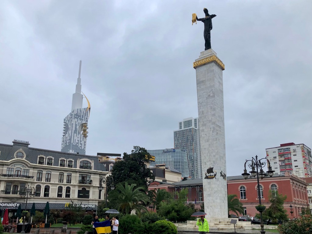 Unser erstes Ziel war – ein paar Kilometer hinter der Grenze – Batumi, eine der großen Städte Georgiens – 172.000 Einwohner/Stand 2021. Das wären grob 2.652 pro Quadratkilometer. Bei so einer Dichte an Personen muss logischerweise in die Höhe gebaut werden. An der Schwarzmeer Küste ragen eine Menge Wolkenkratzer und Hochhäuser in den Himmel. Irgendwo dort musste auch unser Quartier sein. Leider hatte Meister Garmin Probleme mit der georgischen „Schlingerl-Schrift“. Ich muss auch gleich gestehen, auch wir können hier nix lesen. Als wir so suchend herumfuhren, gabelte uns ein ortskundiger Motorradfahrer auf und brachte uns sicher die paar Straßen weiter zu unserem Wohntower. Der Bock gesellte sich zu zwei russischen Motorrädern am Straßenrand. Wir hatten uns eine kleine Wohnung in der Orbi City gemietet, ein Apartment-Hotel mit 3.000 Wohneinheiten. Es war ein ständiges kommen und gehen. 12 Lifte fuhren nur in dem einen Komplex ständig zwischen dem Erdgeschoss und dem 47. Stock auf und ab. Gefährlich hingen bereits dunkelschwarze Wolken am Himmel und der Wind pfiff vom Meer landeinwärts. Schnell holten wir uns beim Spar vis a vis den nötigen Proviant für das Abendessen und das Frühstück, bevor es so richtig zum Herunterprasseln anfing. Die Stadtbesichtigung und die weiteren Besorgungen war somit auf den nächsten Tag verschoben.