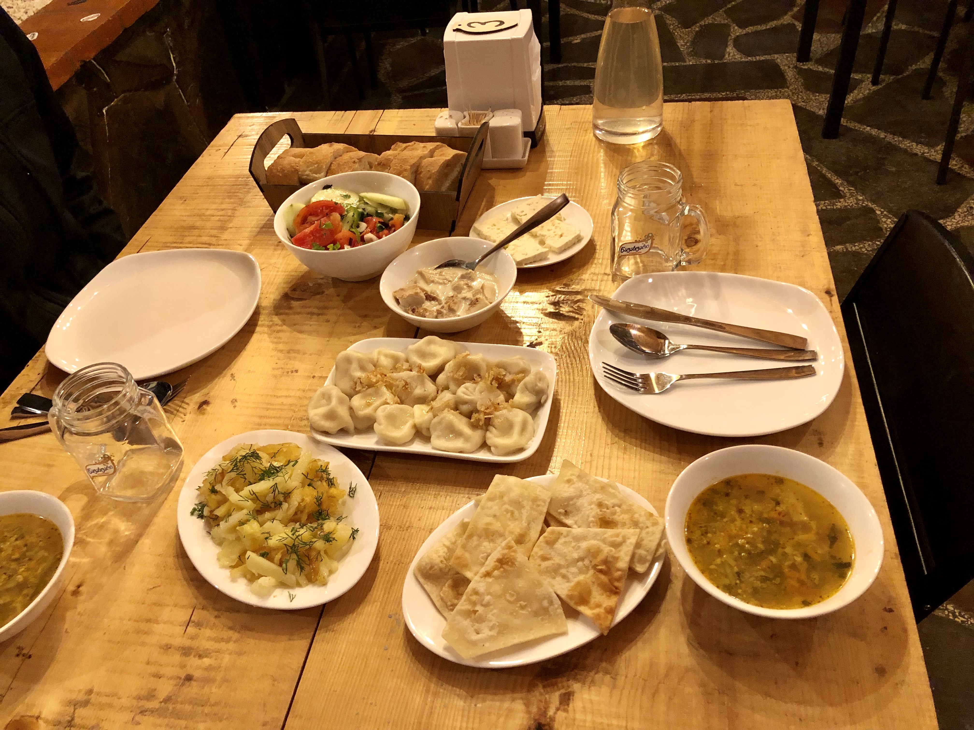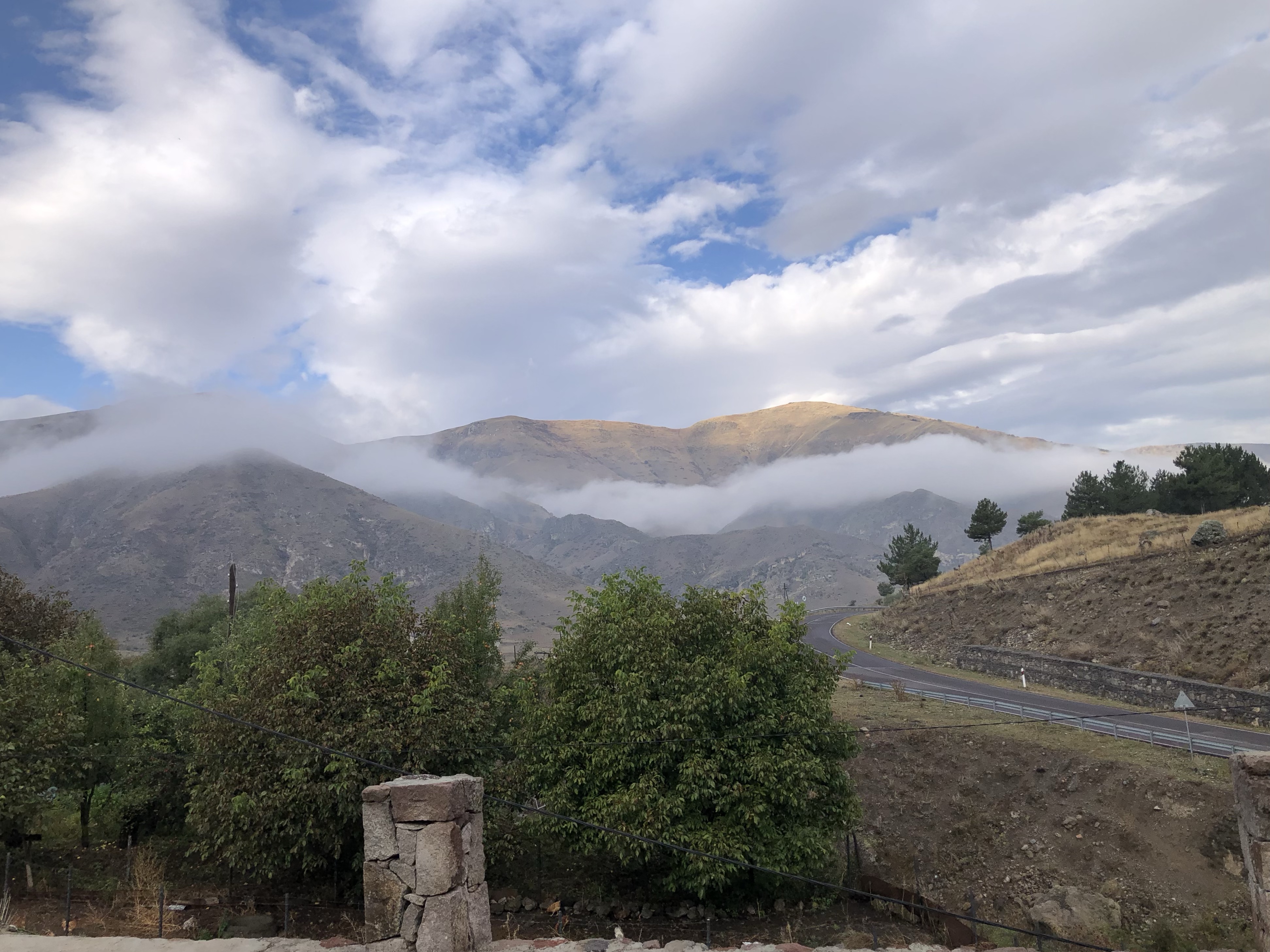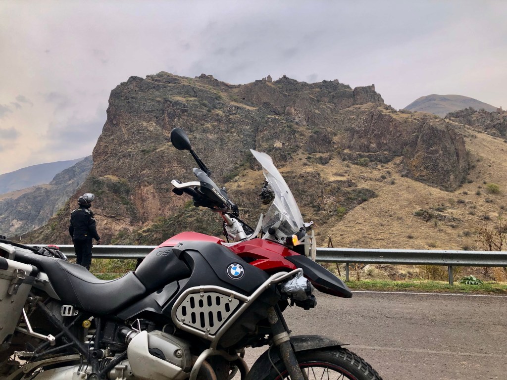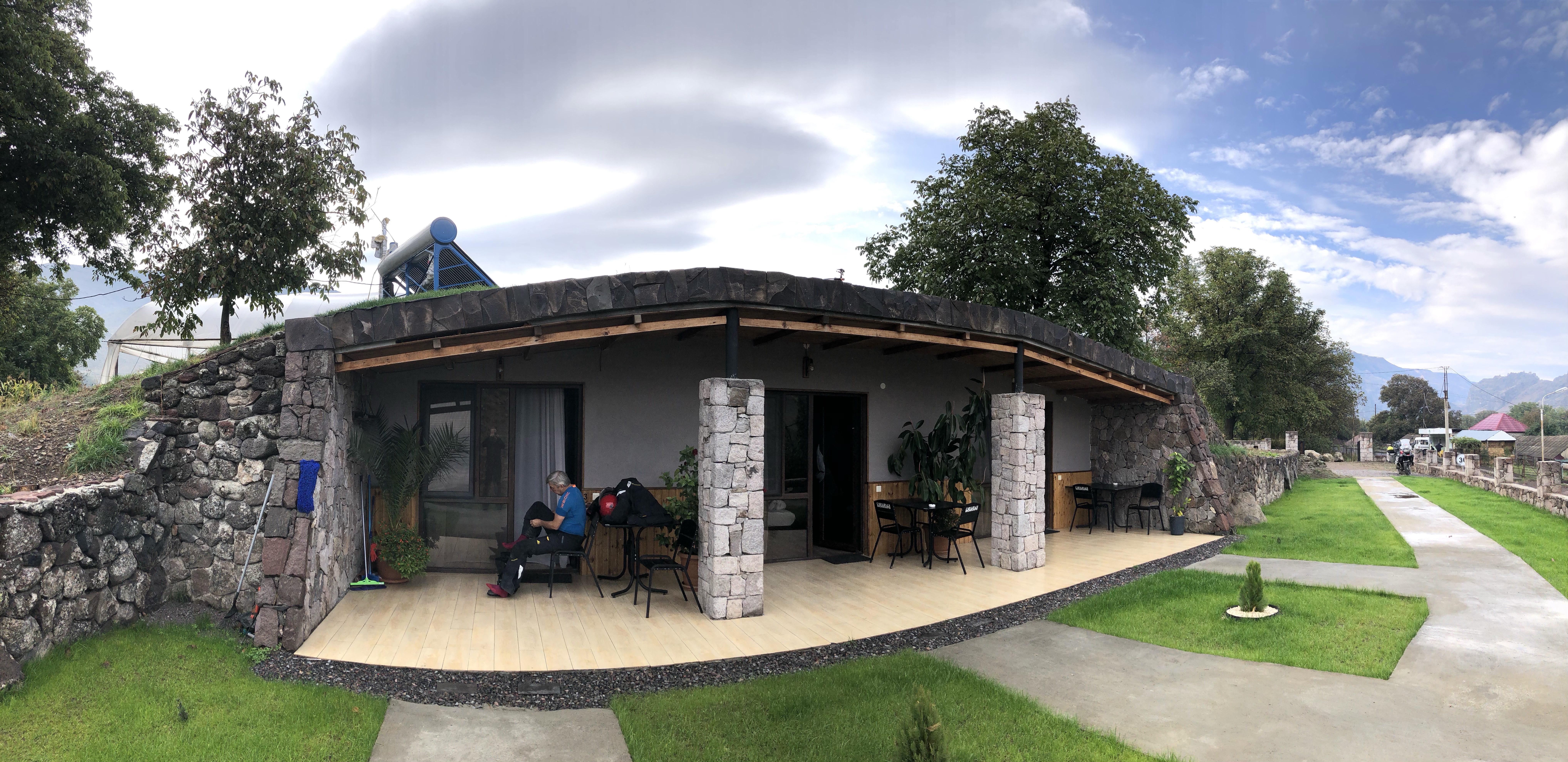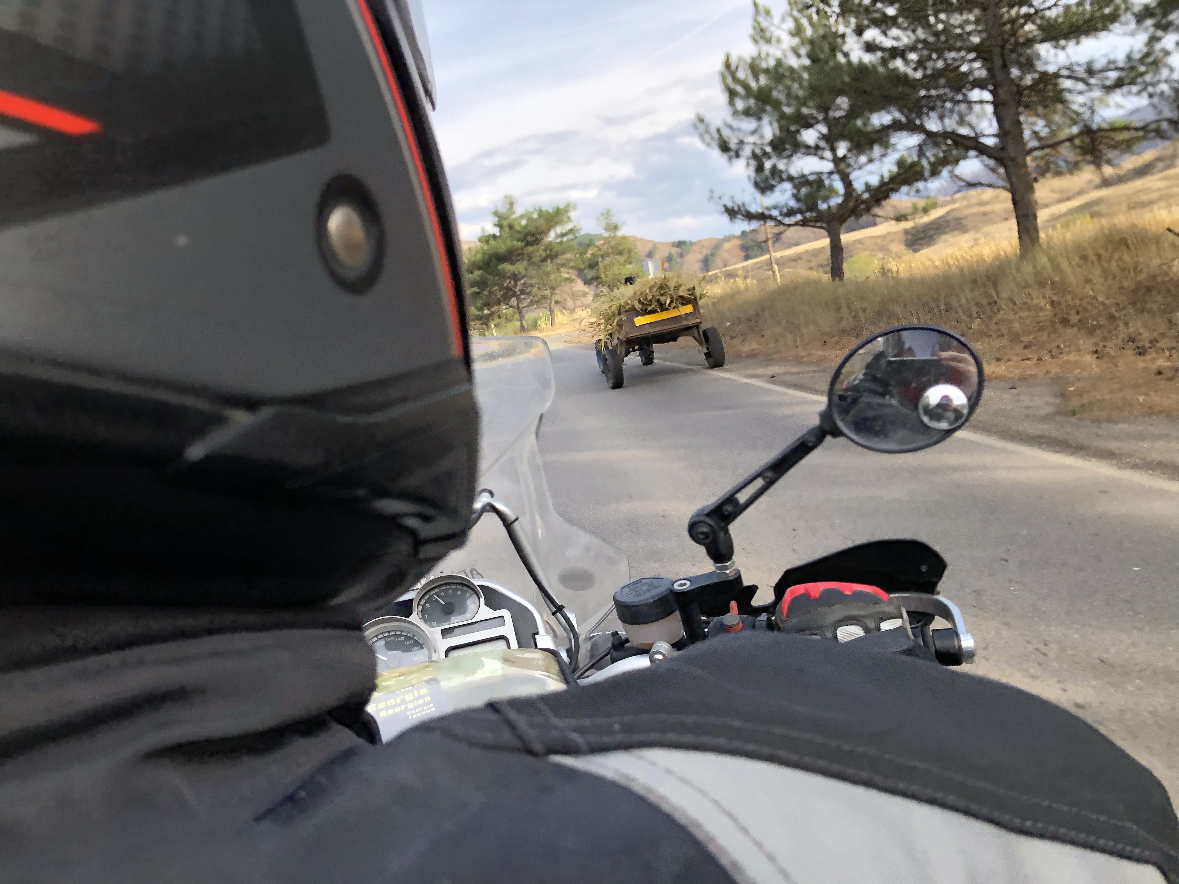 Und dann kurvten wir weiter in südliche Richtung. Ungewollt landeten wir auf der Transitstrecke nach Tiflis mitten in einer vieeeeeele Kilometer langen Baustelle. Ganze zwei Stunden waren wir im Staub und im Verkehrsstrom gefangen bevor die Abzweigung nach Vardzia kam. Bei einem Tankstopp kam ein Polizist auf uns zu, um einen Alko-Test beim Bock-Chef zu machen. Während der Zapfhahn im Tank steckte, wurde brav ins Röhrchen gepustet. No Comment, zu der Aktion! Auf alle Fälle macht so was ein Land und seine Leute nicht gerade sympathischer. Die letzten 60 Kilometer waren eine landschaftlich wunderbare Entschädigung für die Strapazen davor. Und besonders fein hatten wir es in dem kleinen ganz neuen Hotel Hobbiton in Tmogvi, wo die Dame des Hauses ein köstliches georgisches Abendessen aus den eigenen Produkten vom Garten zauberte.