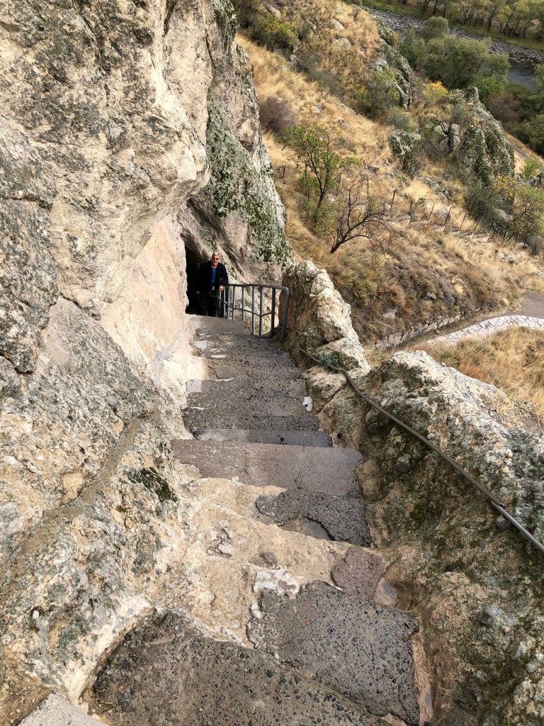 Nur wenige Kilometer weiter konnten wir bequem und ausgeschlafen die Höhlenstadt Vardzia (Wardsia) besuchen. Die Stadt liegt verborgen in einem Canyon. Bauherr war der georgische König Giorgi III. Er plante die Stadt als Grenzfestung gegen Türken und Perser. Seine Tochter, Königin Tamar, vervollständigte das Bauwerk und richtete sie als Kloster ein. Während eines militärischen Konflikts mit den Seldschuk-Türken lebte sie von 1193 bis 1195 mit ihrem Gefolge in der Stadt. Wir sind sicher über 1000 Stiegen rauf und runter geklettert. Teilweise sind die Treppen ziemlich hoch und steil. Es soll an die 3000 Wohnungen in der Felswand gegeben haben. Ein Teil wurde bei einem Erdbeben 1283 zerstört. Die Regentschaft von Königin Tamara war angeblich das goldene Zeitalter Georgiens. Sie modernisierte die Politik und belebte die Wissenschaft und die Kultur. Zahlreiche Legenden wurden um die idealisierte Figur der Königin Tamara gewoben. Der Besuch von Wardsia war wirklich aussergewöhnlich.