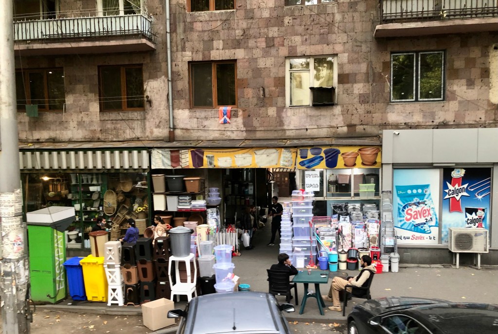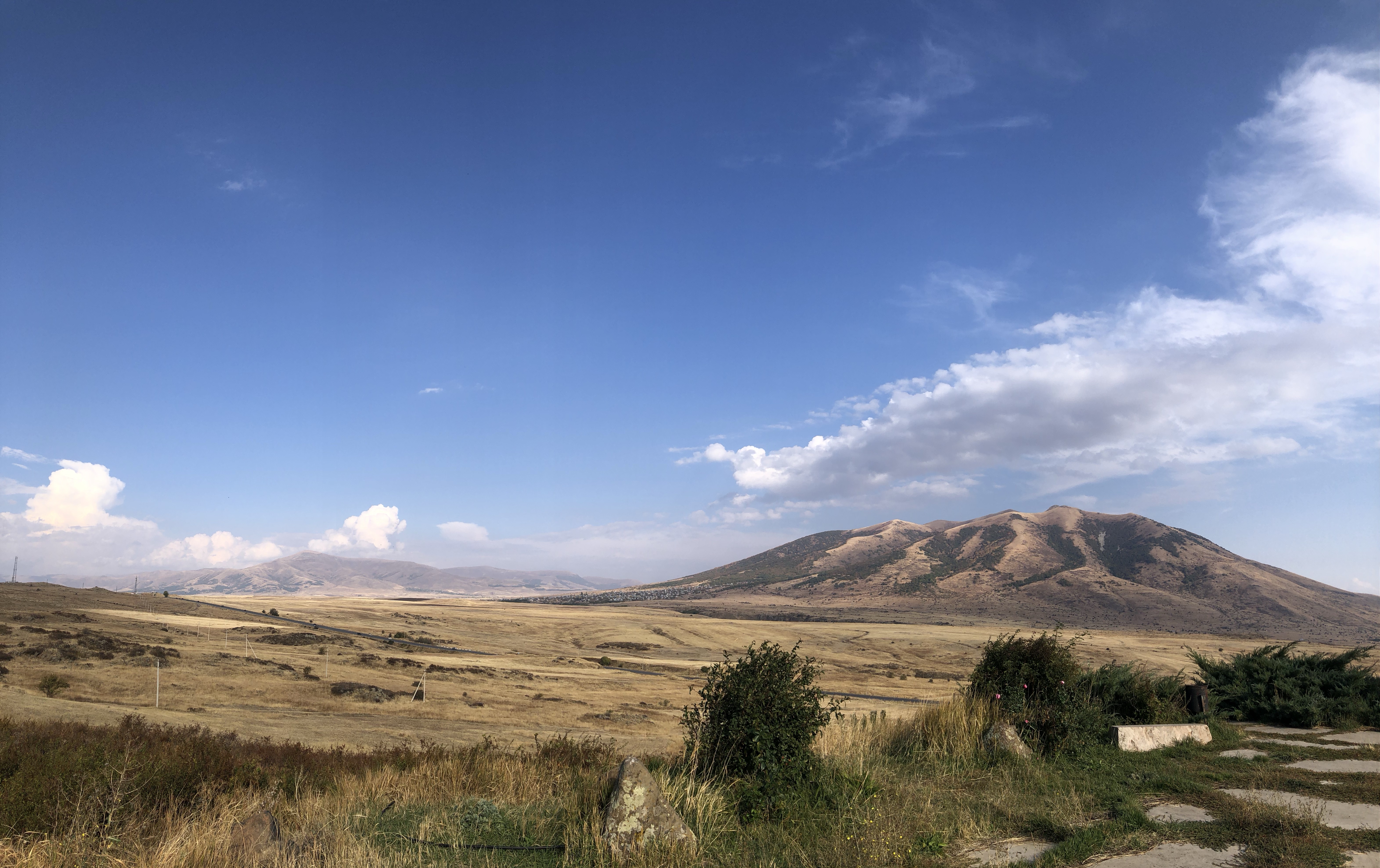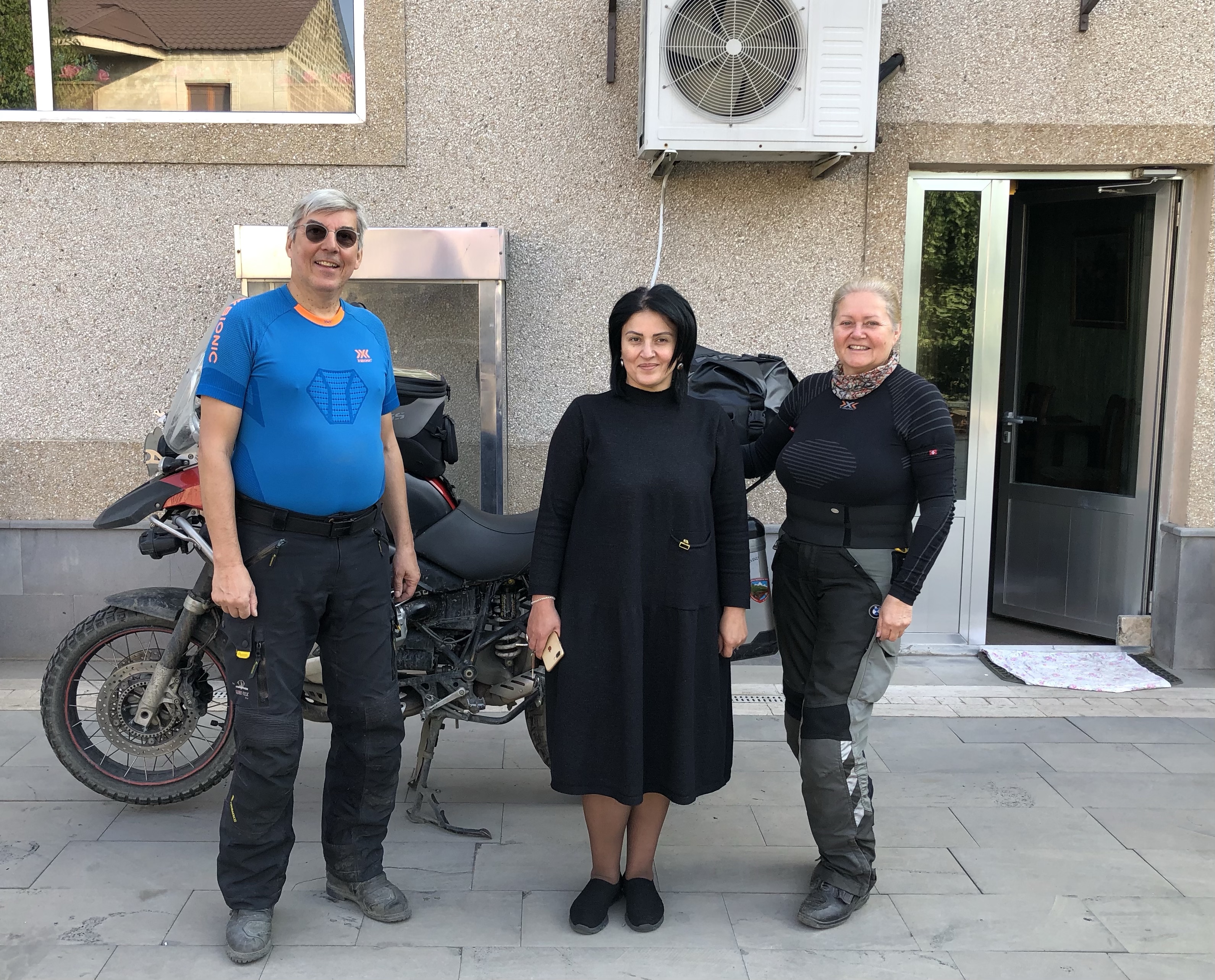 Wir kamen am Sonntag nach Armenien, eigentlich kein starker Reisetag und vor allem kaum LKW-Transitverkehr. Es war nichts los an der Grenze, dennoch brauchten wir für die Einreiseformalitäten zwei Stunden. Huch! Ich wartete bei pfeifendem Wind am Parkplatz vor der Zollstation beim Bock auf den Bock-Chef und war schon ziemlich in Sorge, dass er nicht mehr aus der Grenzstation raus kommt. Endlich öffnete sich die Schiebetür und alle Papiere waren ausgehändigt, die für einen Verbleib des Bocks in dem Land nötig sind. Dann rollten wir in eine uns völlig unbekannte Region. Sanfte kahle Hügel so weit das Auge reichte, einfache Dörfer mit flachen, auf uns heruntergekommen wirkende Häuser, schlammige Seitenstraßen und extrem viele Schlaglöcher prägten den ersten Eindruck. Es wirkte fast wüstenartig. Daran mussten wir uns erst gewöhnen. Dann erschien in der Ferne die Kulisse von Jerewan. Meister Garmin manövrierte uns gekonnt einige Kilometer durch die Müllhalden der Millionenstadt, bevor wir unser Gästehaus am Stadtrand erreichten. Jerewan ist ein extrem teures Pflaster und daher haben wir uns für diese Variante entschieden, ausserdem war die Lage super für unsere geplanten Ausfahrten in Armenien, ohne sich immer durch das Großstadtgewusel drängen zu müssen. Wir hatten eine so bezaubernde und hilfsbereite Gastgeberin. Danke Hermine! Es fehlte wirklich an nichts; Supermarkt und günstiges gutes Restaurant gleich nebenan.