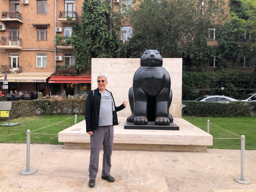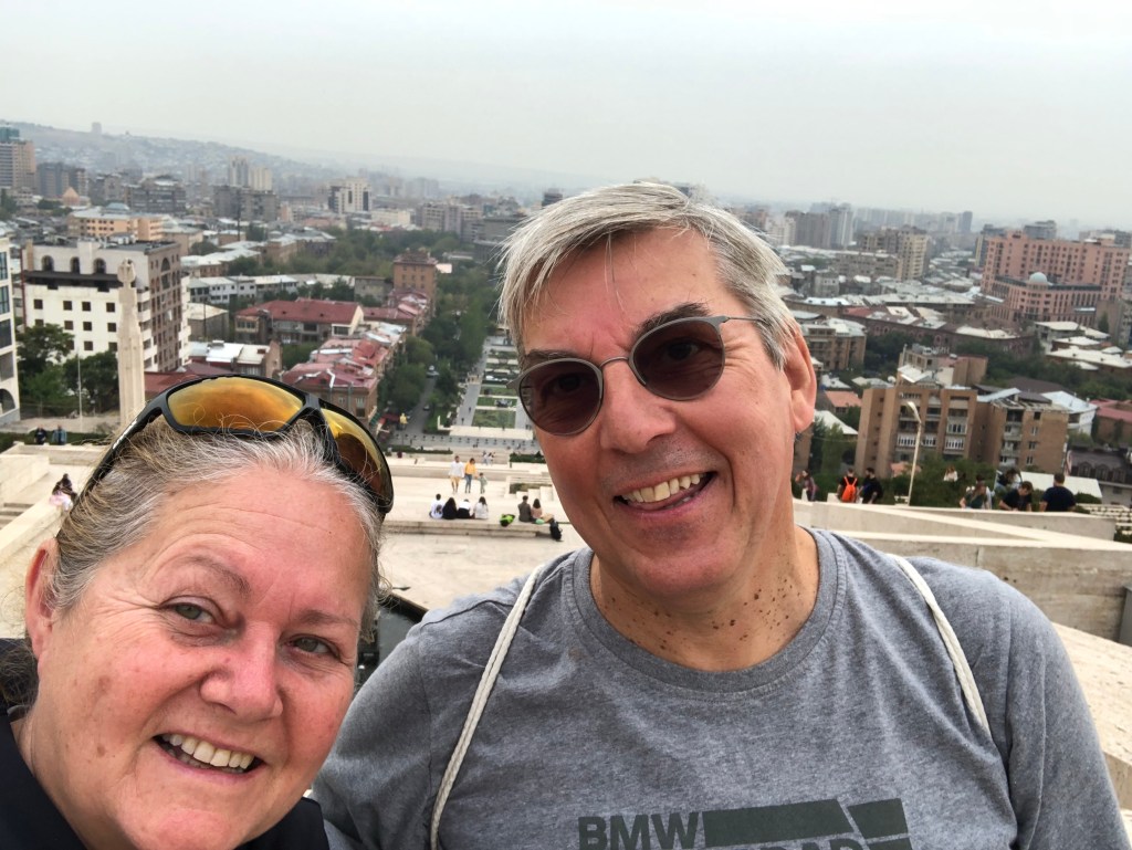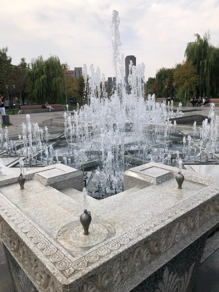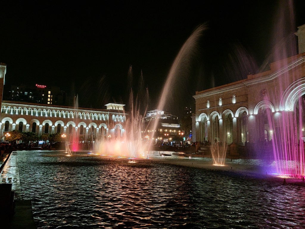 Nun, wir waren in Jerewan angekommen. Mit einem Taxi machten wir uns auf den Weg ins Stadtzentrum und blieben bis in die Abendstunden, denn den beleuchteten „tanzenden Brunnen“ am Platz der Republik wollten wir unbedingt sehen. Die Stadt ist zu weitläufig, um alle Sehenswürdigkeiten abzuklappern. Wir verschafften uns mit dem Doppeldeckerbus einen vernünftigen Überblick. Ein bisschen Tourist dürfen Individualreisende doch auch spielen. Neben dem Brunnen hat uns der Cascade Complex mit den 572 Treppen und der Skulpturenpark am besten gefallen. Hat man den Aufstieg bei der Kaskade überwunden, wird man mit einem grandiosen Blick auf die Stadt belohnt. Bei klarer Sicht zeigt sich sogar der Berg Ararat. Bei unserem Besuch hat er sich nicht gezeigt, aber ein paar Möglichkeiten dazu sollte es die nächsten Tage noch geben.