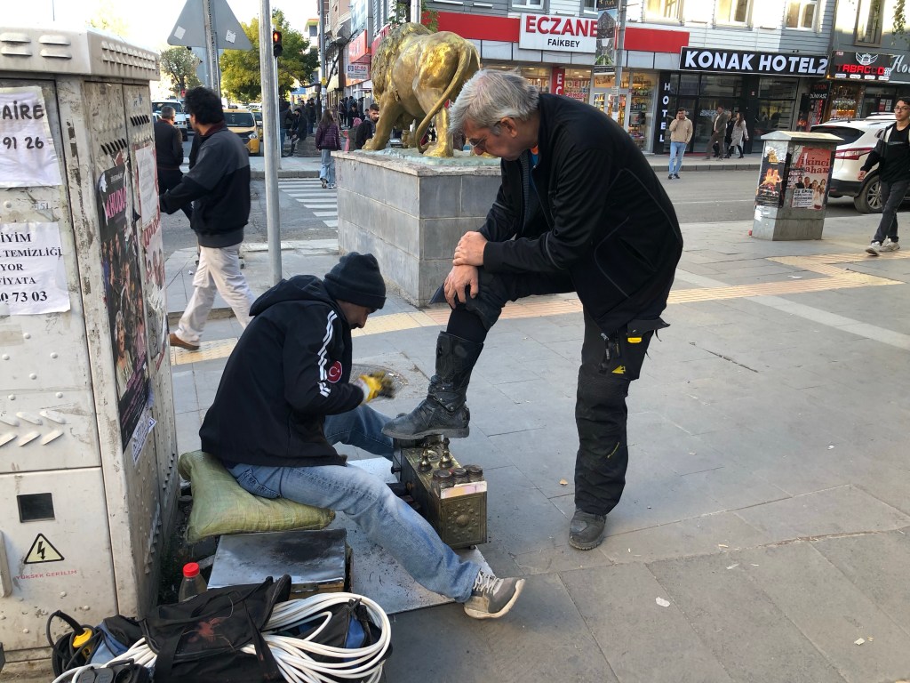 In einer Trucker-Kneipe an einer einsamen Kreuzung am Hochplateau holten wir uns eine warme Suppe und ein paar Tässchen Tee. Irgendwo in der Ferne zeigte sich kurz der weiße Gipfel des Ararat bevor wir in Kars im Zentrum einrollten. Bazarartiges Getümmel auf den Straßen, so wie wir uns die Türkei vorgestellt hatten und an der Ecke ein Schuhputzer. Das war endlich die Gelegenheit unseren Stiefeln eine gründliche Pflege zukommen zu lassen. Nach zwei Monaten auf Achse sicher kein Luxus.