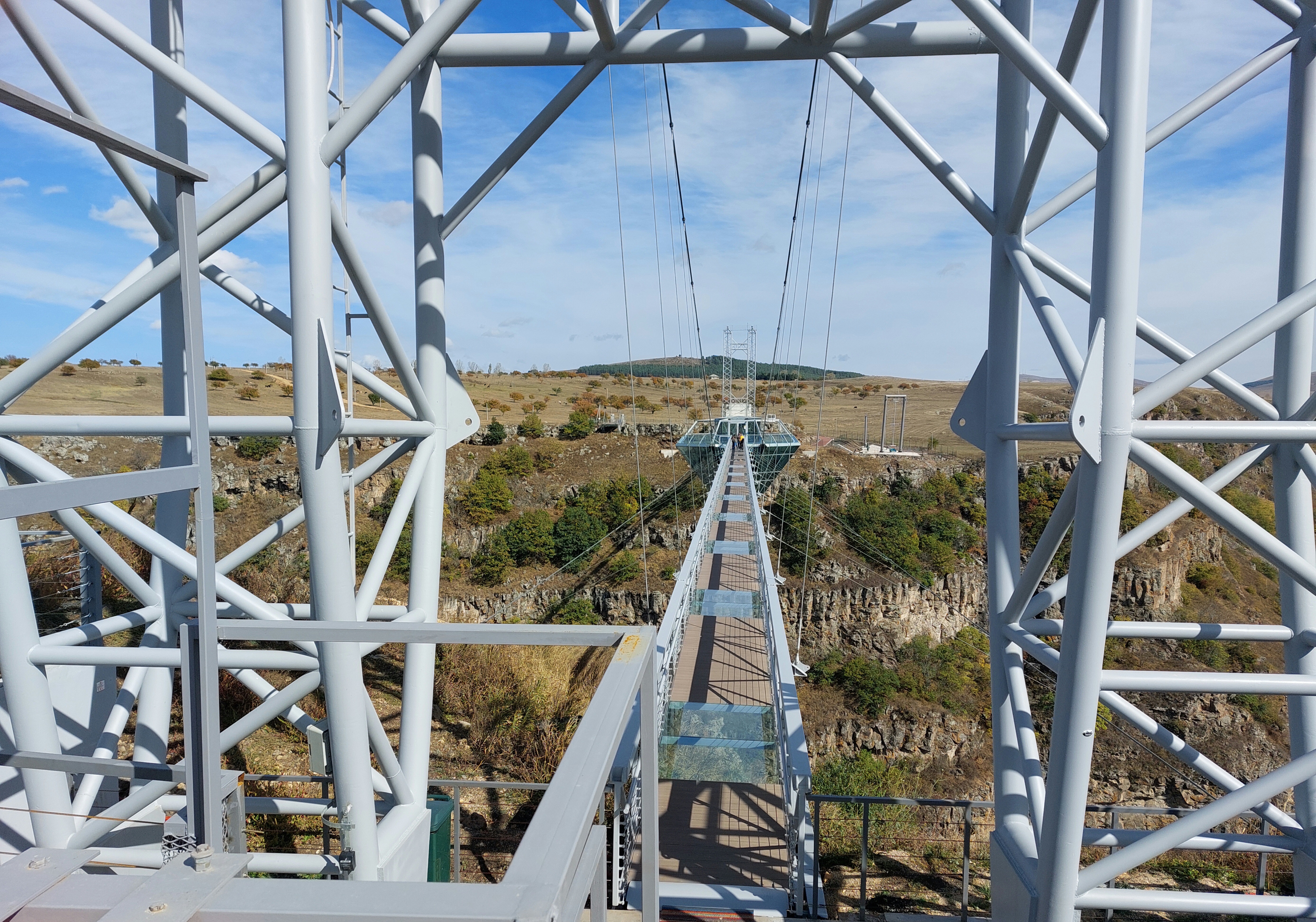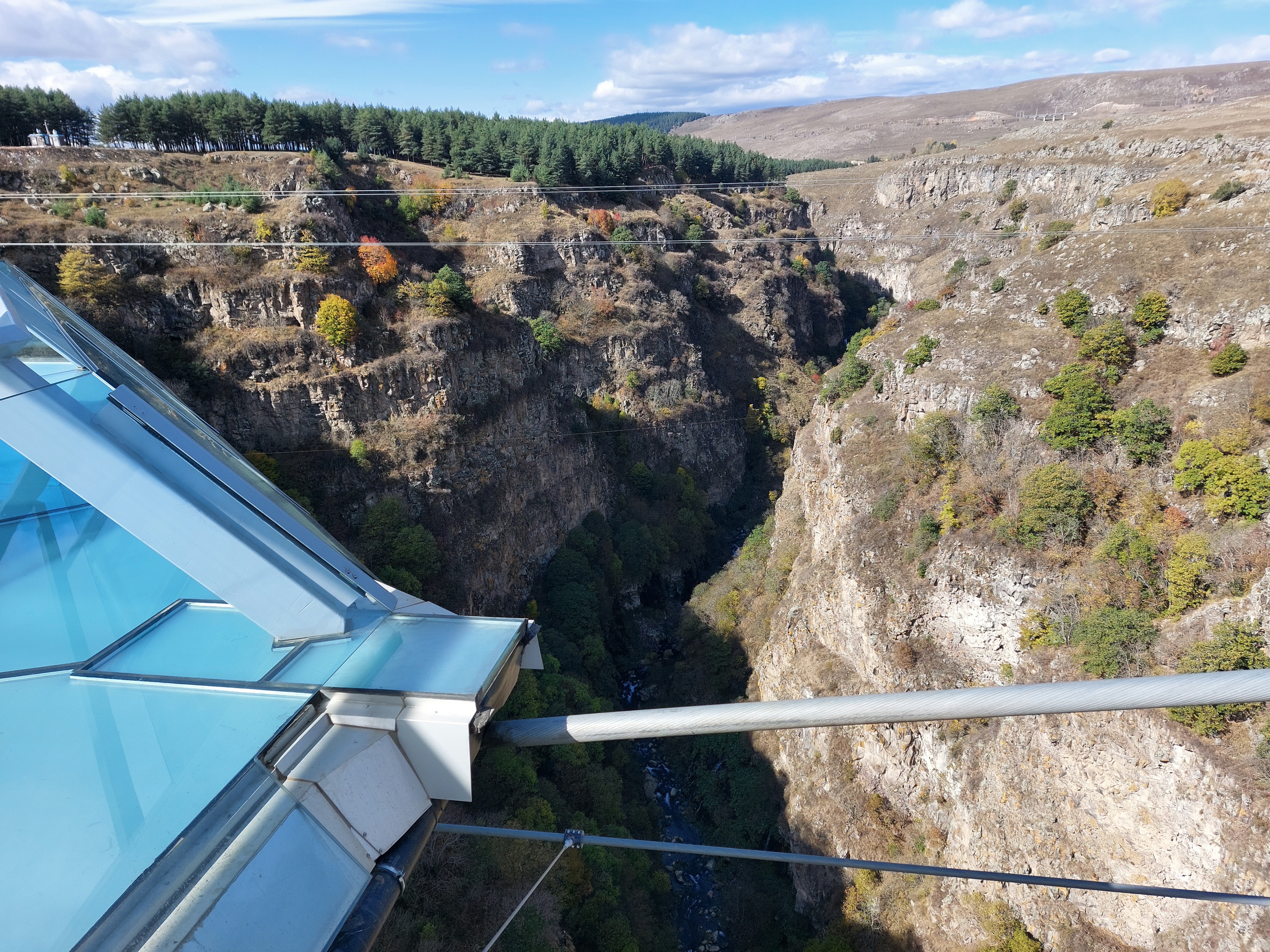 Der Bock-Chef wagte den Spaziergang über die Glasplatten auf der Hängebrücke zum Diamanten. Nix für mich bei dem Wind, wenn alles so schaukelt. Eine wirklich coole Konstruktion diese Adventure-Bridge. Normalerweise kann man auf einem Seil mit dem Fahrrad über die Schlucht fahren oder mit einer Super-Swing über dem Abgrund schaukeln. Aber bei den aktuellen Bedingungen waren die Attraktionen gesperrt.