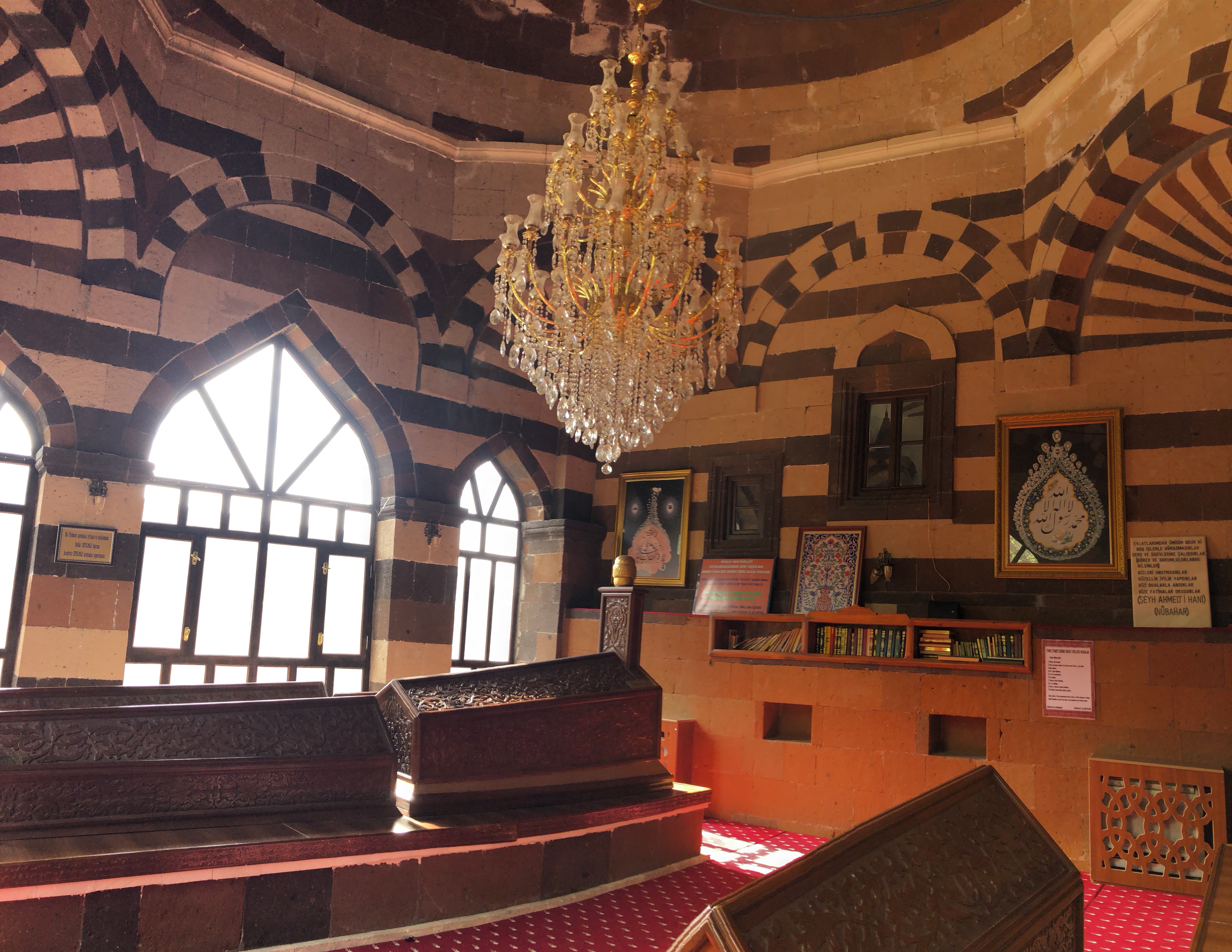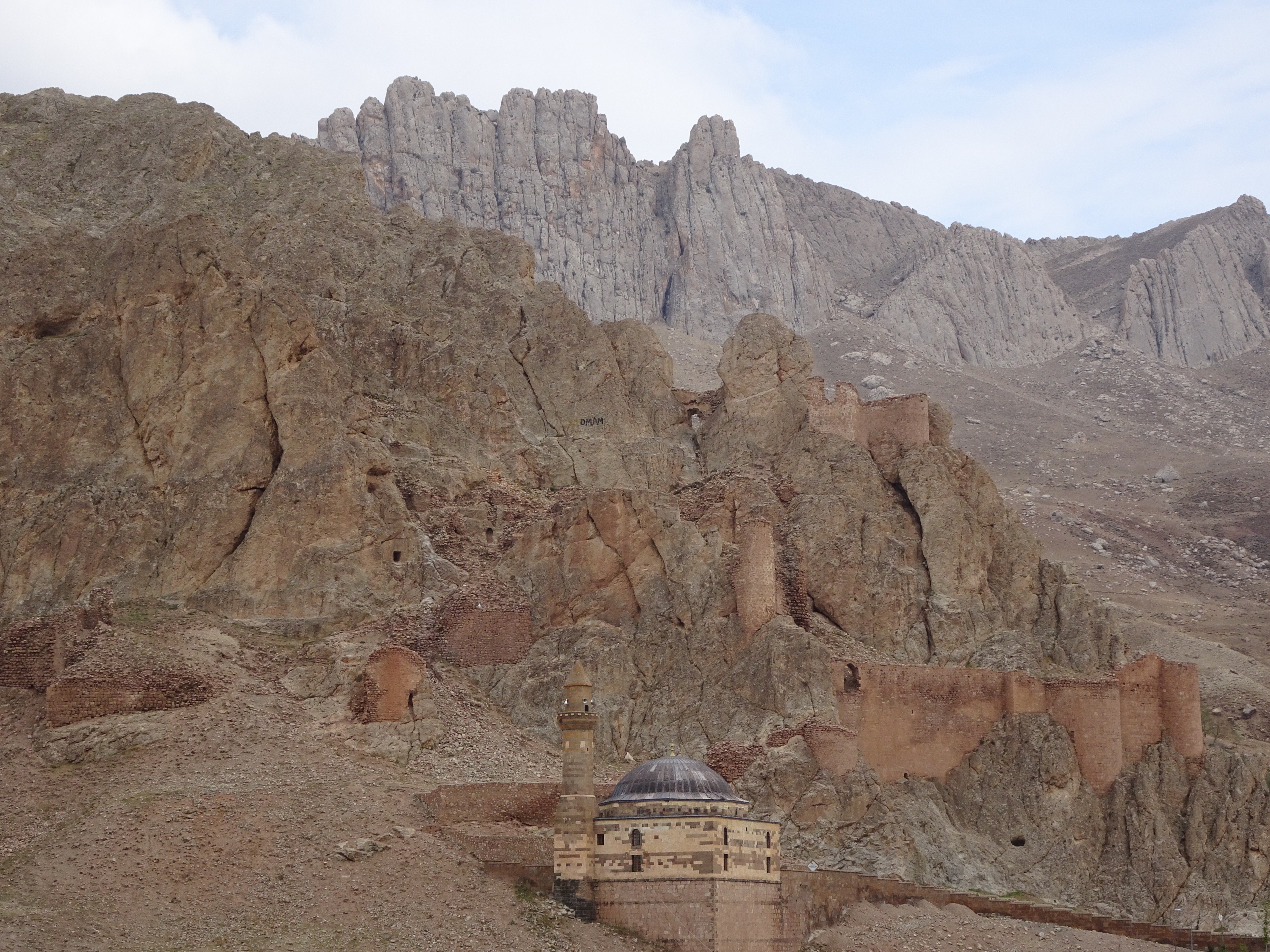 Was gab es noch in der Umgebung? Nahe des Palastes steigt eine steile Felswand hoch, die Teil einer Burgbefestigung war. Ein Stück weiter auf der Strasse ist die Ahmed-iHani Türbesi, das Grabmahl eines sehr verehrten kurdischen Gelehrten.