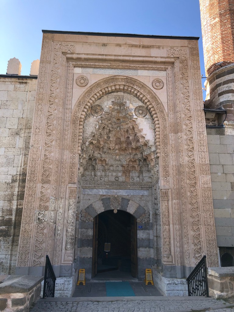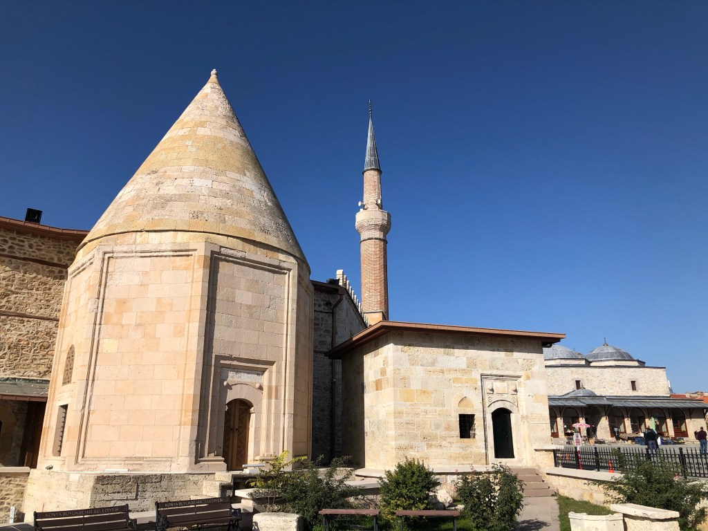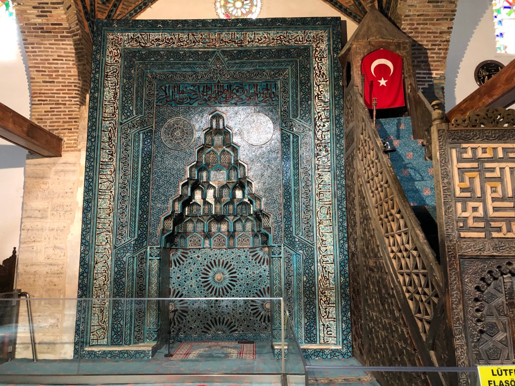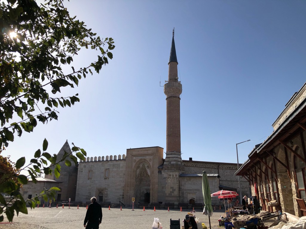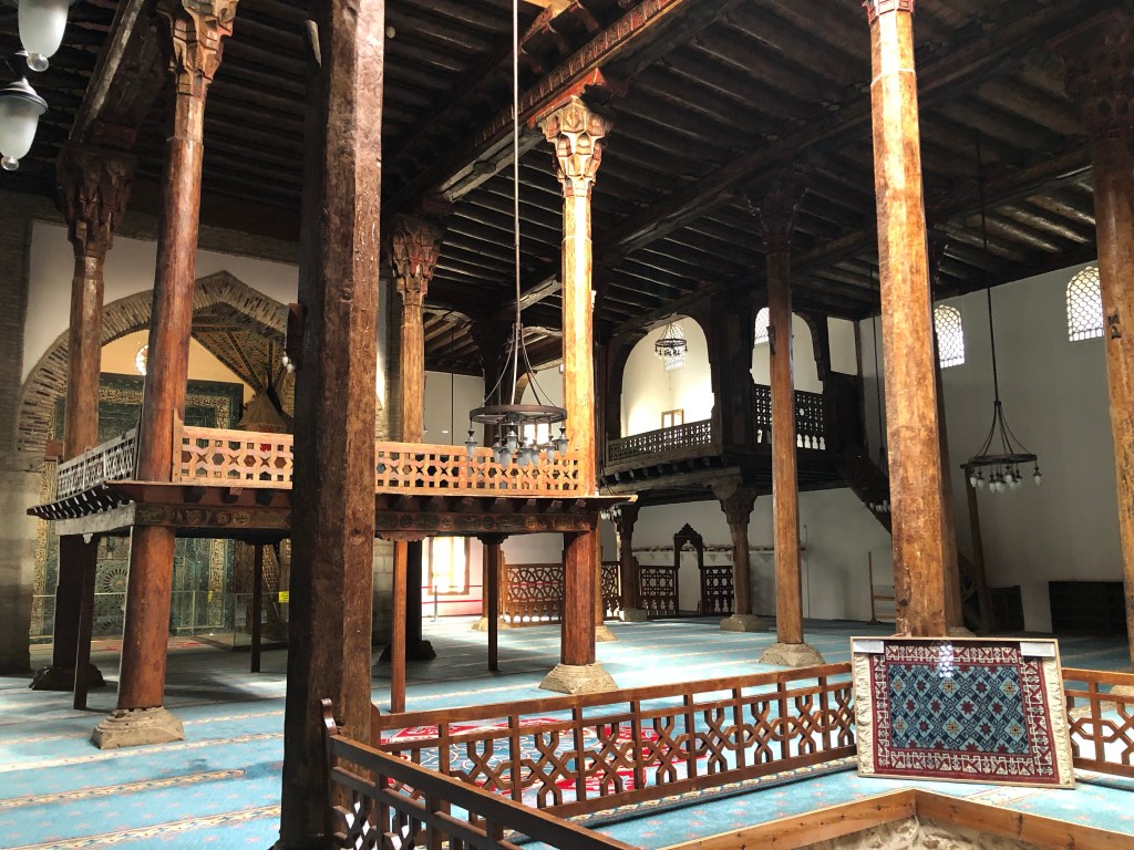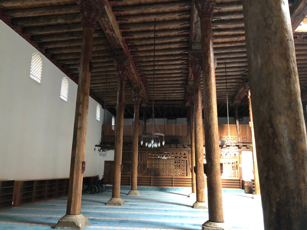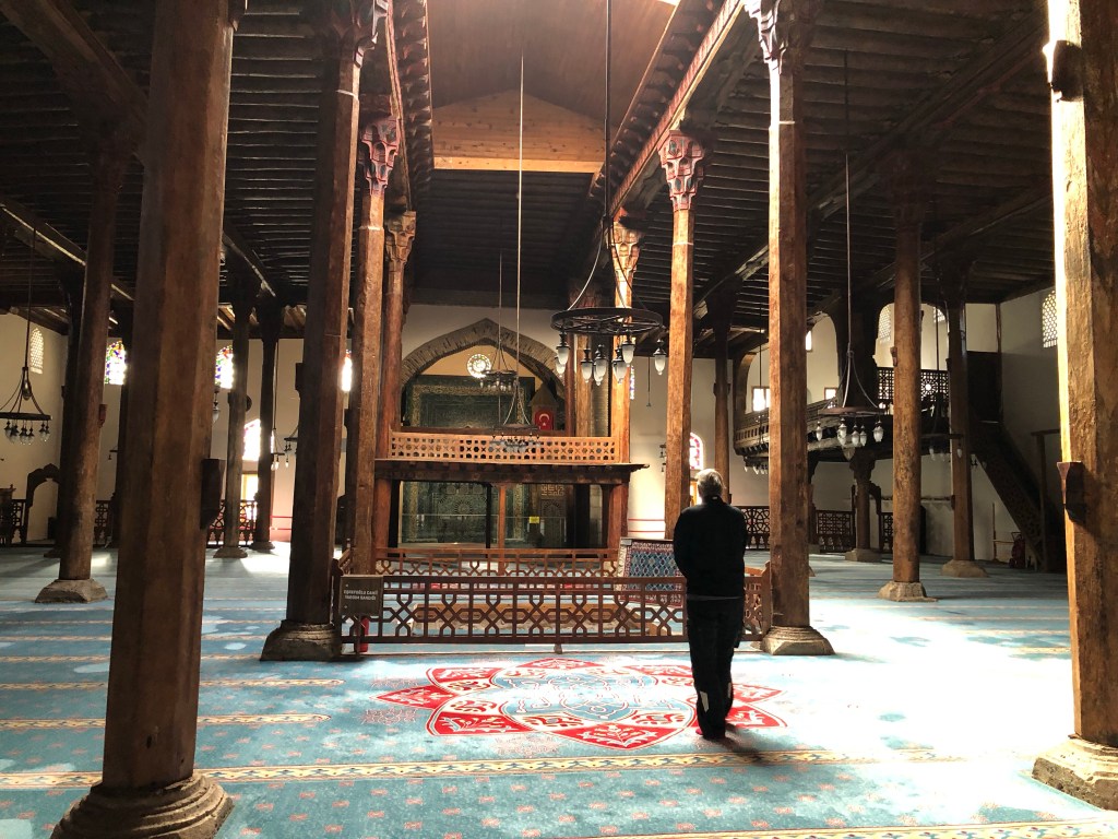 Ein wirkliches architektonisches Juwel der seldschukischen Architektur aus dem 13. Jahrhundert fanden wir zufällig in Beysehir – die Esrefoglu Moschee. Sie ist eine der wenigen noch erhaltenen Holzmoscheen. Das Eingangsportal und der Mihrab (Gebetsnische) sind mit Fayencekacheln ausgekleidet. Bemerkenswert ist ein steinernes Becken in der Mitte der von Holzsäulen umgebenen Gebetshalle. Hier kann Wasser oder Eis eingefüllt werden, um die Luftfeuchtigkeit für das Holz zu gewährleisten. Das hatte ich noch nie vorher gehört. Reisen ist für mich immer eine große Wissensbereicherung. Die Moschee und die umgebenden Gebäude (gedeckter Bazar, Hamam, osmanische Wohnhäuser, bilden eine wunderschönes Ensemble. Fein, dass in Beysehir das geschätzt und fleißig renoviert wird.