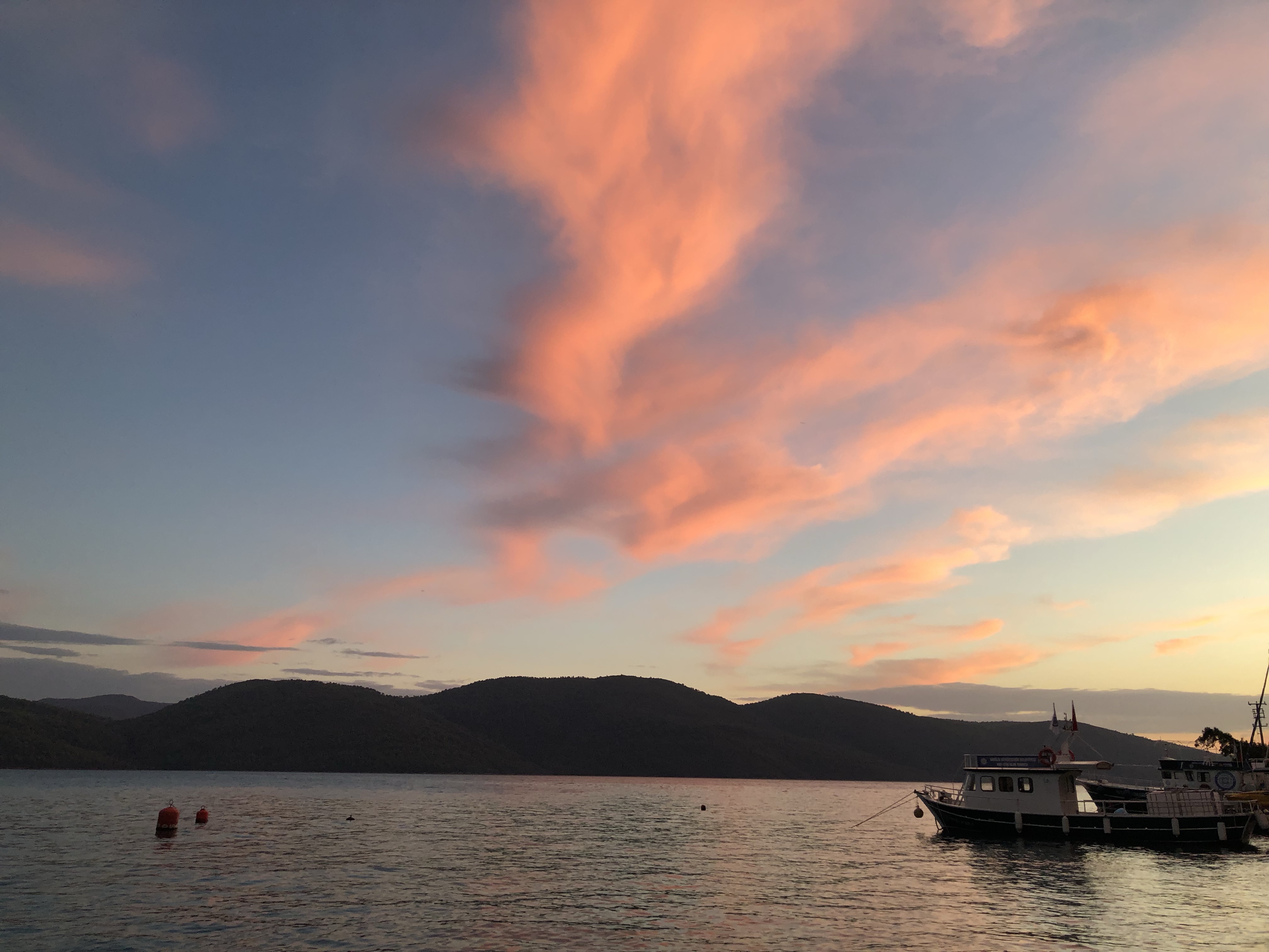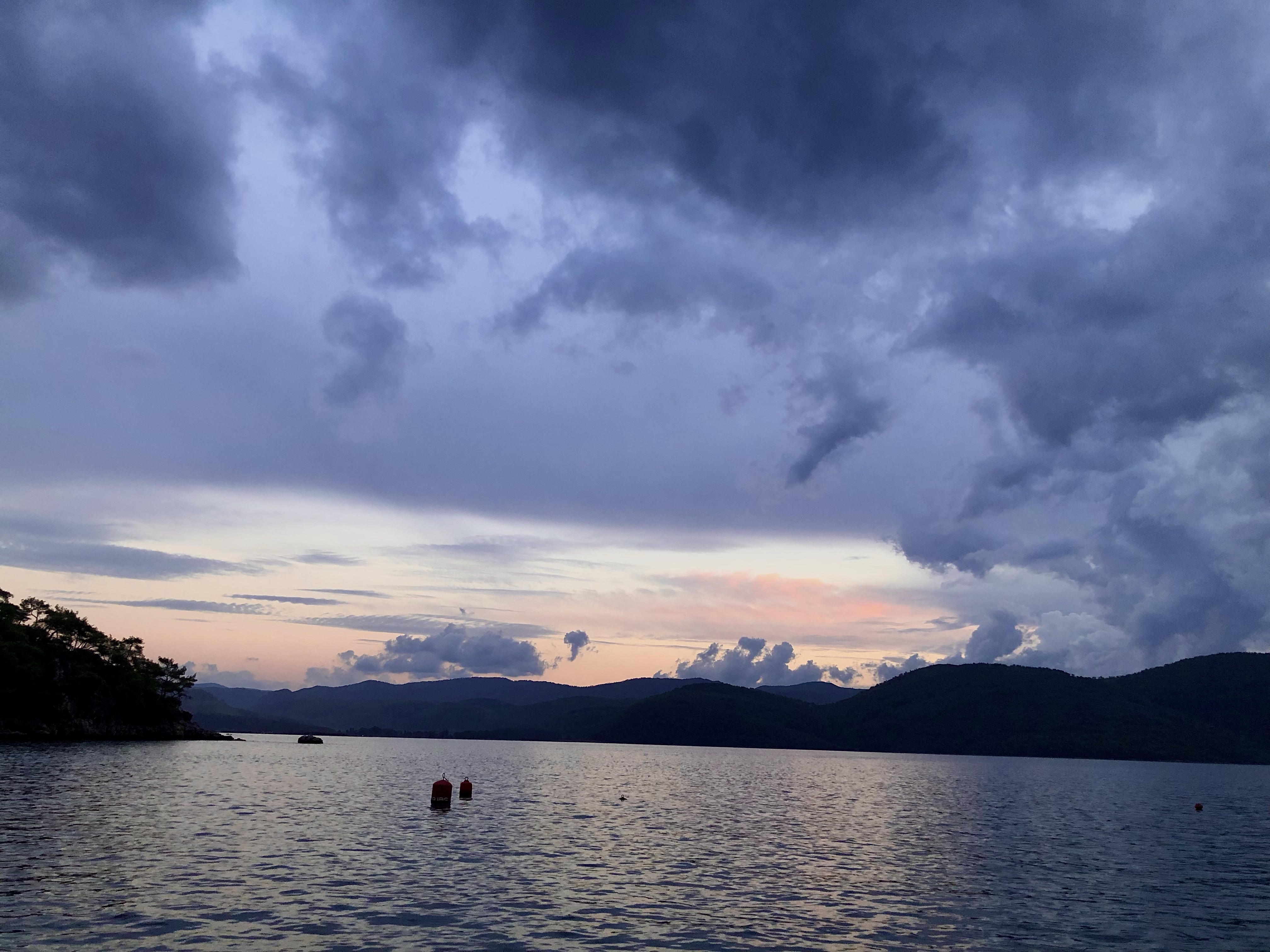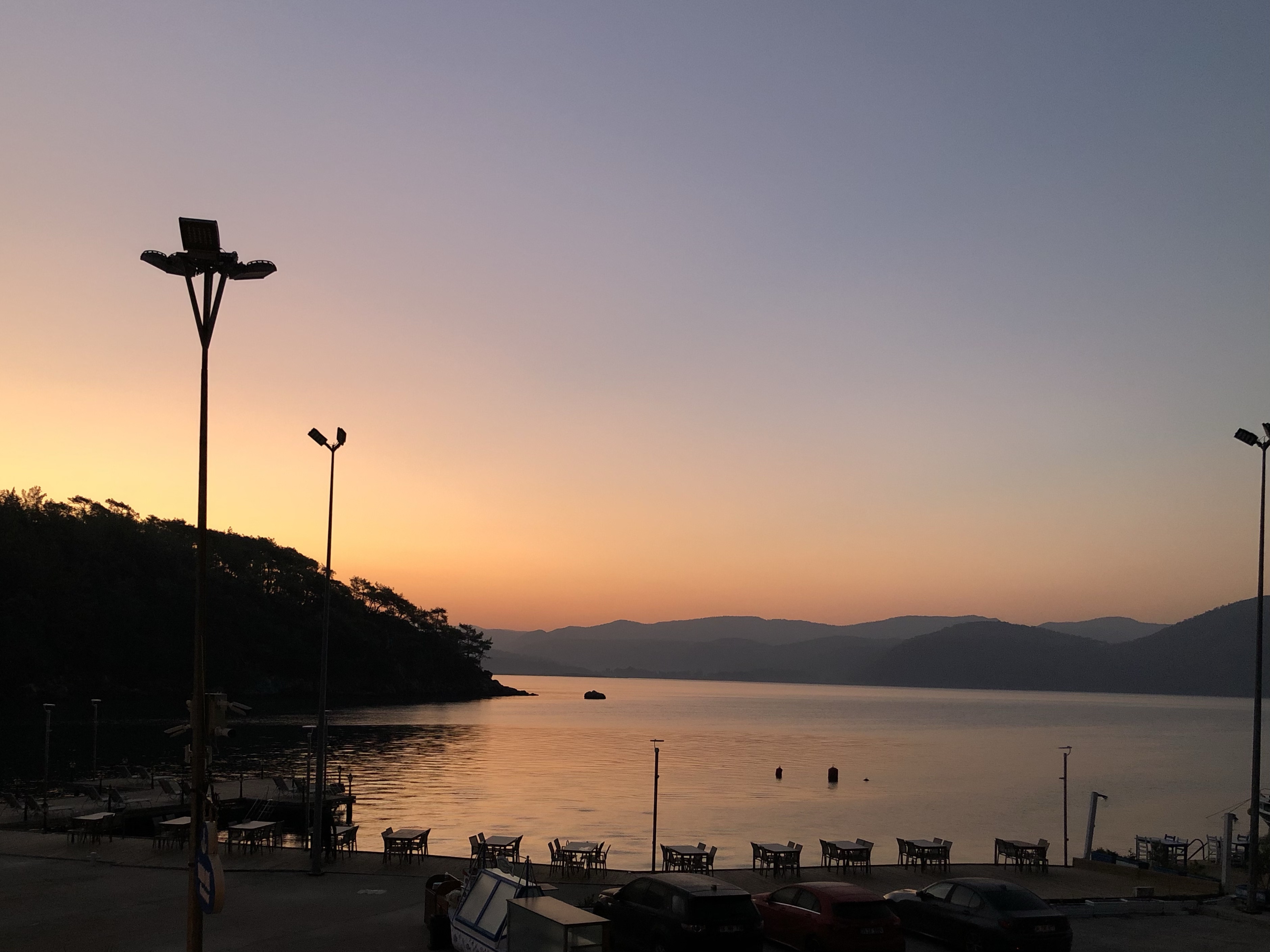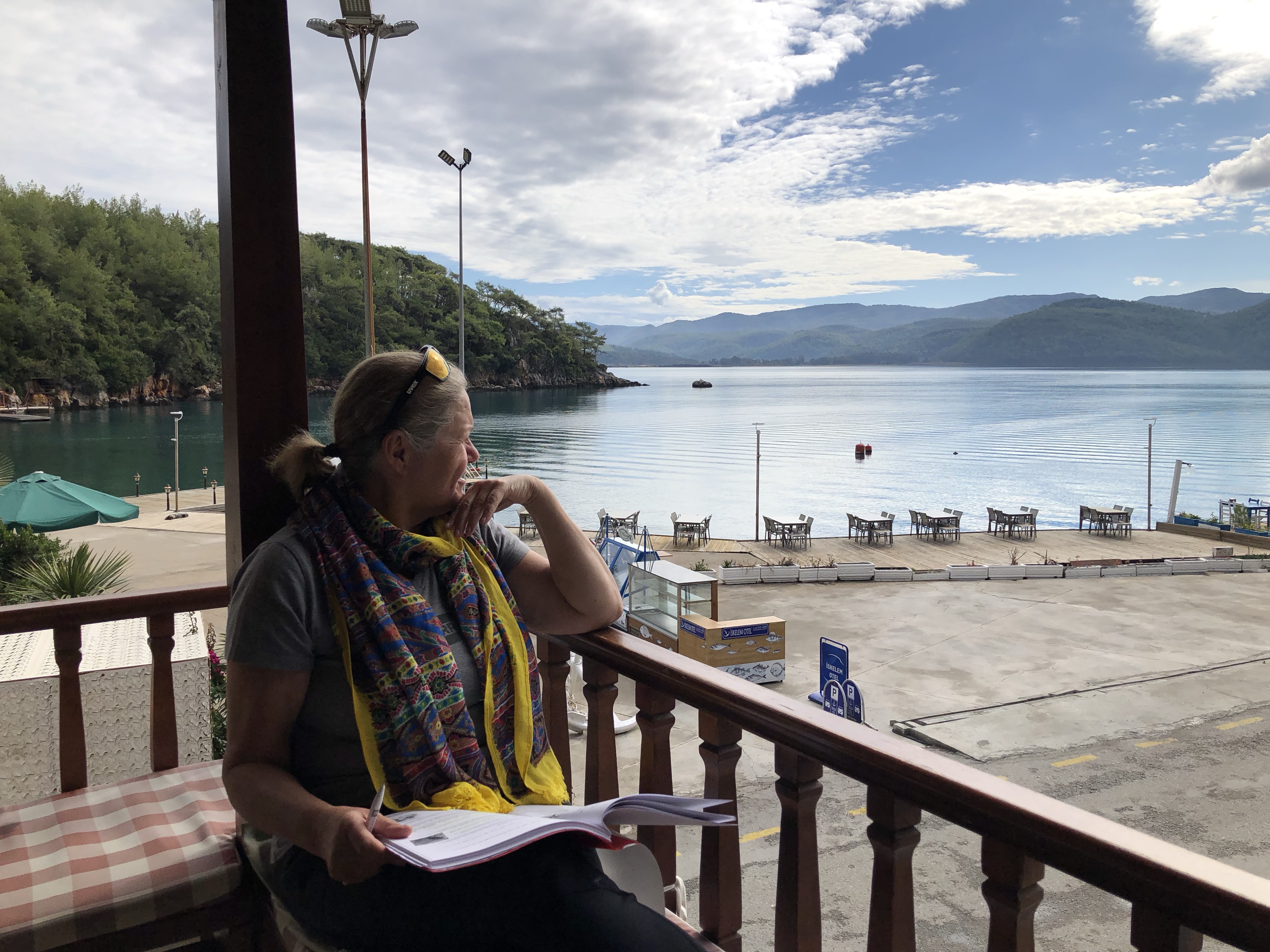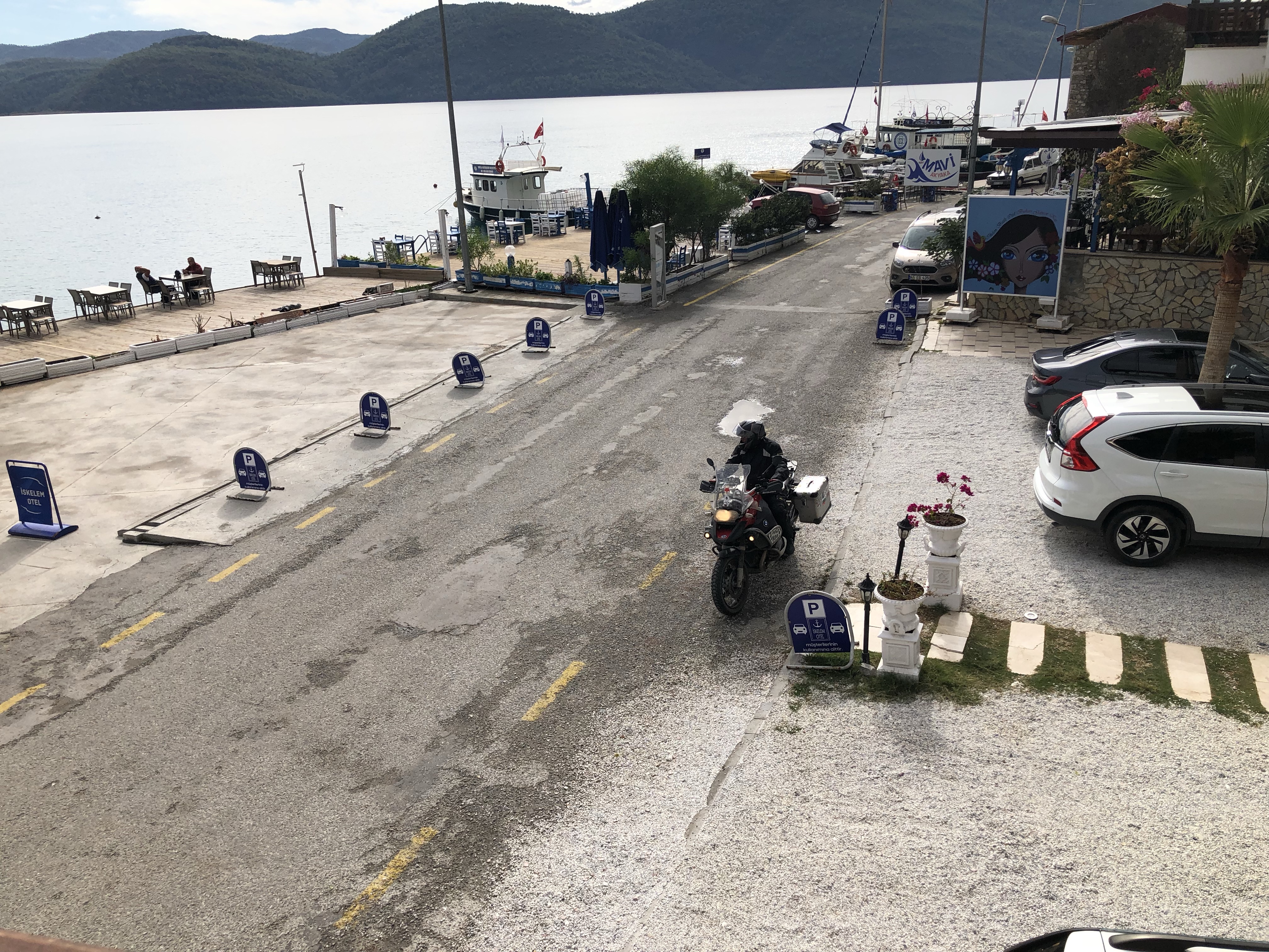 Über 15.000 km waren wir schon im Sattel. Reisen ist aus mehreren Gründen anstrengend, das hatte ich schon erwähnt. Da konnte eine kurze Pause nicht schaden. Das Meer ist immer erholsam, daher kurvten wir durchs Hinterland von Pamukkale in Richtung Küste, speisten in einem unscheinbaren 0/8/15 Dorf in der lokalen Bäckerei. Im Nu waren wir umgeben von schaulustigen Einheimischen und natürlich sprach uns auch an diesem entlegenen Ort jemand in Deutsch an. Riza ist Deutscher aber er hat seine Wurzeln und Verwandte hier im Dorf, daher kehrt auch gerne hierher zurück. Da sich ein Gewitter zusammenbraute machten wir uns auf den Weg nach Akyaka, wo wir in einer schnuckeligen Bucht ein romantisches Hotel gefunden hatten. Mein Plan für den Ruhetag, sitzen und auf das Meer schauen.