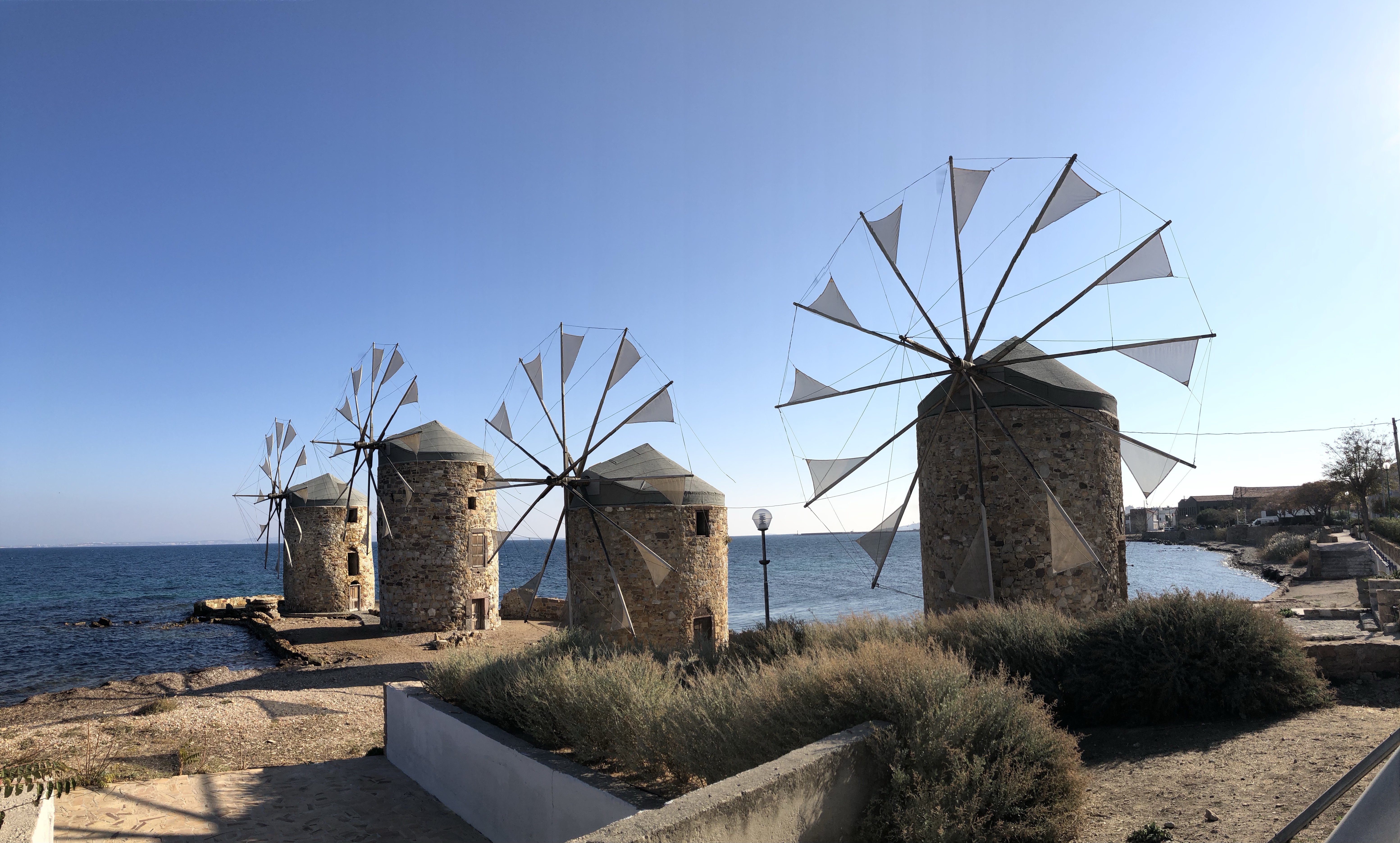 In Chios musste ich dann wegen einer starken Verkühlung einen Tag Zwangspause einlegen. Der Abfahrtshafen der Fähre nach Athen wurde auf die andere Seite der Insel verlegt und das Öl spritzte noch immer raus. Erfreulicherweise gab es in Chios eine große Motorradwerkstatt mit sehr kompetenten Mechanikern, die unser Ölproblem lösen konnten. Die Kardan-Transplantation war scheinbar nicht ganz so geglückt, daher wurde Temposchonung und die Warnung vor zu höppeligen Straßen ausgesprochen. So sollten wir die restlichen rund 1000 km nach Hause doch schaffen, meinte der Werkstatt-Leiter. Dann ab noch bei Tageslicht auf die andere Seite der Insel. Wir wollten nicht riskieren in der Dunkelheit auf einer kleinen Straße ein Schlagloch zu übersehen. Der Hafen von Mesta besteht aus einer Taverne, ein paar Fischerbooten und der Anlegestelle. Fünf Stunden griechisches Tavernen-Flair bis zur Einschiffung, was macht man da? Einen guten frischen Fisch essen, der Kellner hat sogar musiziert, die Zeit tot schlagen. Dann auf der Fähre irgendwie auf einem Sessel schlafen und in Piräus hat uns die Fähre im Morgengrauen wieder ausgespuckt.