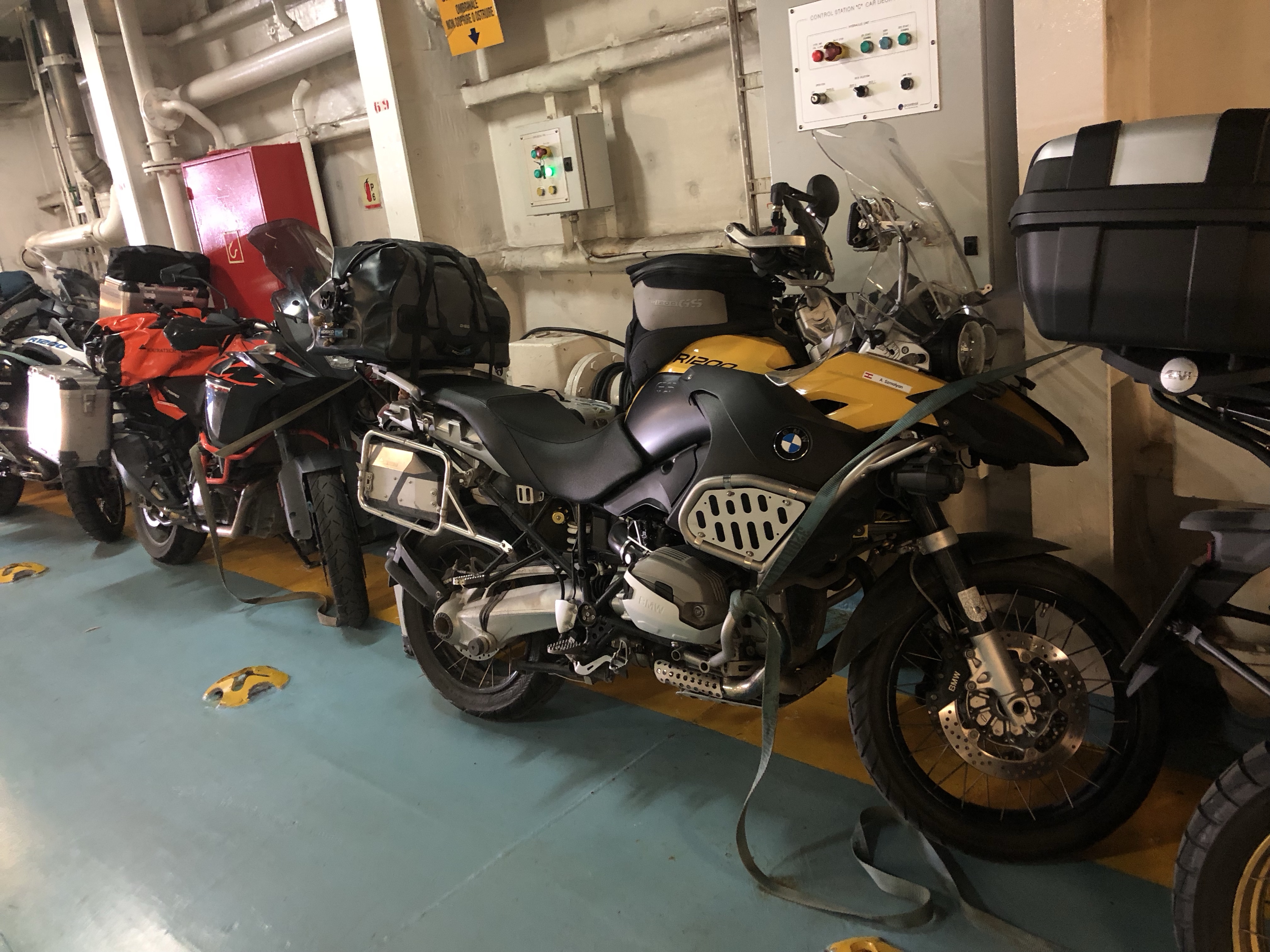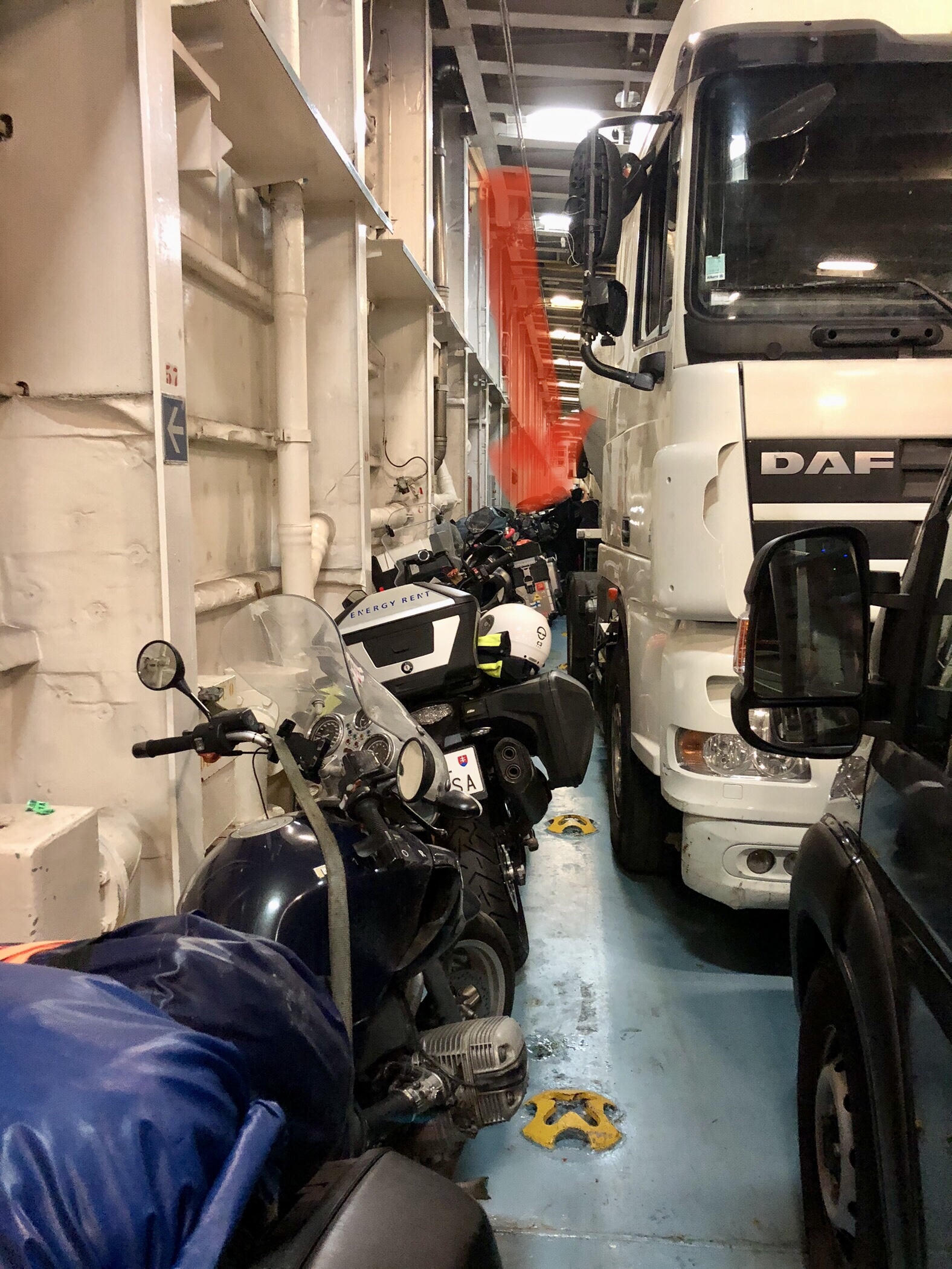 Die Fähre war für die Jahreszeit schon ziemlich gut gebucht. Den Fahrspass auf der Mittelmeerinsel wollen sich in der Vorsaison scheinbar viele MotorradfahrerInnen nicht entgehen lassen. Millimetergenau waren die Motorräder, LKWs und sonstigen Fahrzeuge verstaut. Auch die Feinde der Landstraße (wie der Bock-Chef die Wohnmobile nennt) wurden in Bastia zahlreich aus dem Bauch des Schiffes ausgespuckt. Mal sehen, wo wir all diese Passagiere wieder treffen werden.