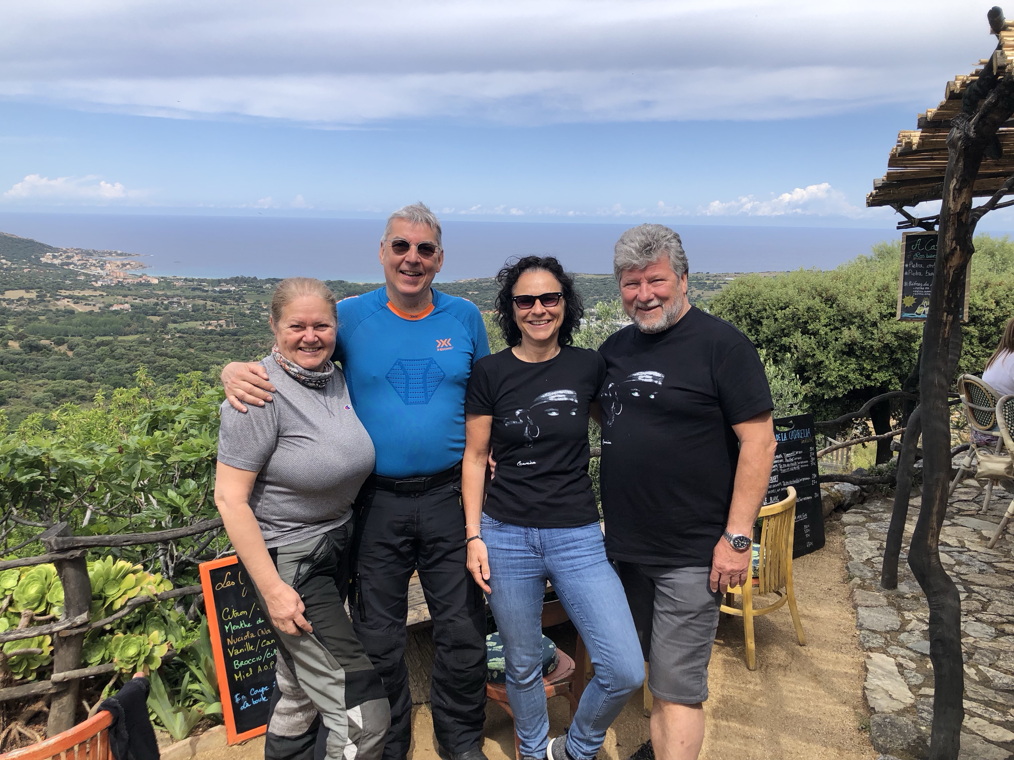 Wir hatten eine Wohnung in St. Florent für ein paar Tage gemietet, von wo aus wir die ersten Touren starteten. Die Buschtrommeln funktionierten auch hier gut, daher wussten wir, dass die Riedmänner auch zur selben Zeit auf Korsika urlaubten. Ein kurzes gemeinsames Kaffeepäuschen im Künstlerdorf Pigna ließ sich für beide Seiten gut einplanen. Für mich fühlt es sich immer heimelig an, wenn man unterwegs Leute von zuhause trifft.