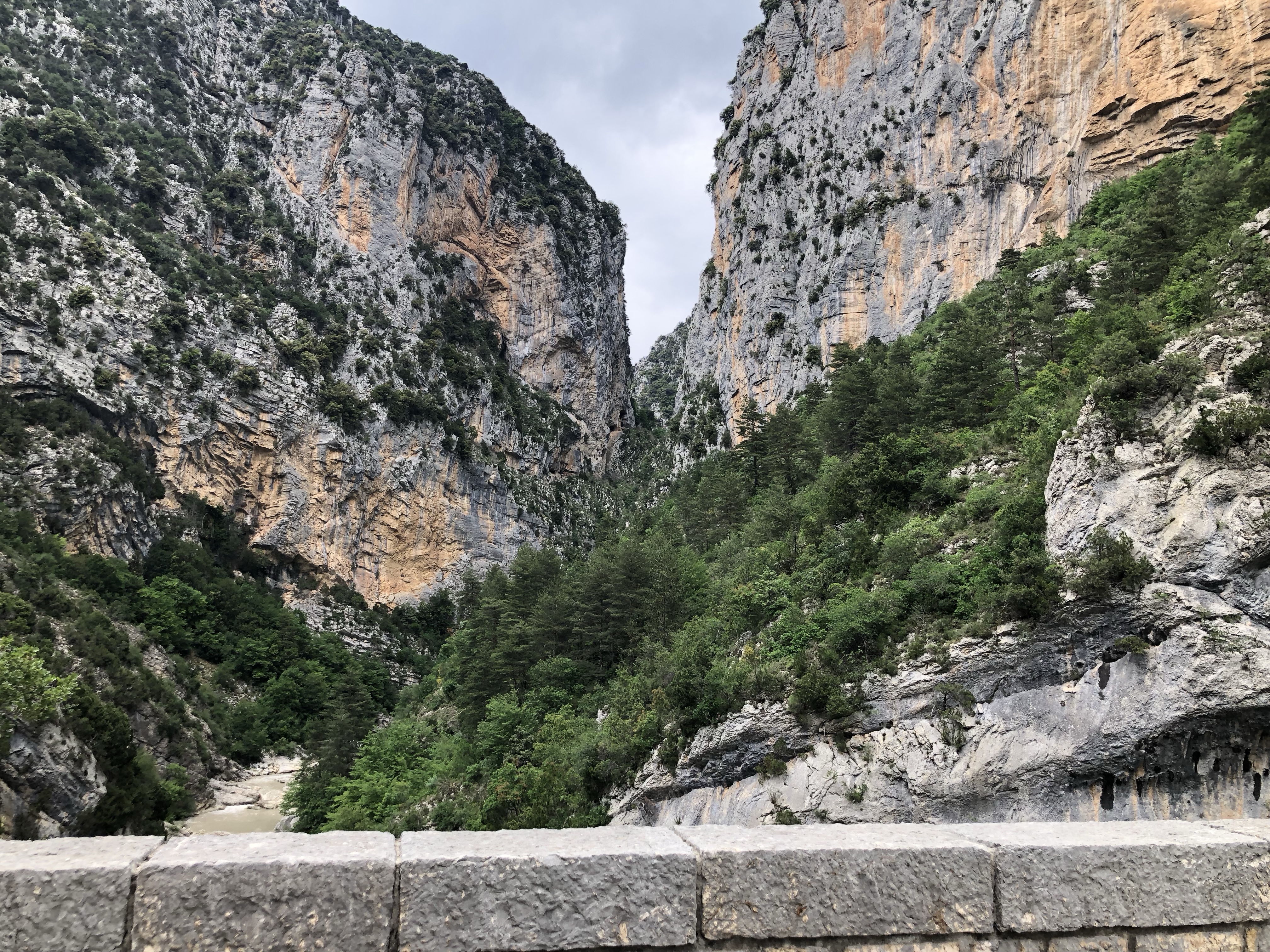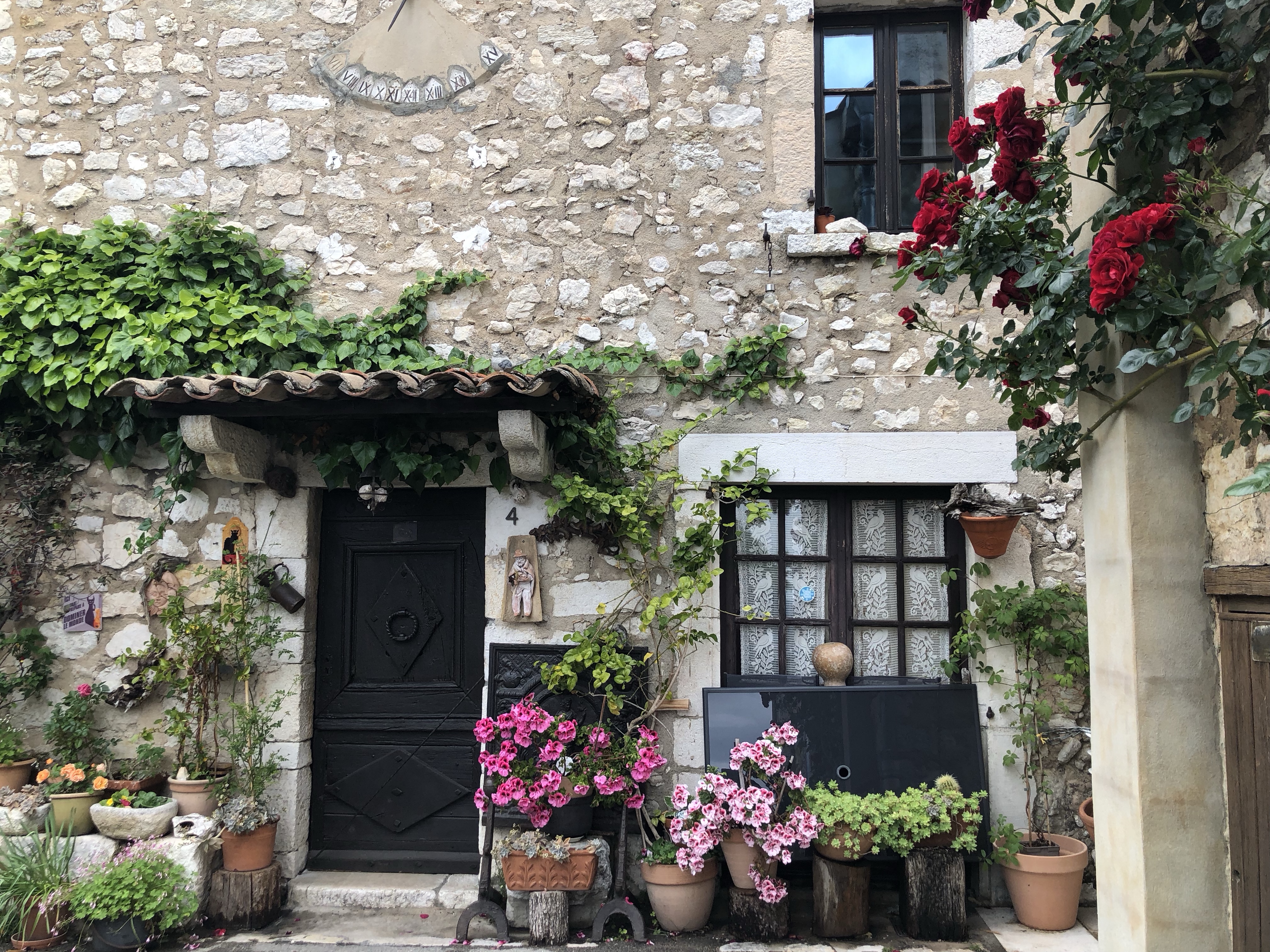 Gemütlich spazierten wir zurück zu unserem gelben Bock. Die Heimfahrt war wie schon an den Vortagen atemberaubend vorbei an hübschen Städtchen. Es ging durch Schluchten rauf und runter. Waren wir am Talboden unten in der Schlucht und ich blickte die senkrecht aufsteigenden Felsen rauf, kam ich mir klein wie eine Maus vor. Fuhren wir aber oben dahin, wurde mir fast schwindlig, wenn ich in die Abgründe runter schaute, vor allem, wenn es keine Straßenbegrenzung gab. Die hätte zwar im Ernstfall auch nicht viel genützt, psychologisch hätte sie mich dennoch beruhigt. Fein, dass wir im Frühling/Frühsommer unterwegs waren, denn der Duft von Rosen, Ginster, Akazien und vor allem Jasmin begleitete uns als kleine Reminiszenz an die Düfte bei Fragonard auf der Heimreise zu unserem kleinen Häuschen.