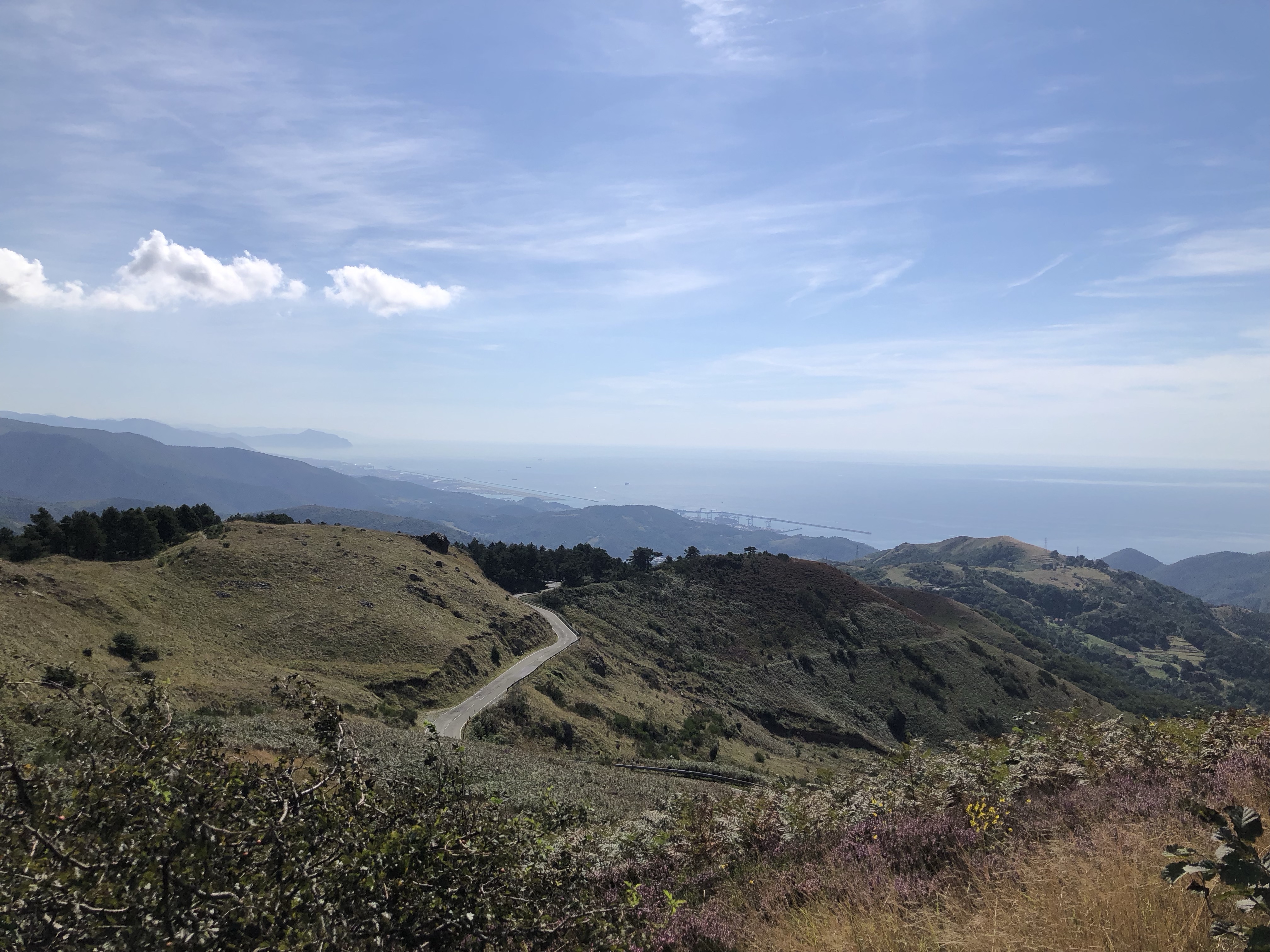 Es lässt sich in der frischen Luft am Faiallo Pass gut auf die Abfahrt der Fähre, die von Genua nach Barcelona heute ausläuft, sitzen und schauen.