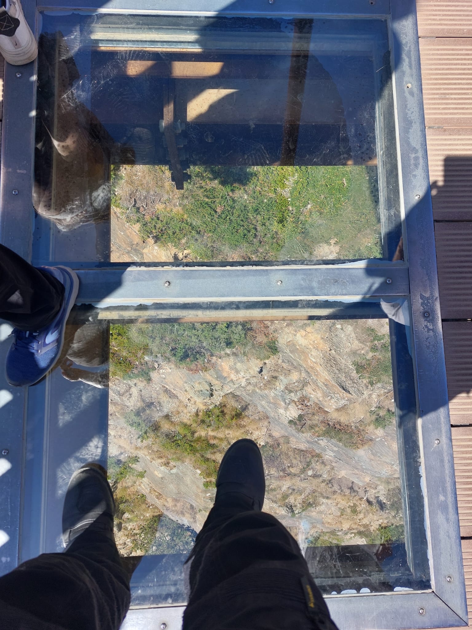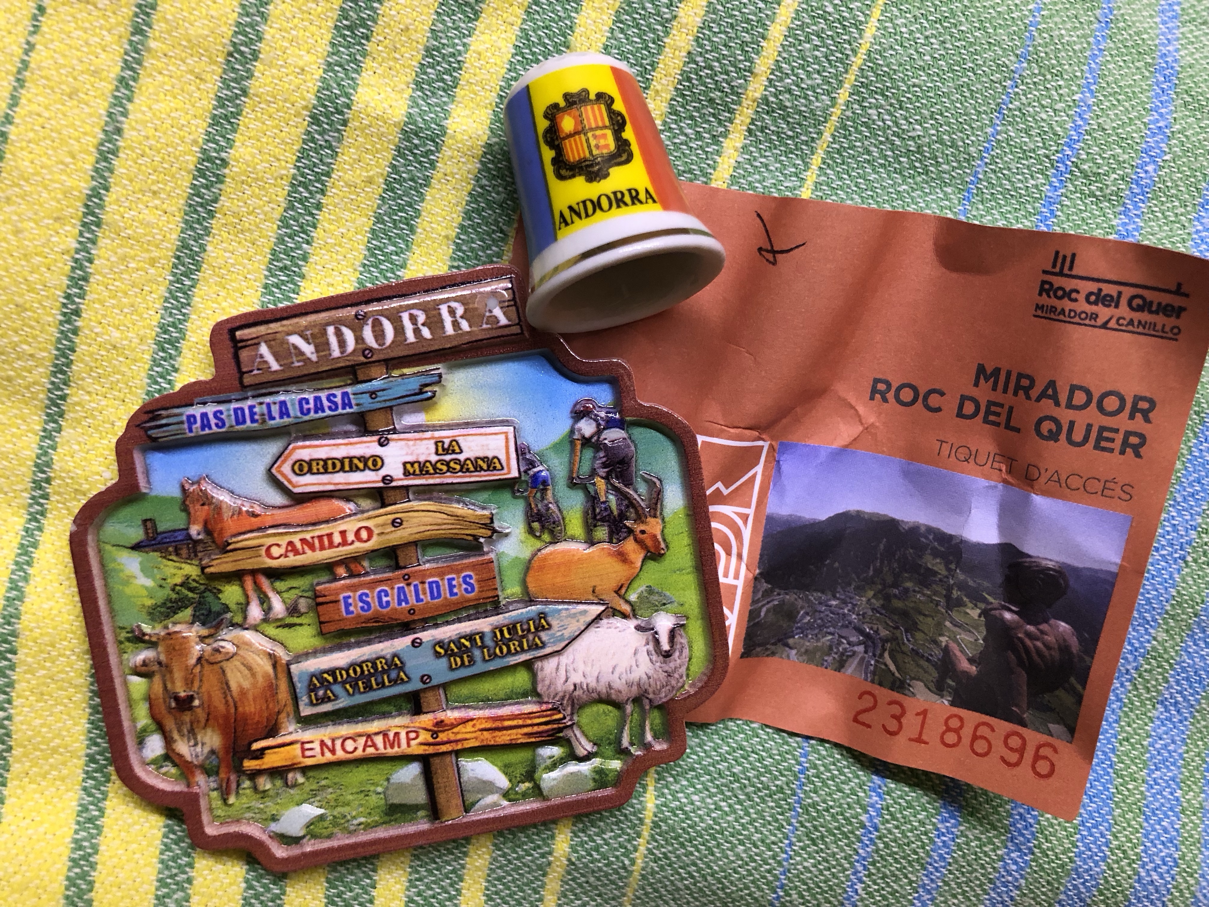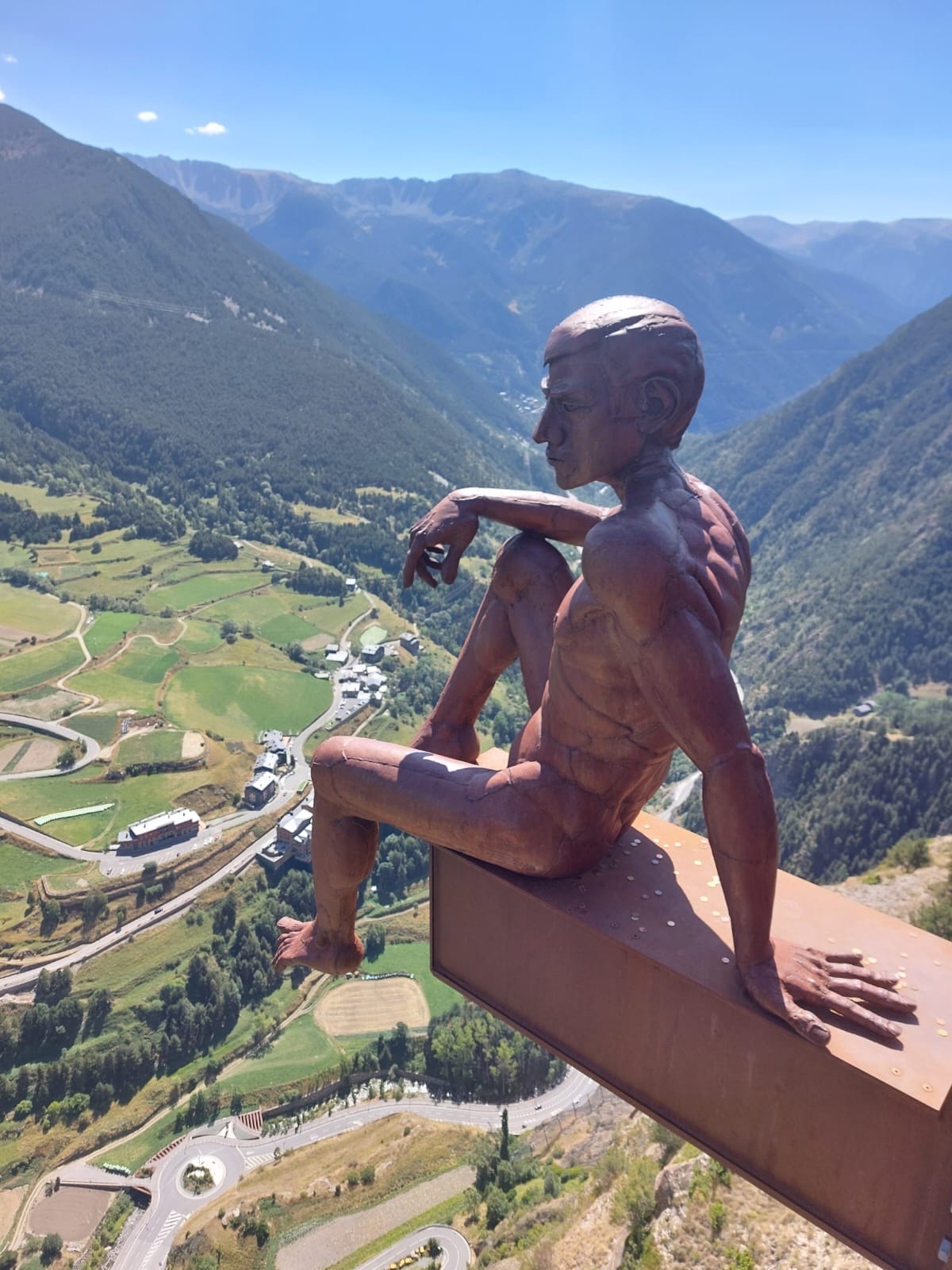 Die Einreise nach Andorra erfolgte ohne Grenzkontrolle. Dafür war das Verkehrsaufkommen etwas chaotischer. Leider gibt es in dem Tal kaum Ausweichmöglichkeiten. Erst nach Andorra la Vella, der Hauptstadt, konnten wir in die Berge rauf abzweigen. Die Straße faltet sich mit zahlreichen Spitzkehren zum Mirador Roc Del Quer hoch. Der Skywalk, der dort die vielen Sonntagsausflügler anlockt, bietet einen schönen Ausblick – eigentlich auf den ganzen Zwergstaat. Der Pflichteinkauf – ein Magnet und ein Fingerhut – wurde gleich im Cafe mit dem Baumskulpturen beim Parkplatz erledigt. Eine schöne Fahrstrecke führte noch weiter zum Coll d’Ordino auf knapp 1800 m Seehöhe. Da alle scheinbar grade beim Mittagstisch sassen, gehörte uns die Straße fast alleine. In Andorra la Vella stoppten wir noch bei einen Supermarkt, um uns mit den nötigsten Proviant für ein Picknick einzudecken. Und schon waren wir wieder über der Grenze in Spanien, in unserem Quartier im kleinen Dorf Adrall.