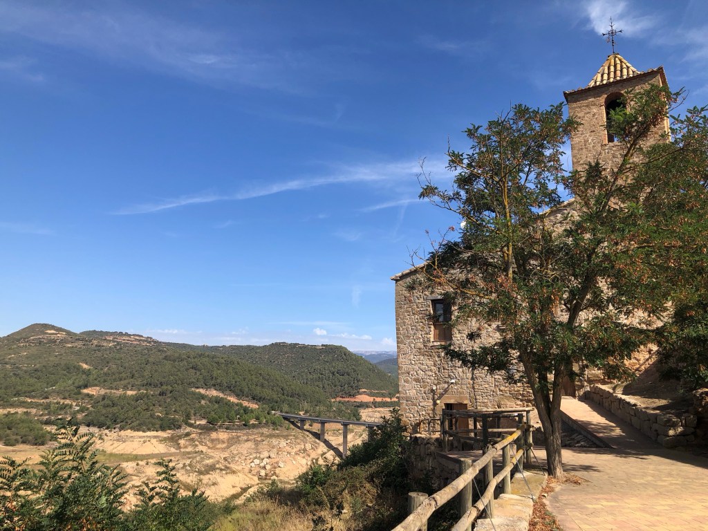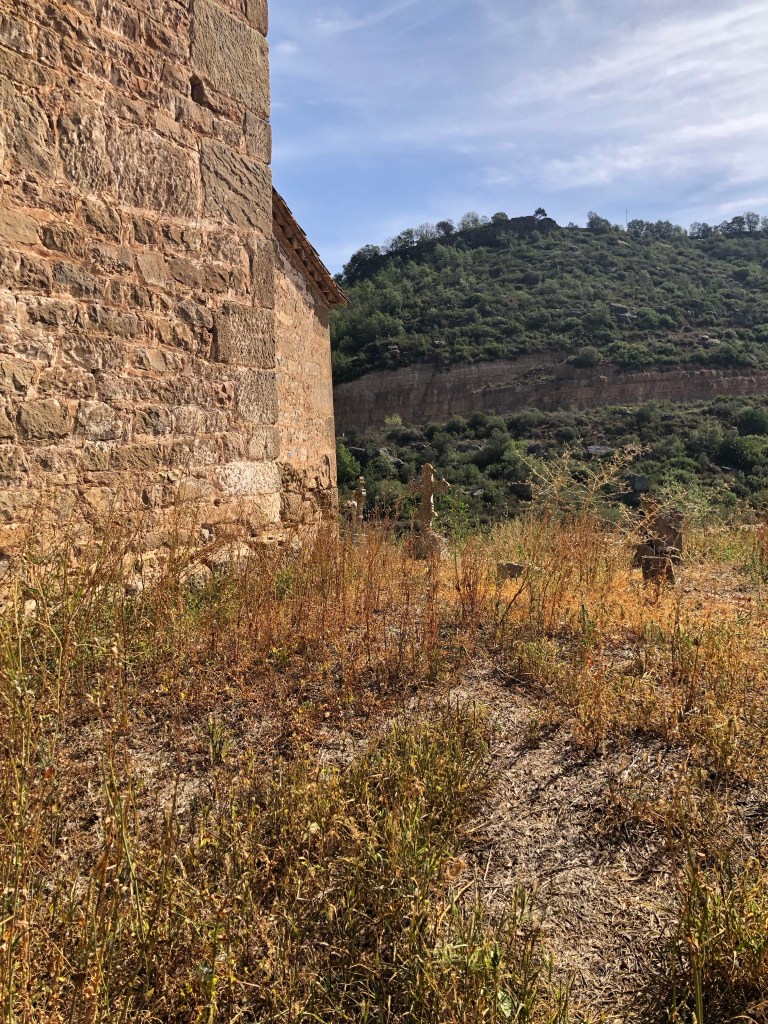 Die Region La Baronia de Rialb allein verzeichnet 24 Kirchen, Klöster und Kapellen aus dem 11. und 12. Jahrhundert. La Torra am Rialb-Stausee und die Kloster- und Kirchenruine von Santa Maria de Gualter haben wir uns genauer angesehen. La Torra würde man als Denkmalpfleger als ein Ensemble bezeichnen: Kirche, Friedhof, Nebengebäude und eine alte Schule pittoresk auf einer kleinen Anhöhe errichtet. Die neben der Kirche abfallende Schlucht wurde durch den Stausee in den Jahren 2000 bis 2010 geflutet, nur leider ist der Wasserstand zwischenzeitlich wieder ziemlich abgesunken. Die Trockenheit bereitet der Landwirtschaft in Spanien einige Sorgen. Ein Regentag ist einfach zu wenig, um die Staubecken wieder zu füllen. Das Tourismuskonzept ist natürlich rund um den Stausee vom Wassermangel ebenfalls betroffen. Die Ausflugsboote wurden aufgelassen und die Staubecken werden zusehend zu Staubbecken, die langsam mit Stauden wieder zuwuchern.