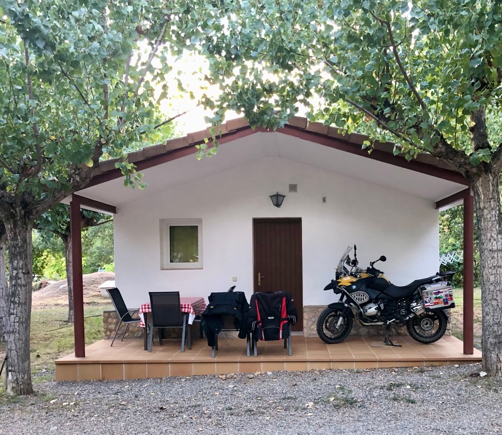 Insgesamt hatten wir eine super Anreise von Adrall nach Isabena. Egal ob es jetzt einen Ruhetag geben wird oder nicht. Die Campinganlage ist gut mit Pool und Restaurant ausgestattet. Vor fast jedem Bungalow steht ein Motorrad, also sind wir in guter Gesellschaft.
